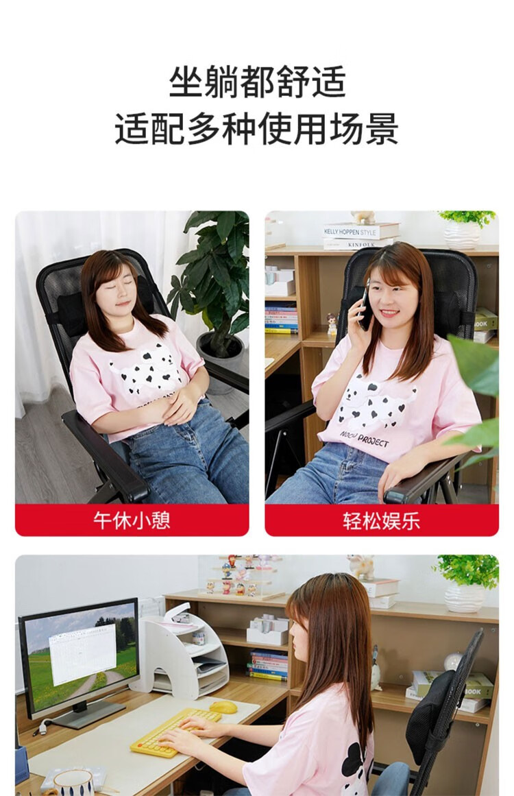 竹相随家用电脑椅躺椅折叠椅午休午睡折叠床久坐大学生宿舍懒人靠背椅子 【9档调节】坐垫加厚款+脚拖