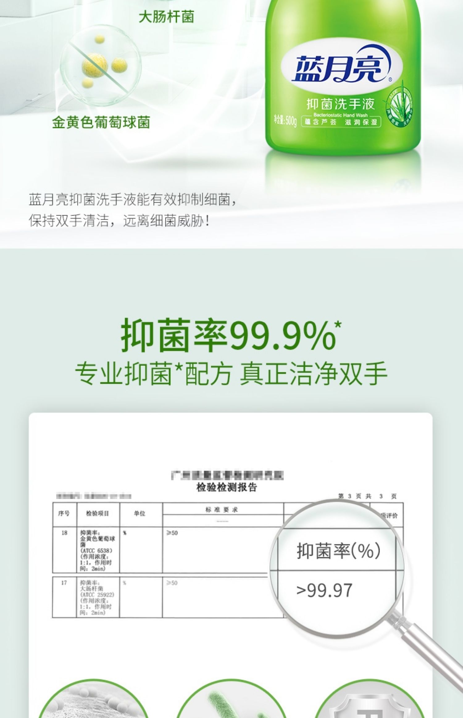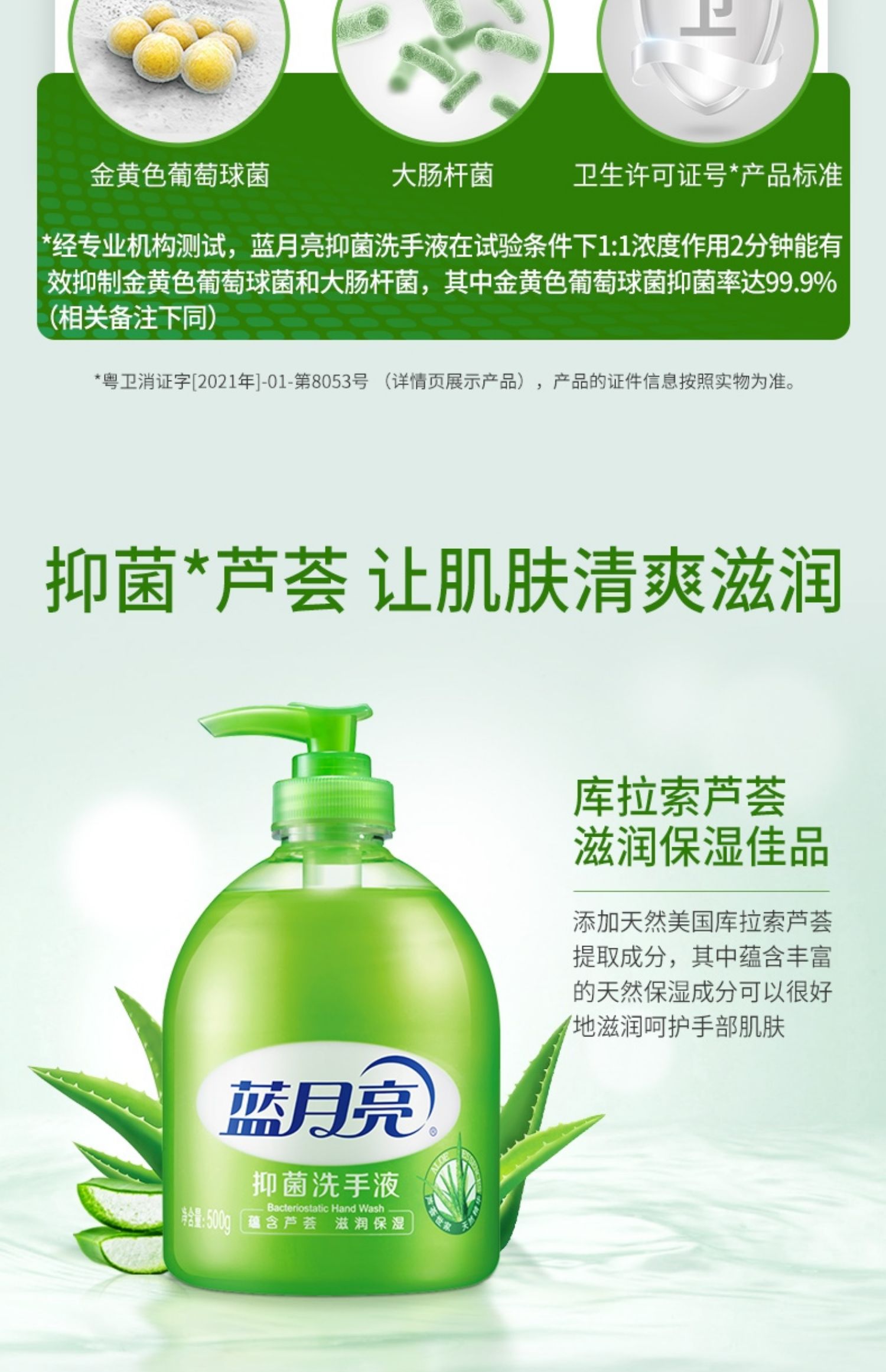 蓝月亮洗手液 芦荟500g家用补充装杀菌消毒抑菌正品官方旗舰店