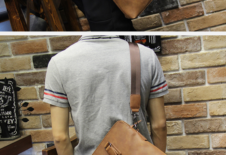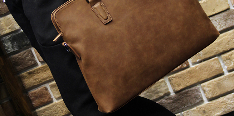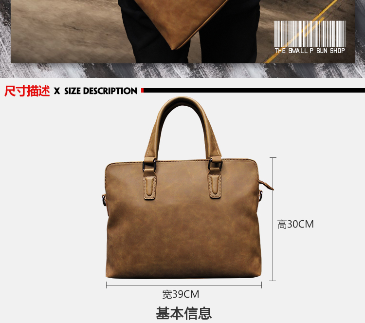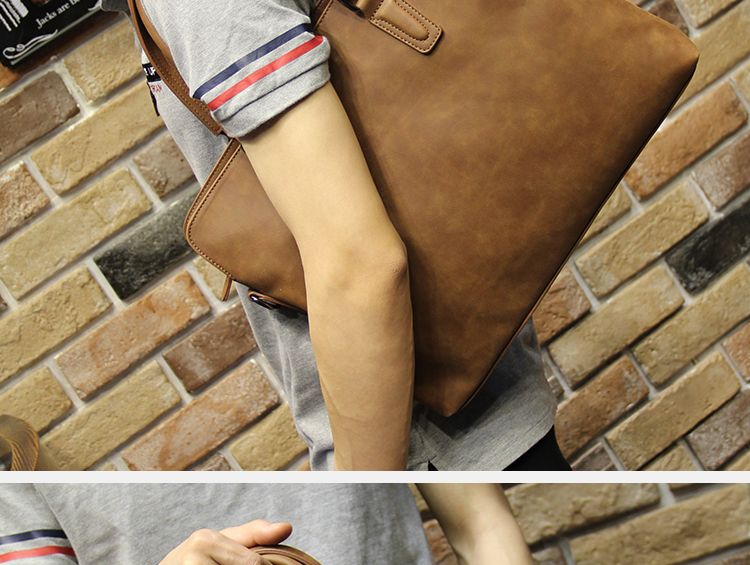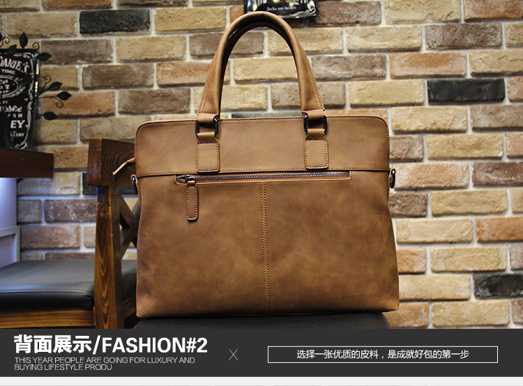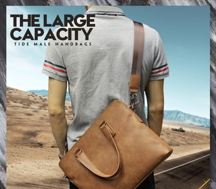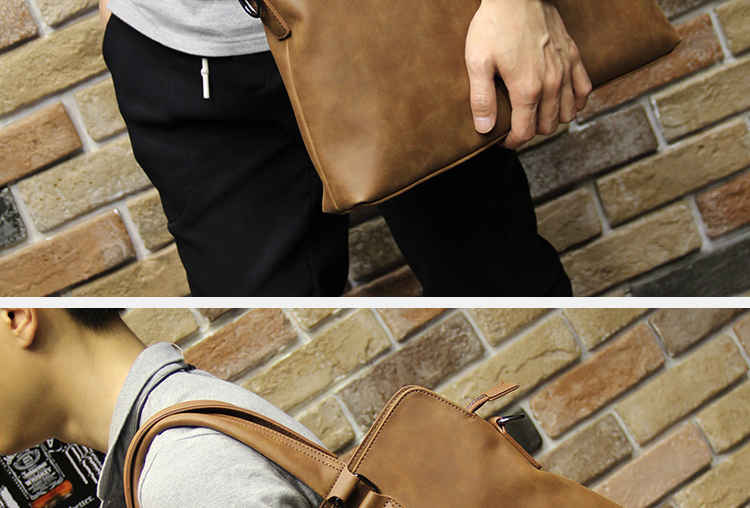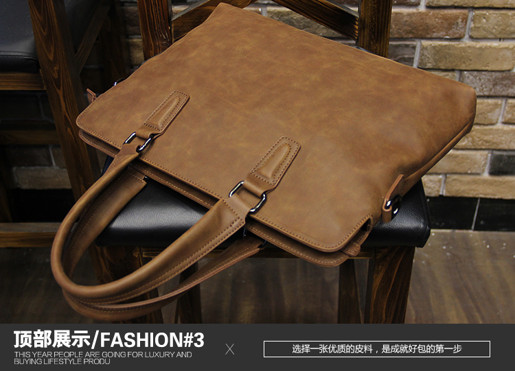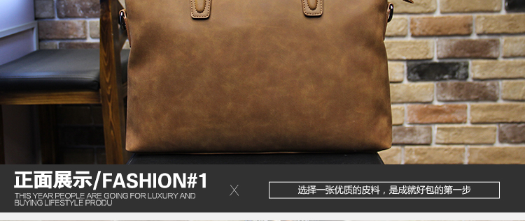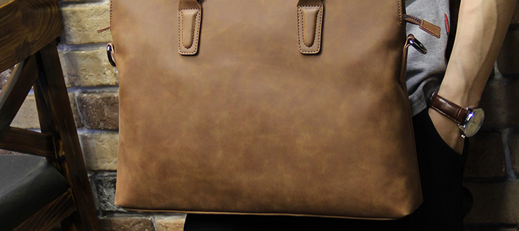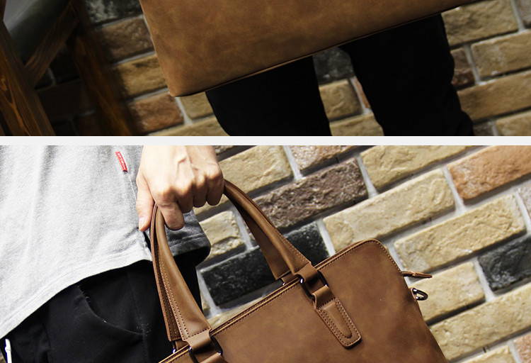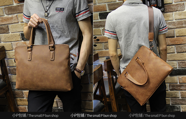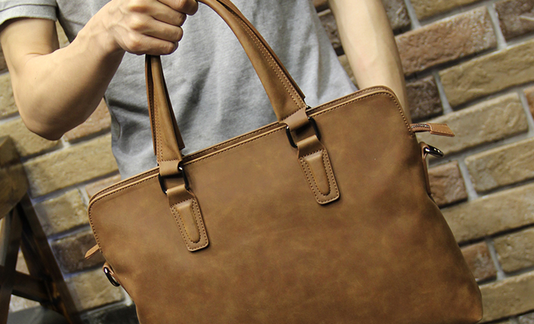 男包韩版潮流疯马皮男士手提包商务单肩包男公文包斜挎电脑包休闲