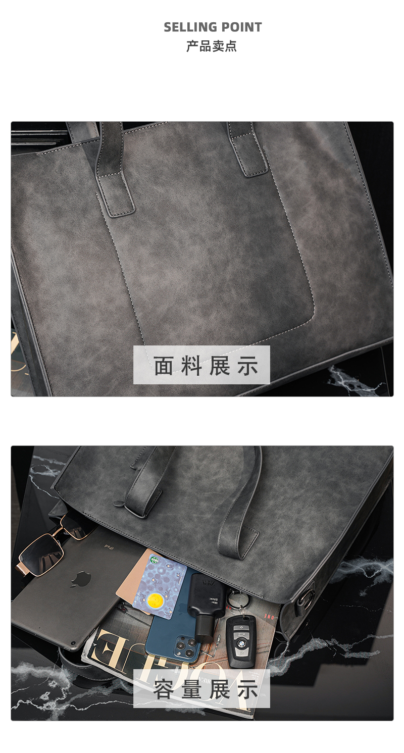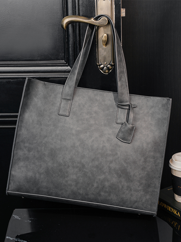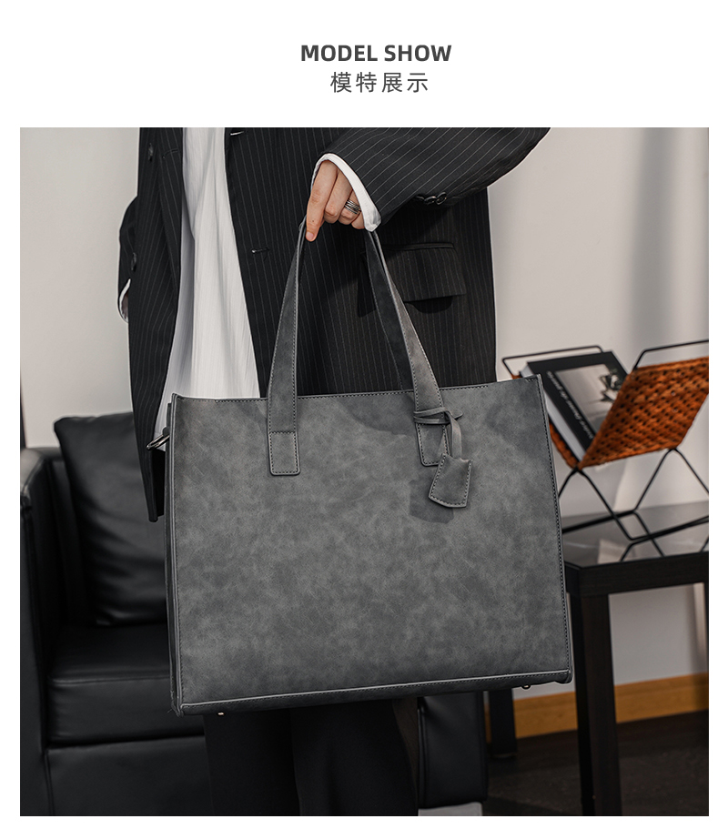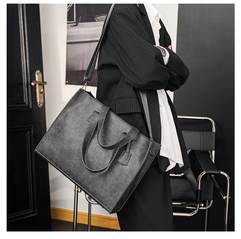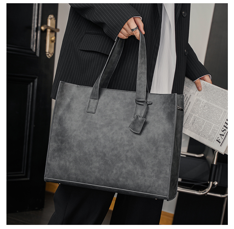 磨砂复古大容量托特包 韩版男包横款单肩包文件包休闲出差公文包
