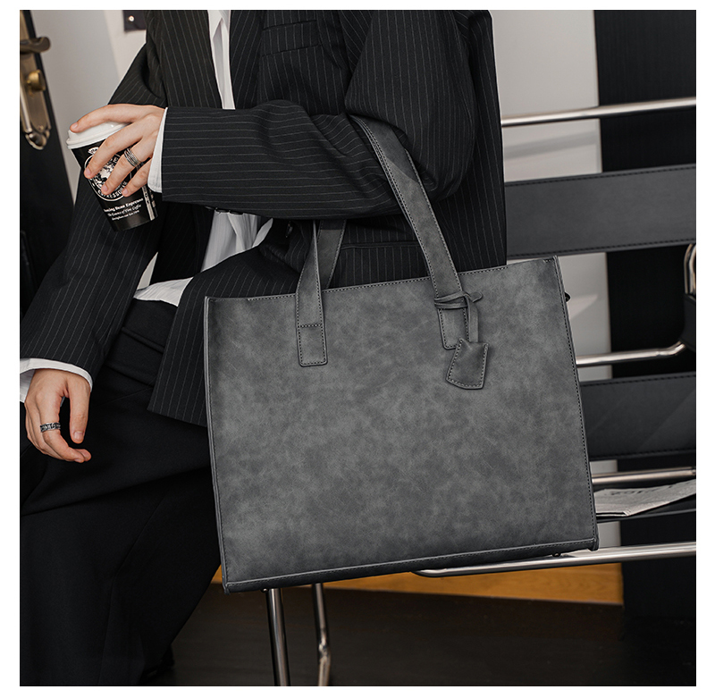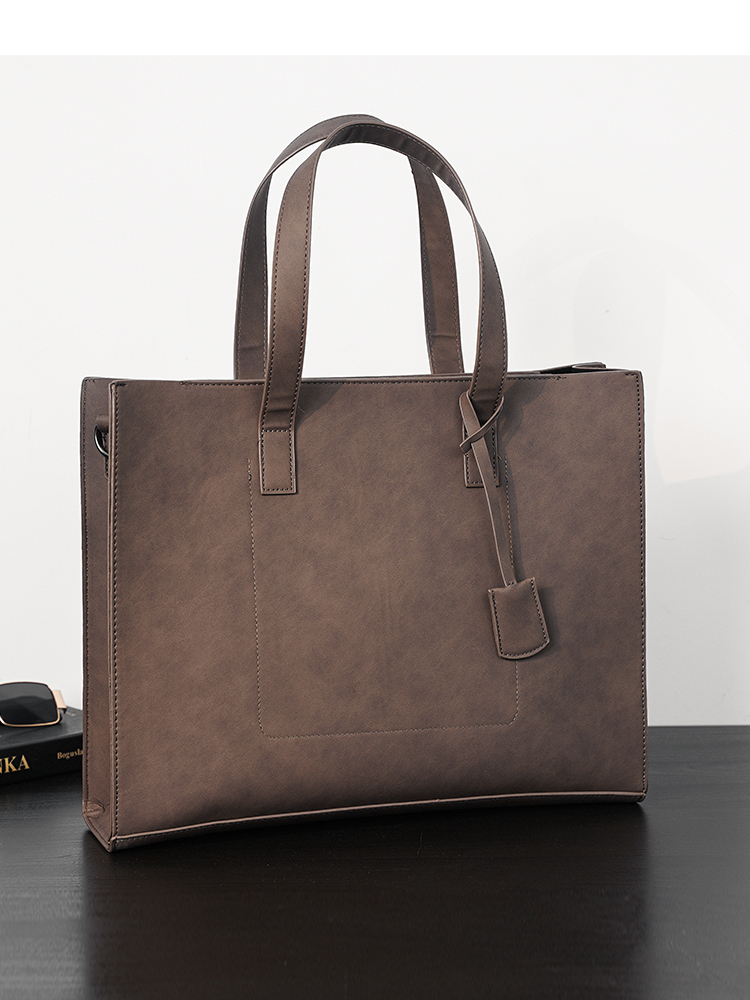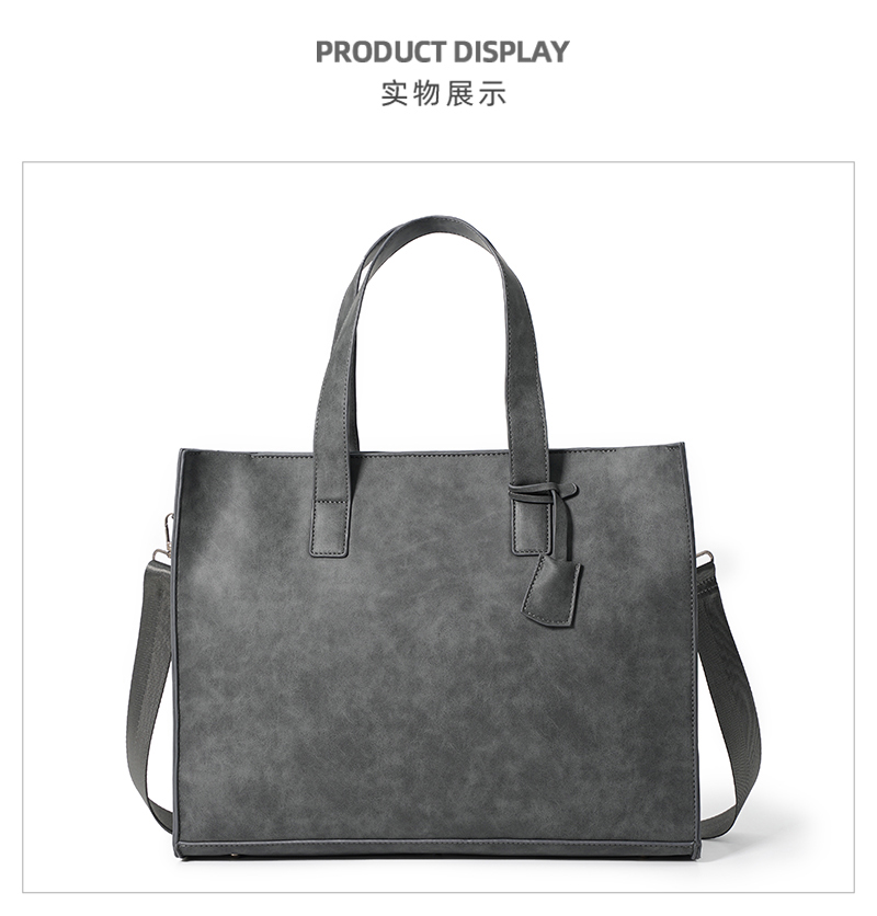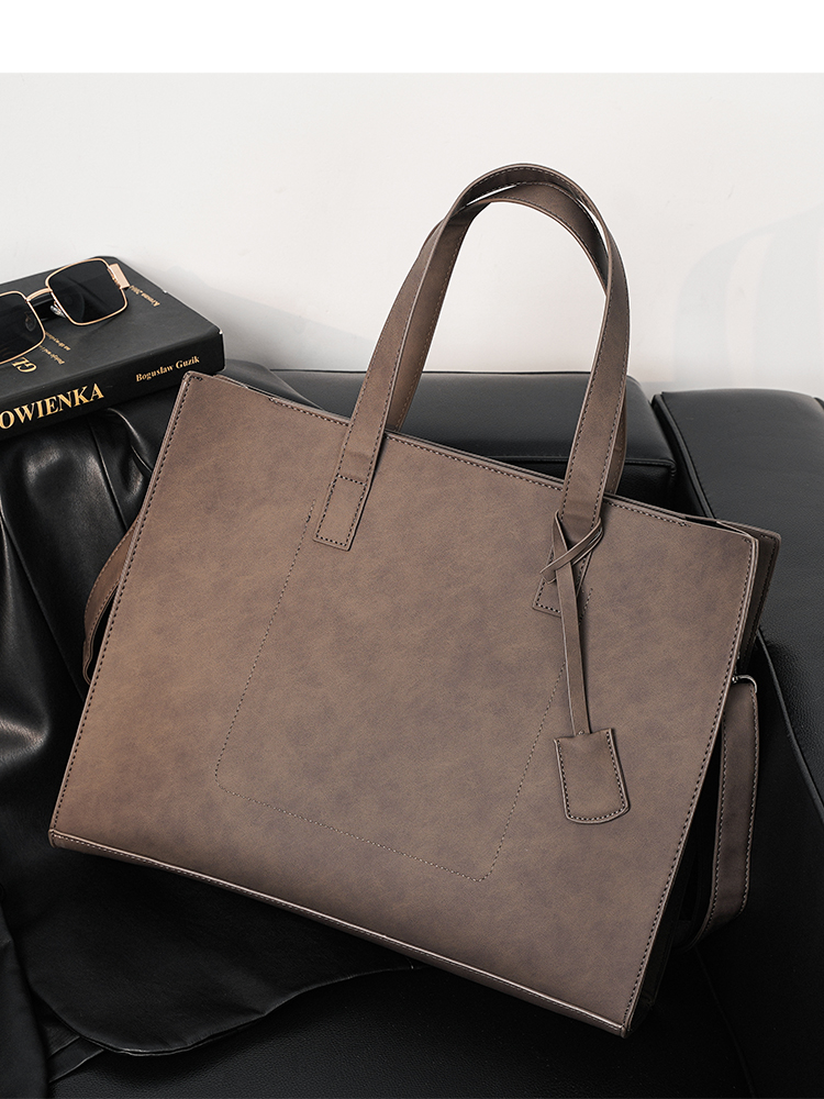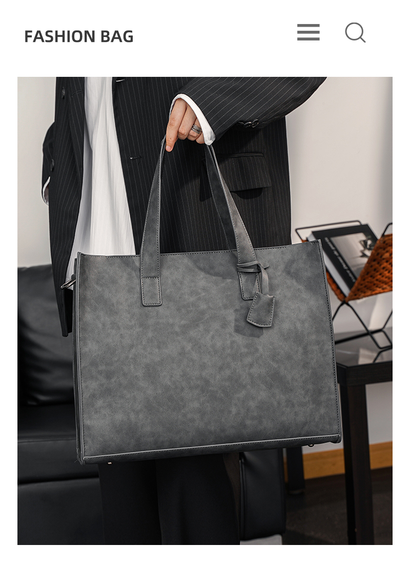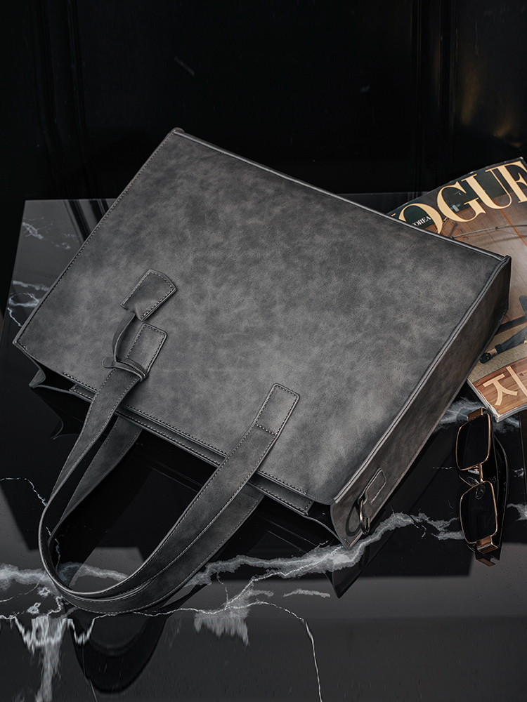 磨砂复古大容量托特包 韩版男包横款单肩包文件包休闲出差公文包