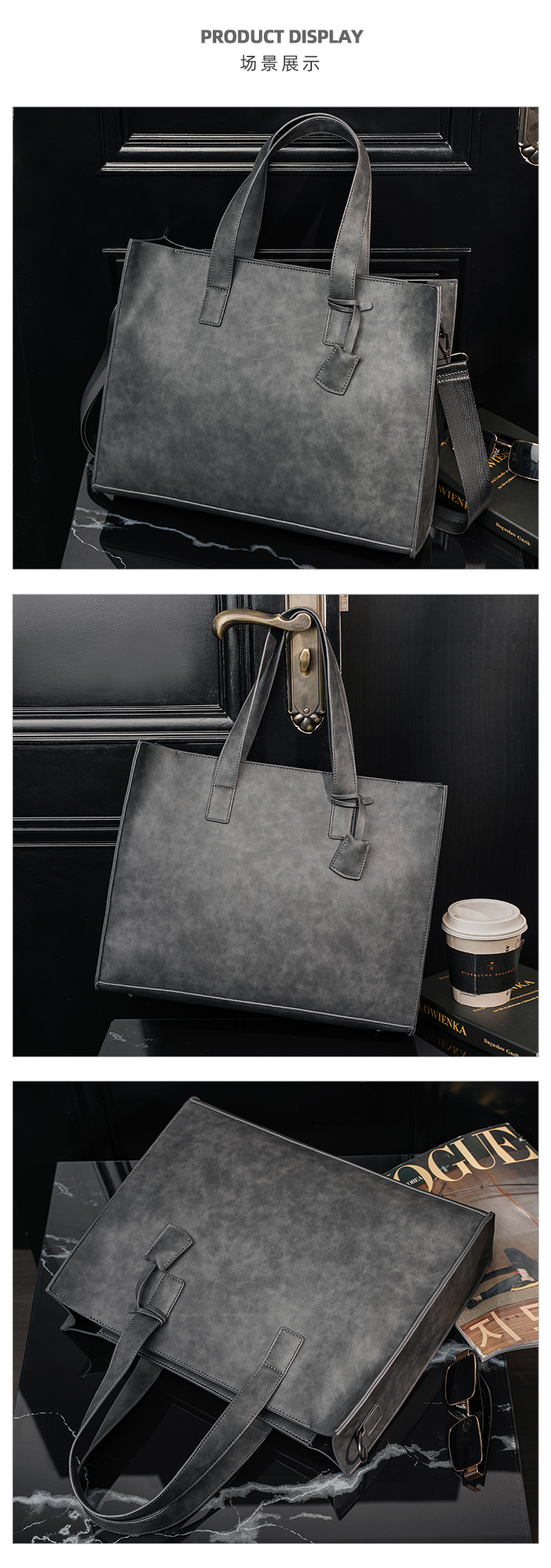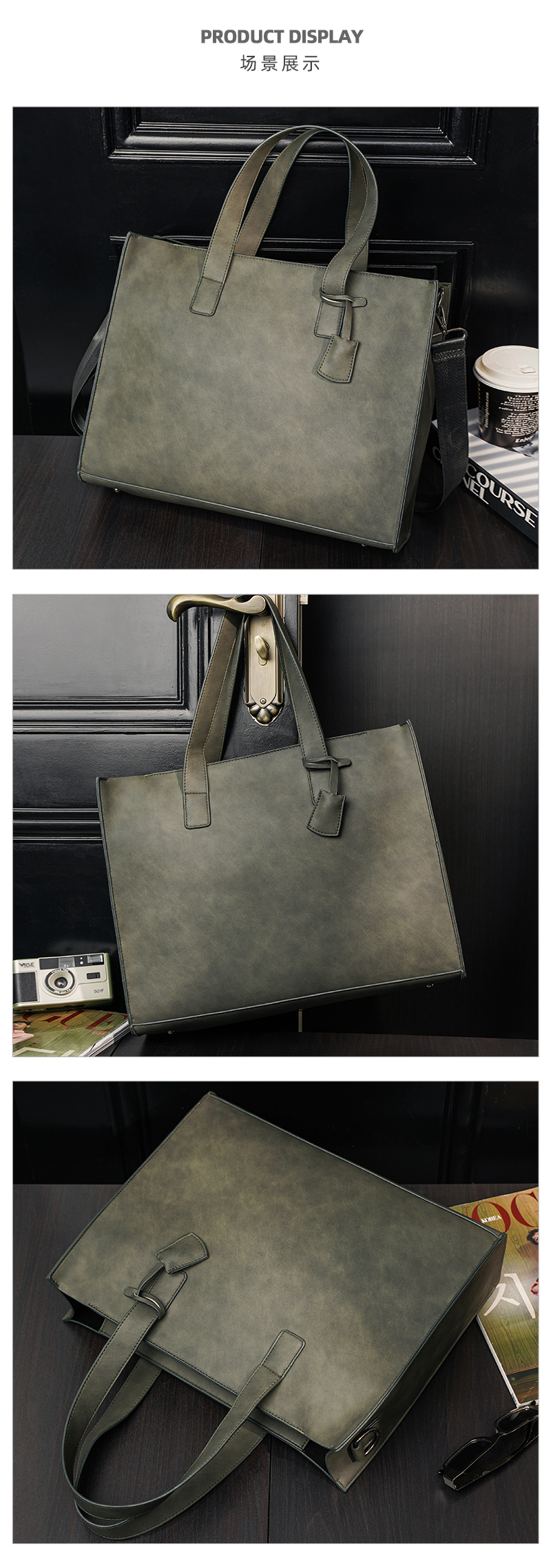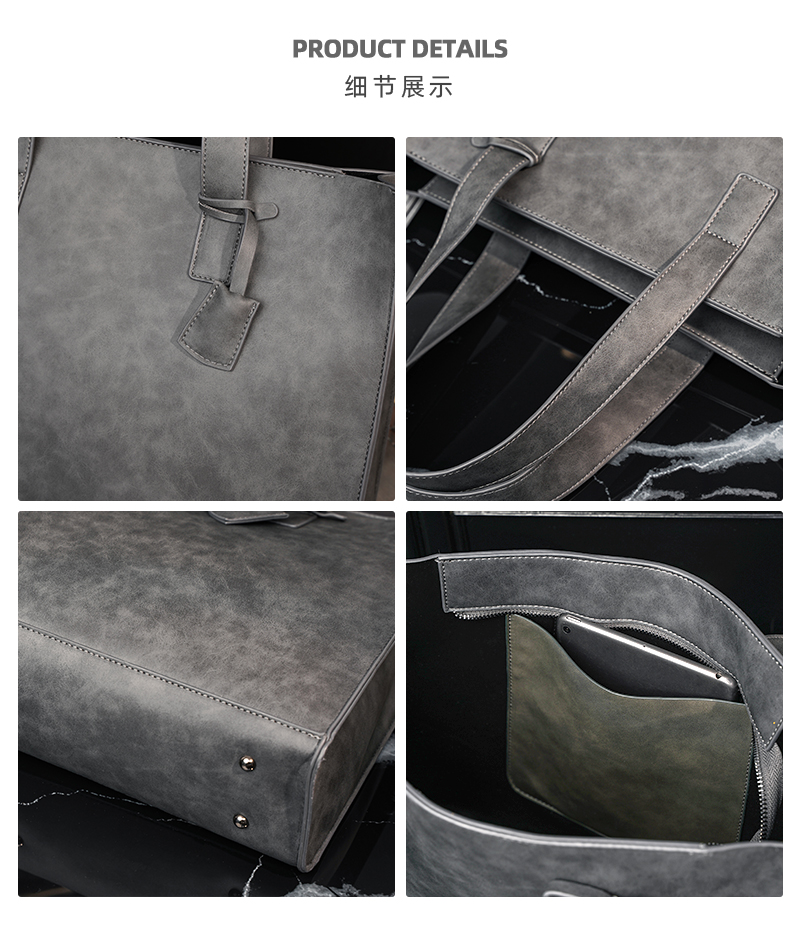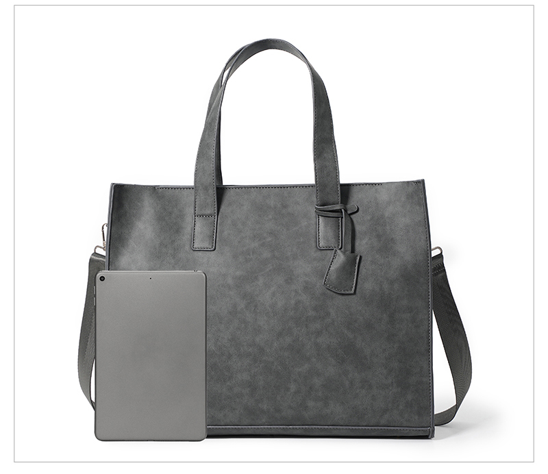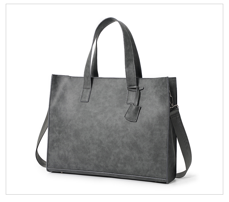 磨砂复古大容量托特包 韩版男包横款单肩包文件包休闲出差公文包
