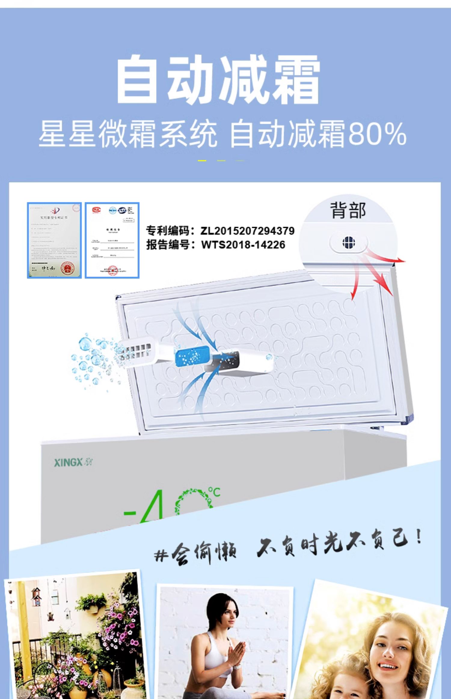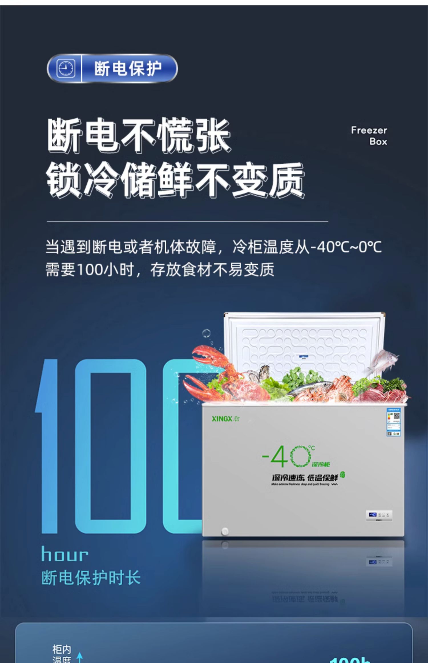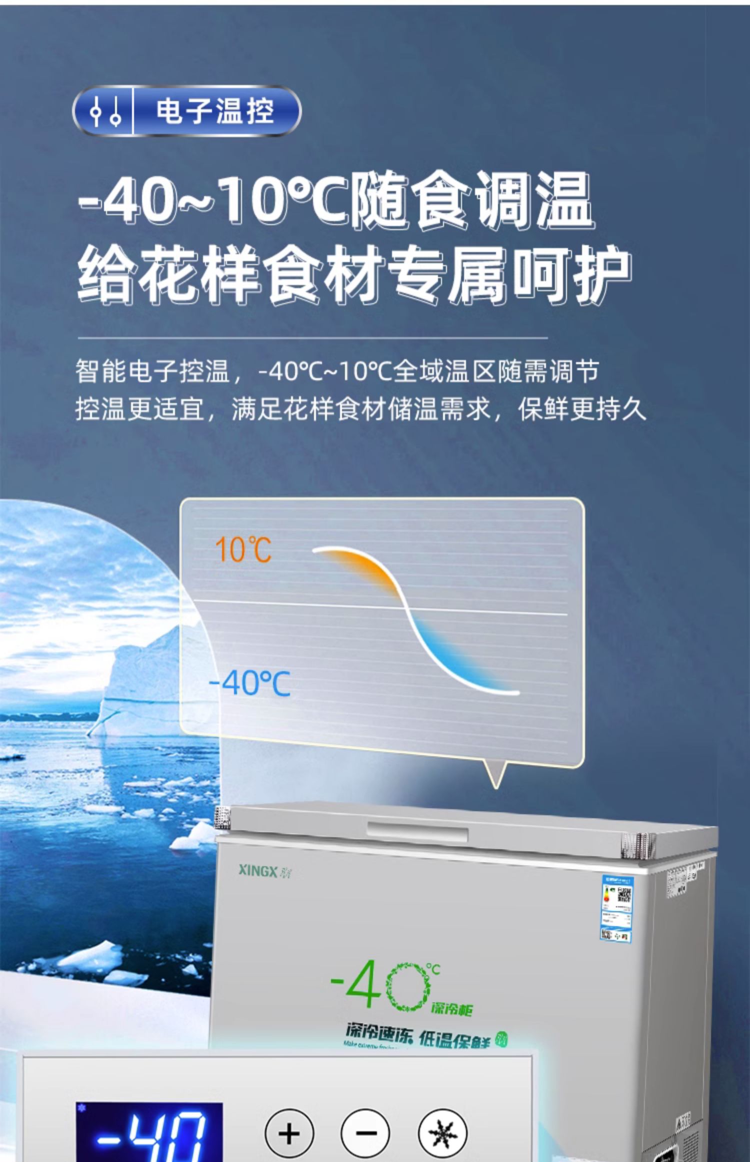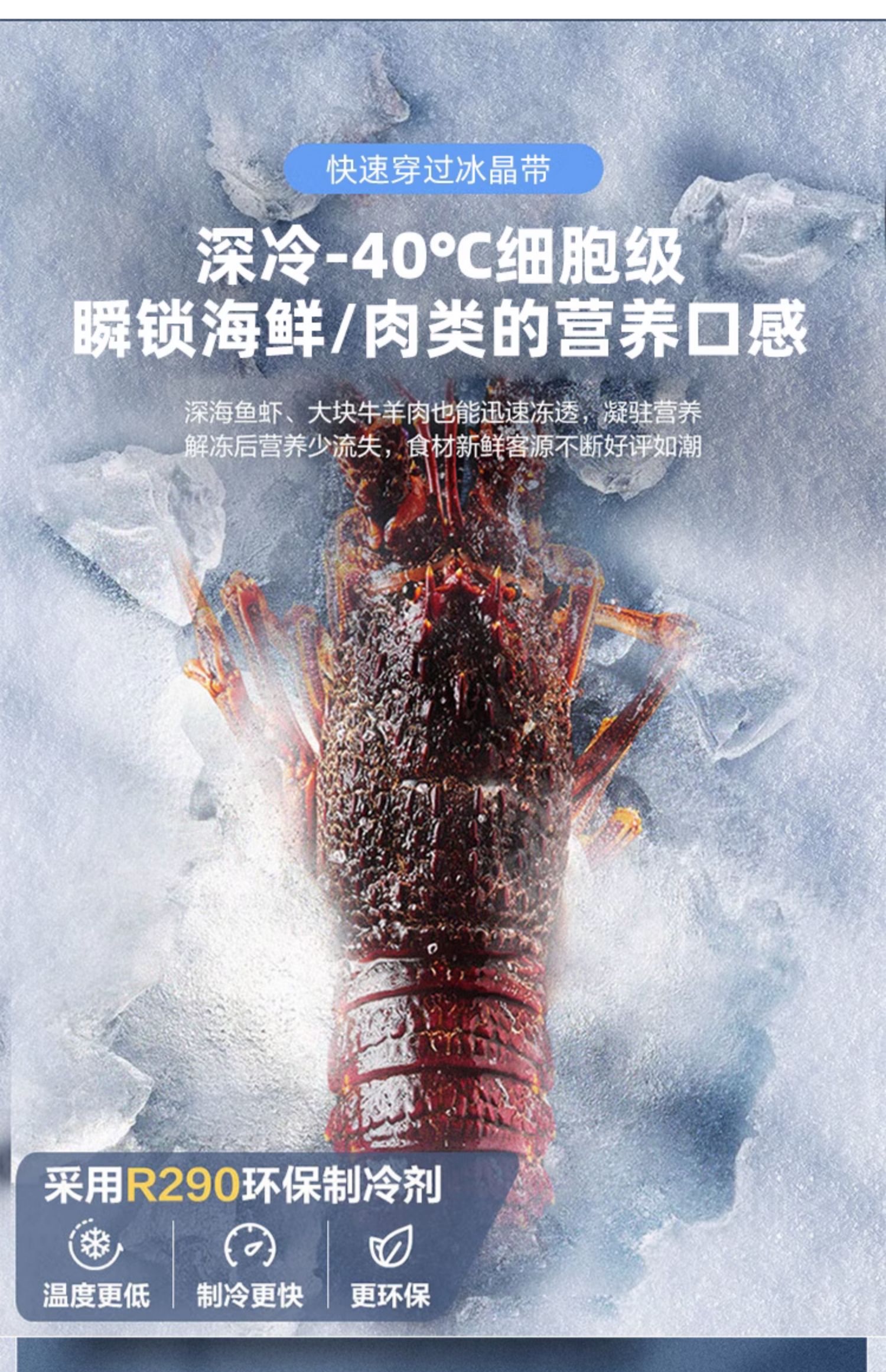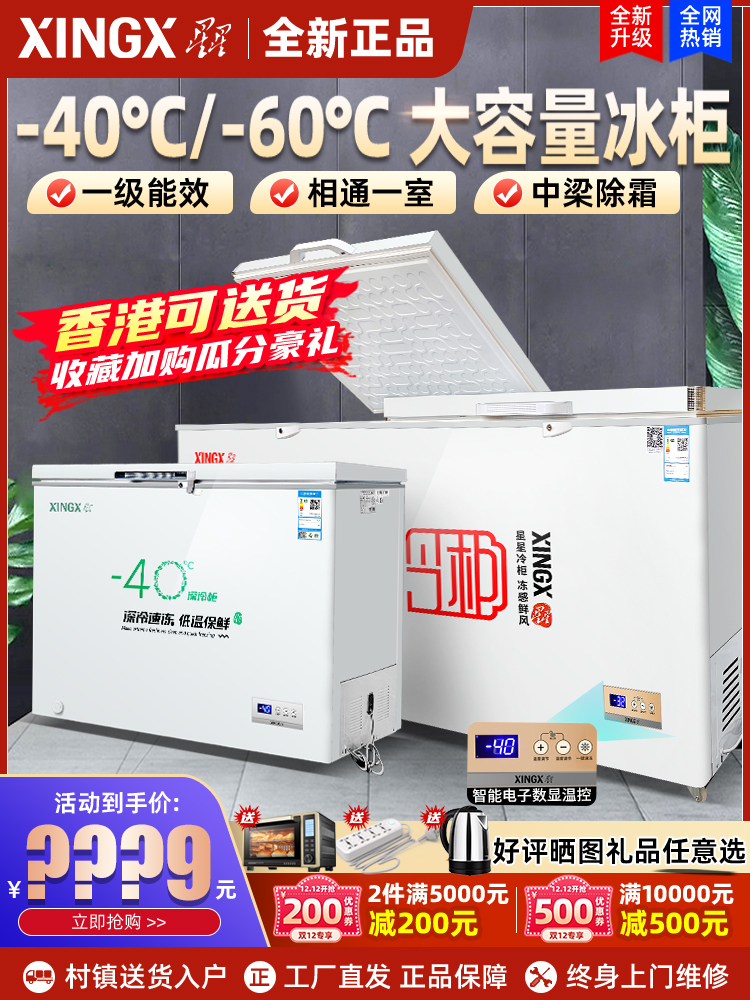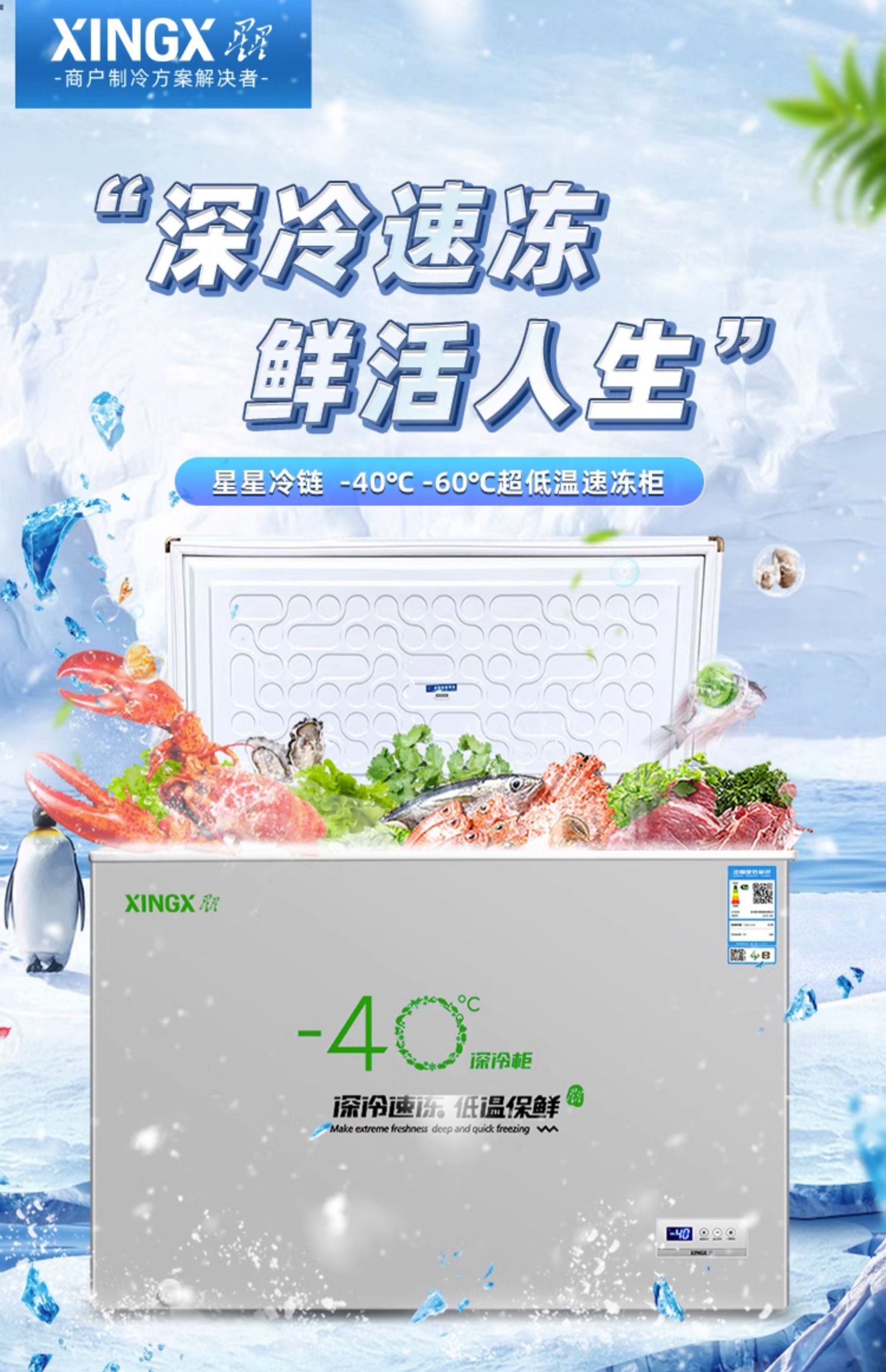 星星超低温负-40度冰柜零下-60℃冷冻冰箱卧式商用速冻海鲜急冻柜