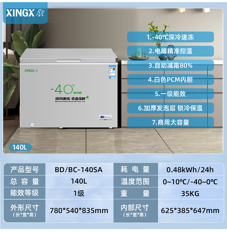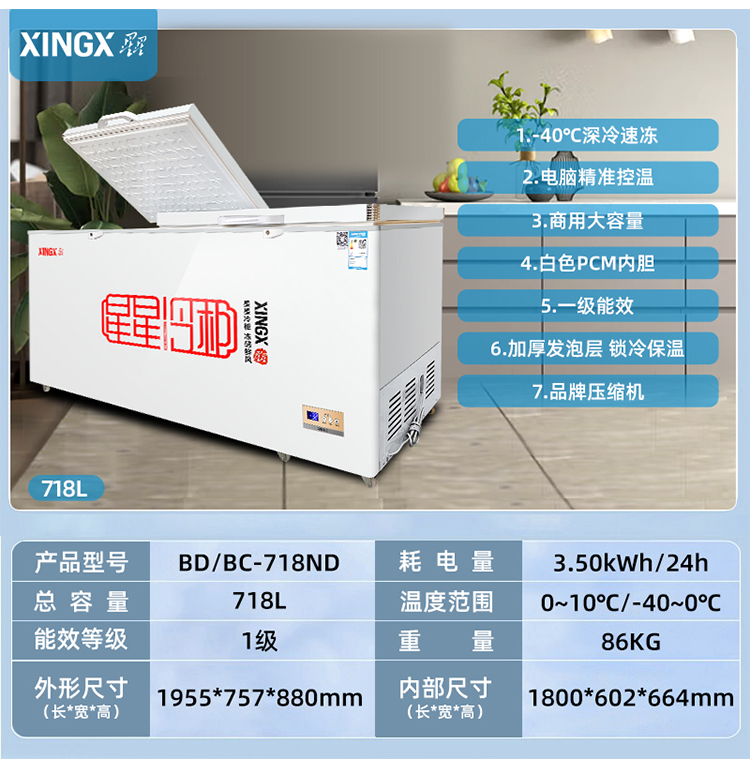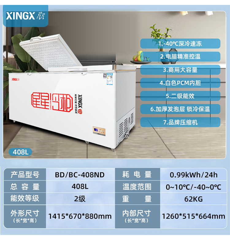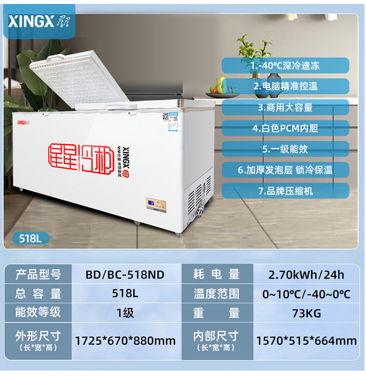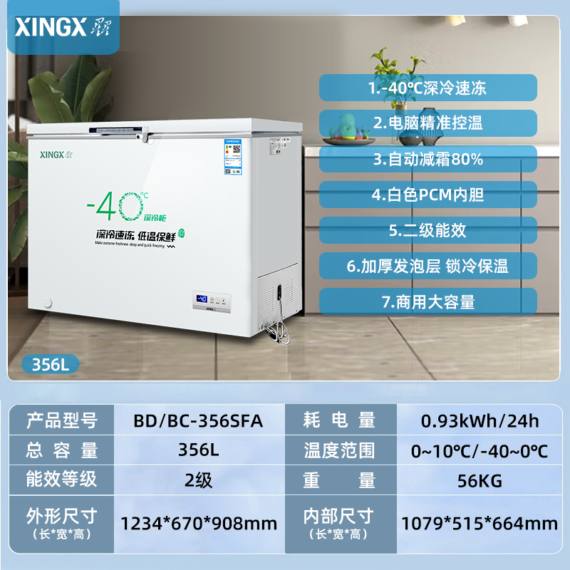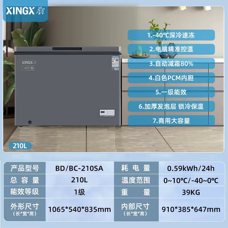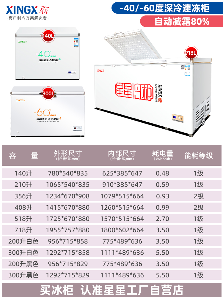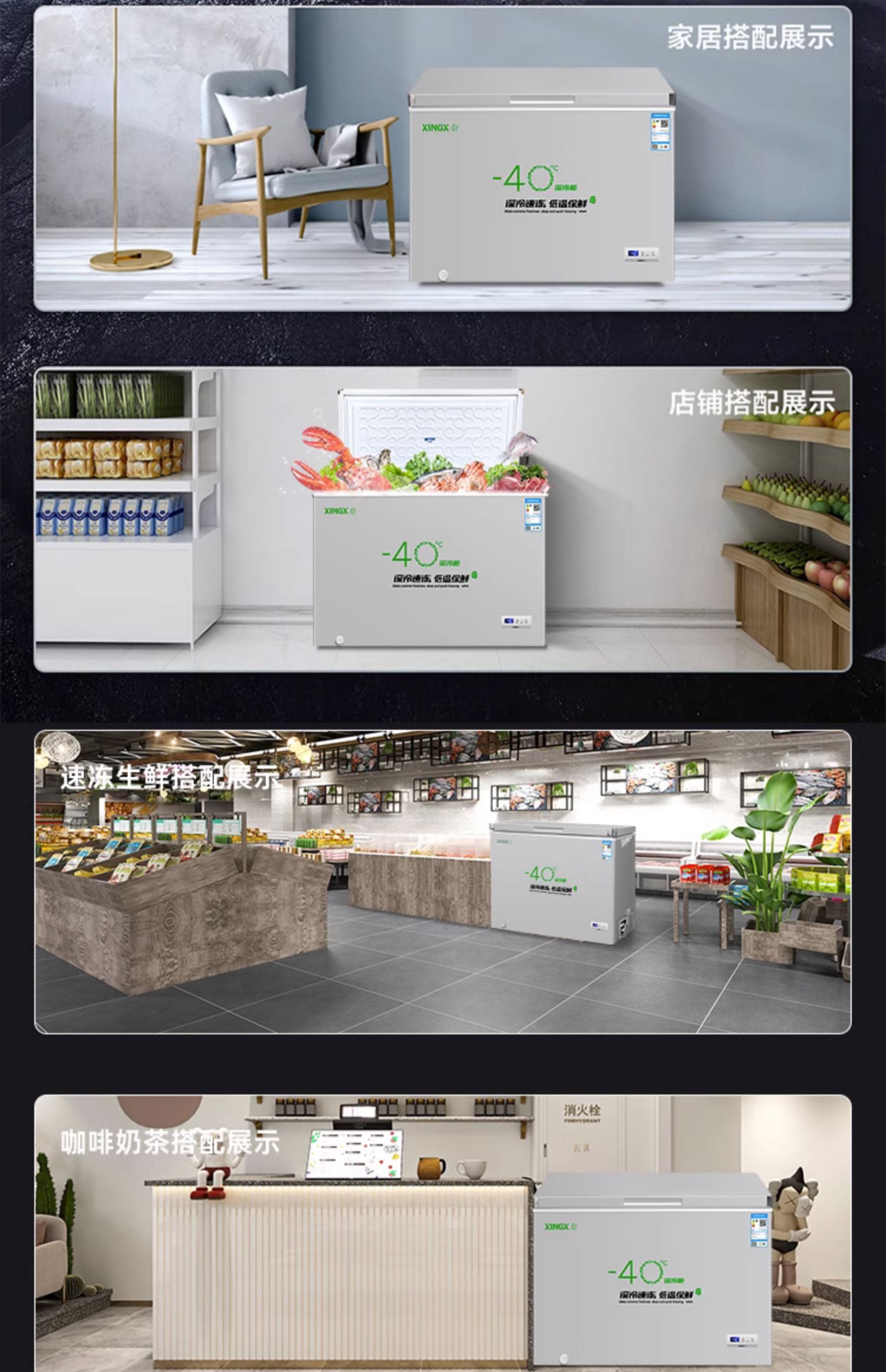 星星超低温负-40度冰柜零下-60℃冷冻冰箱卧式商用速冻海鲜急冻柜