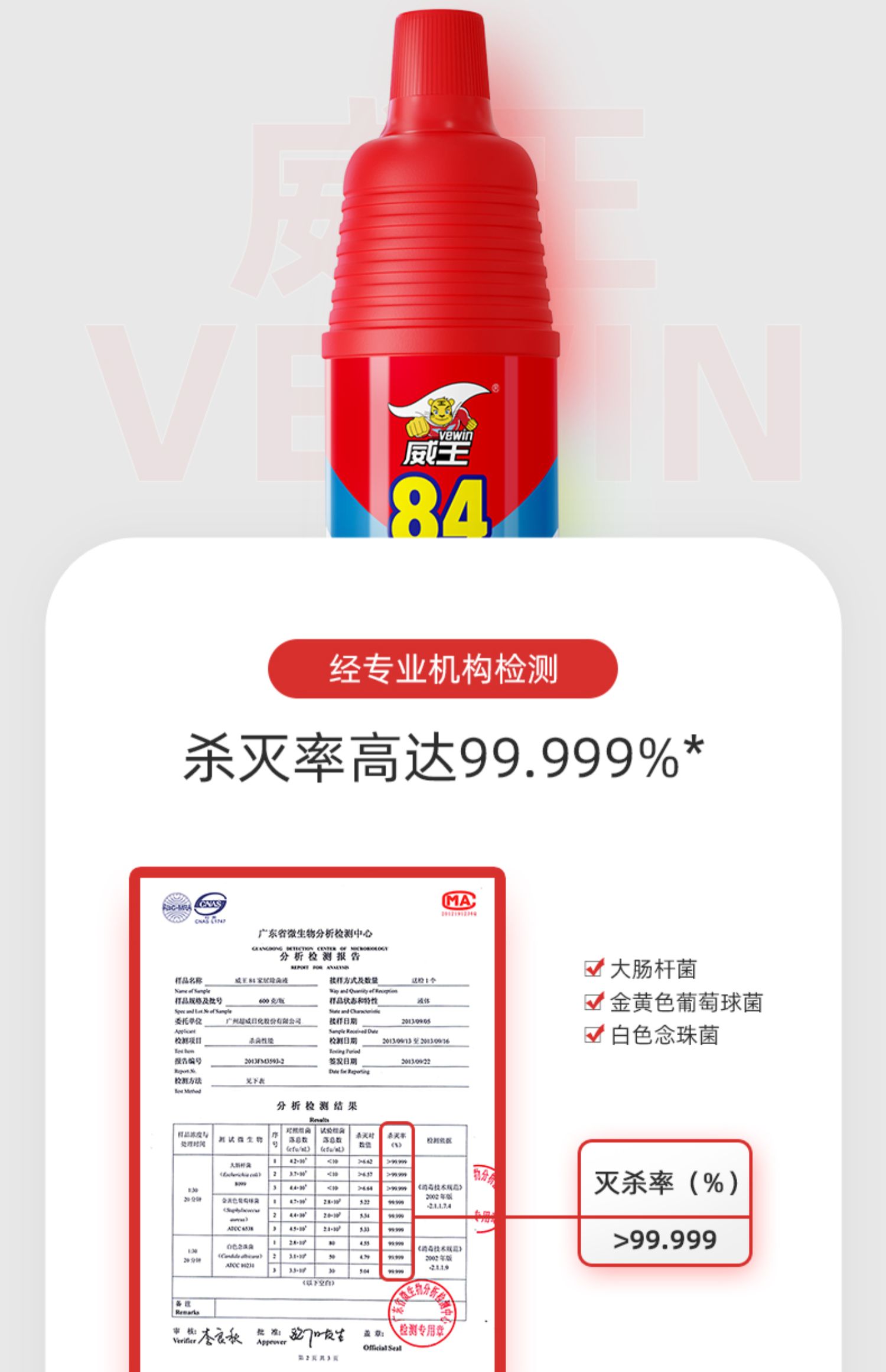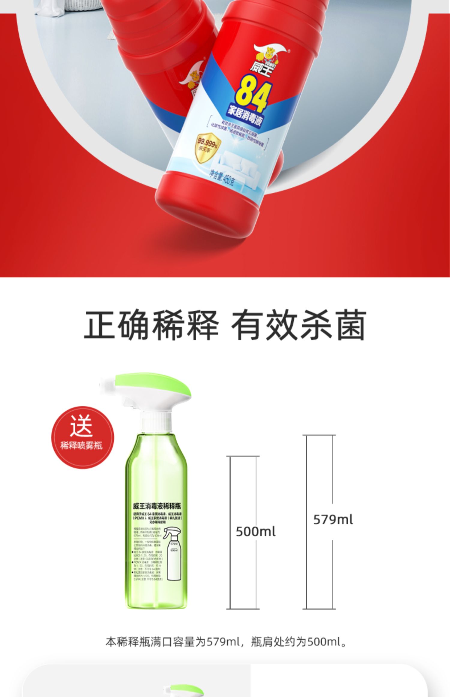 威王84消毒液洗衣家用含氯八四次氯酸杀菌室内可做喷雾消毒水600g