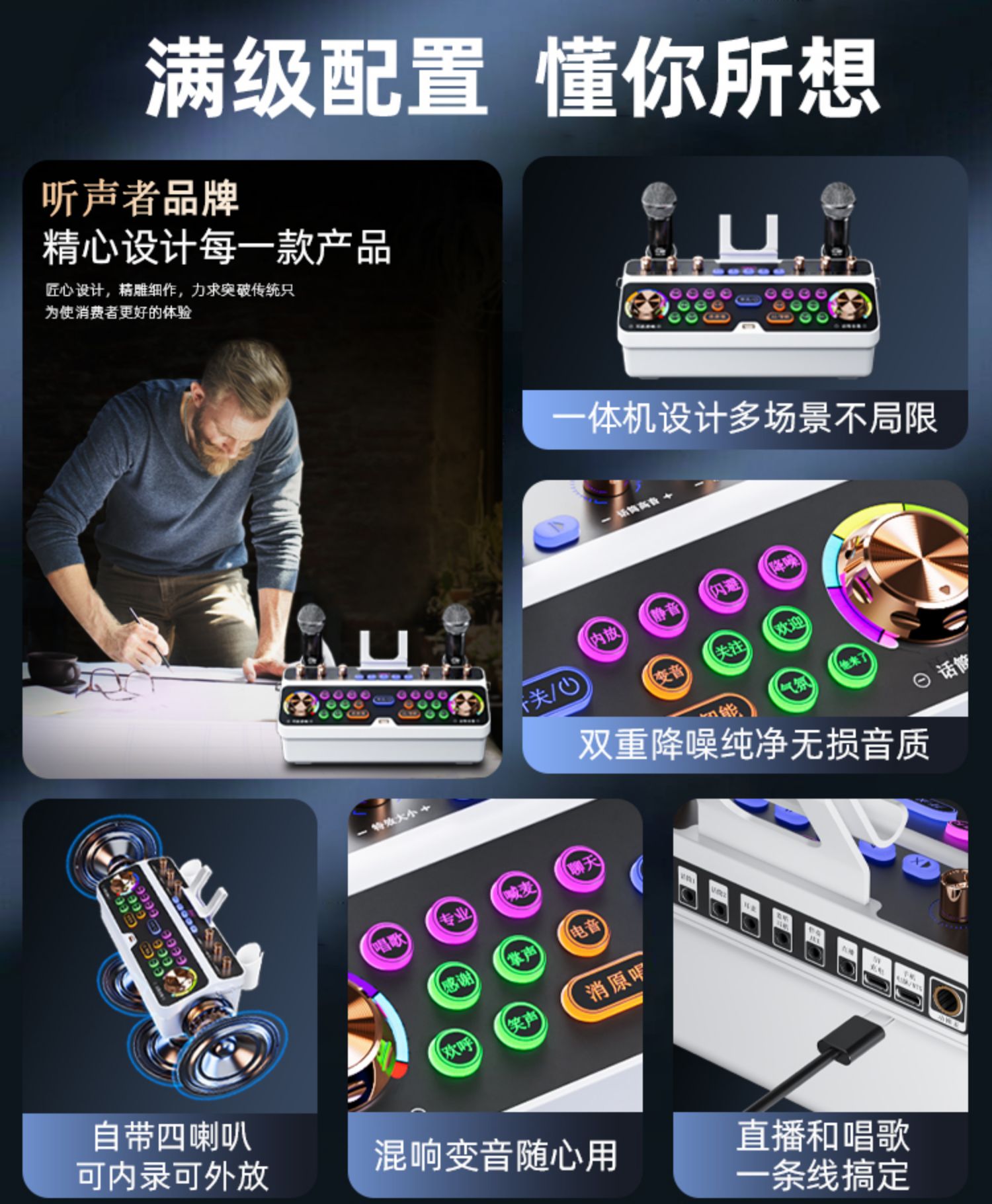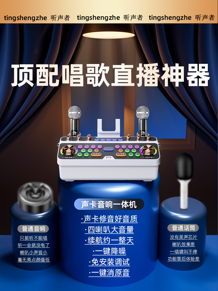 听声者直播专用声卡设备电视k歌家用唱歌话筒音响一体无线麦克风