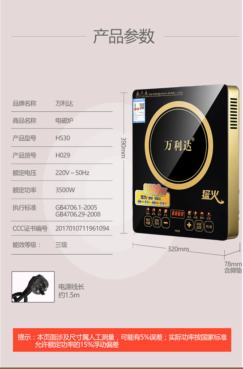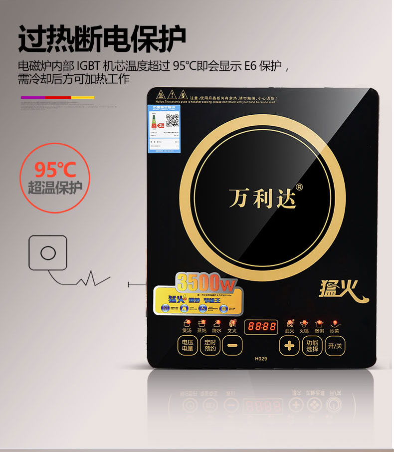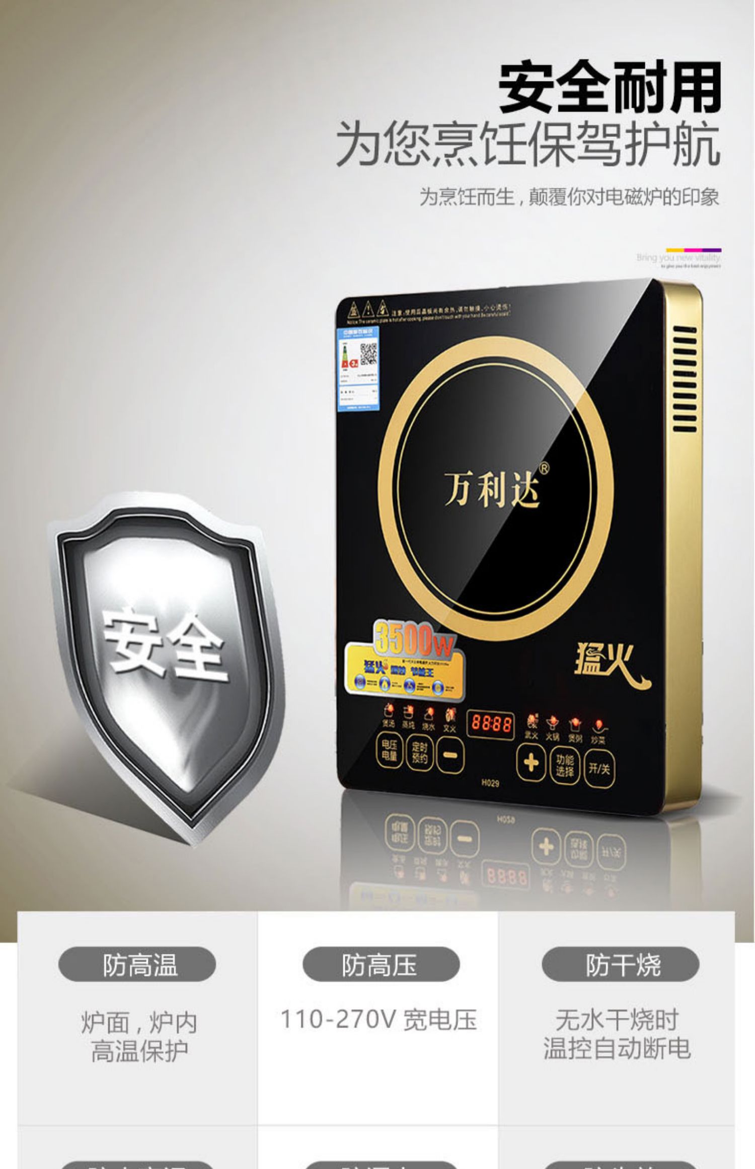 万利达商用电磁炉大功率3500W猛火爆炒电磁灶预约定时家用烧水