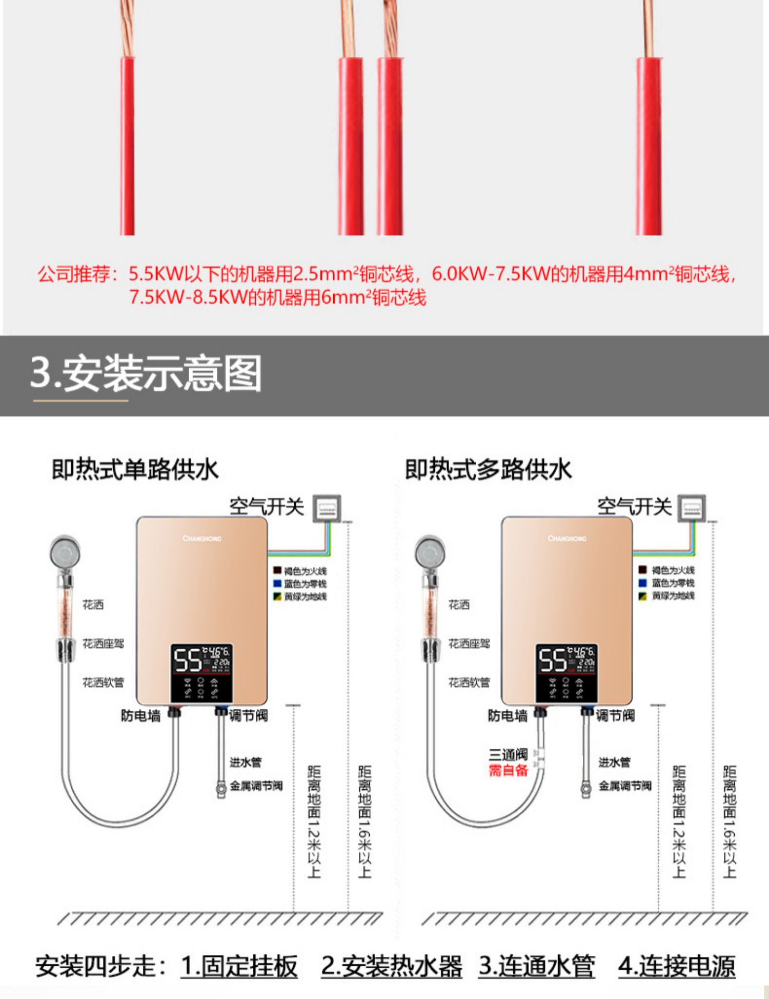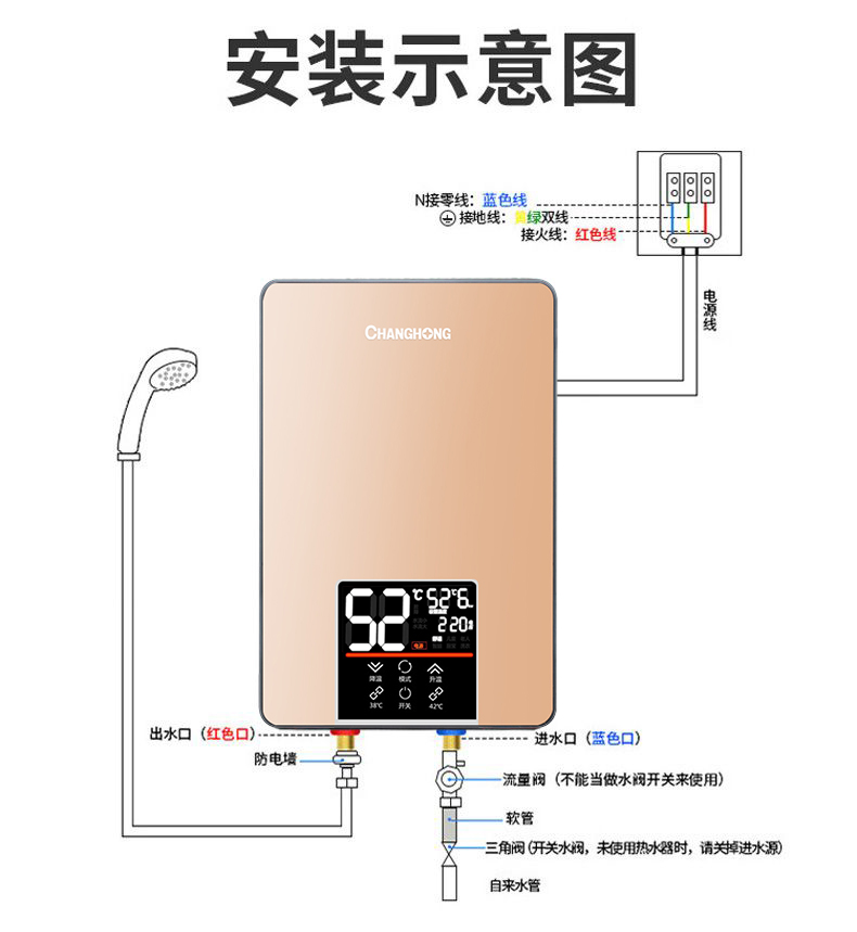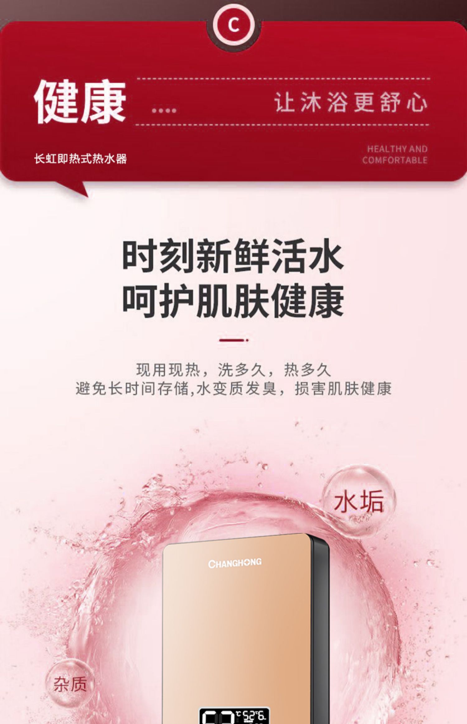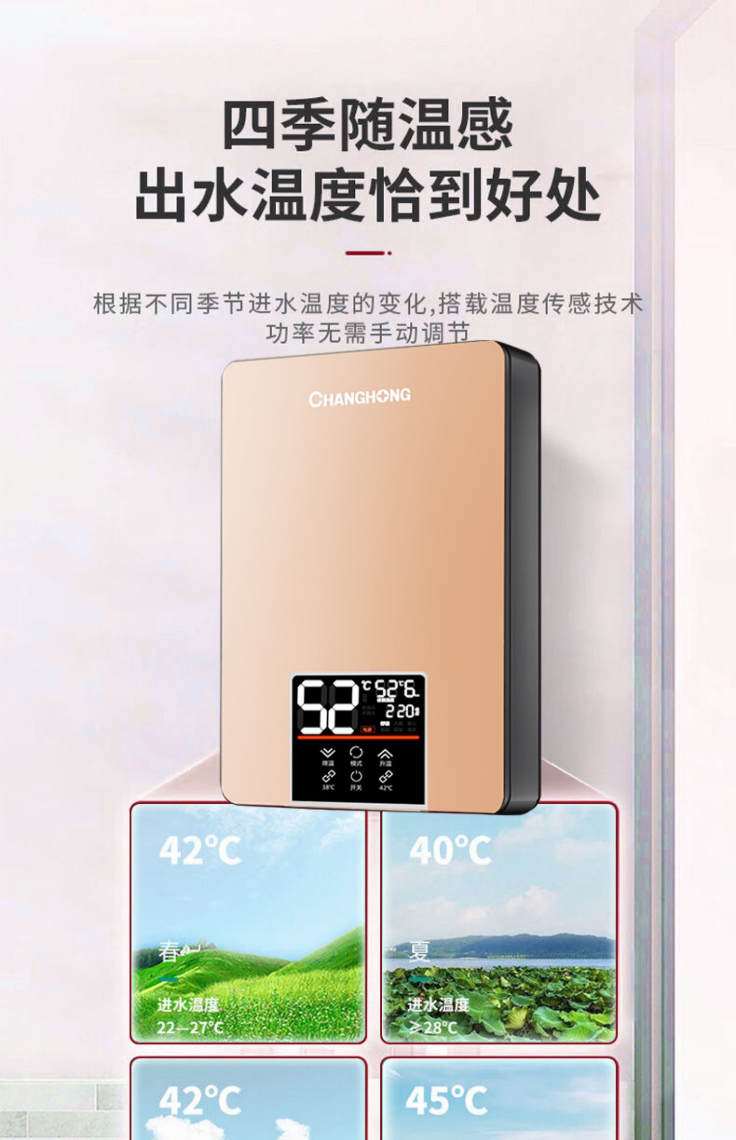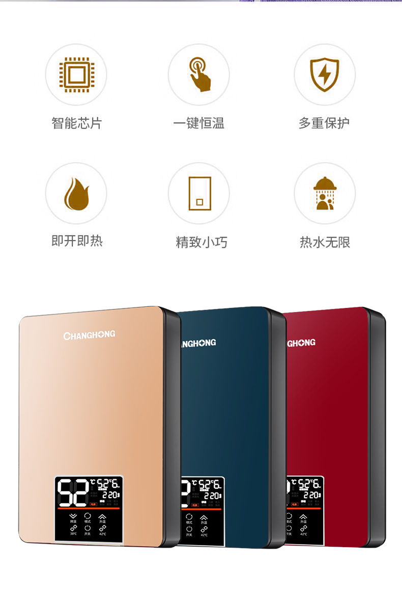 长虹6000W恒温即热式电热水器家用 速热小型洗澡神器卫生间出租房