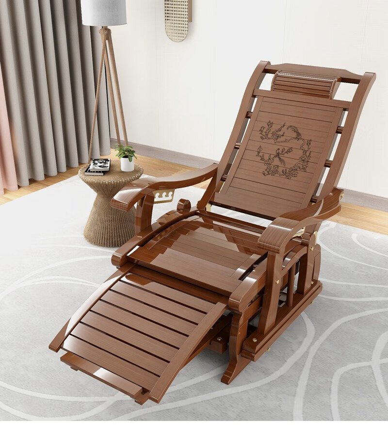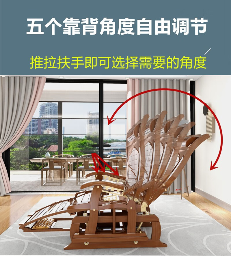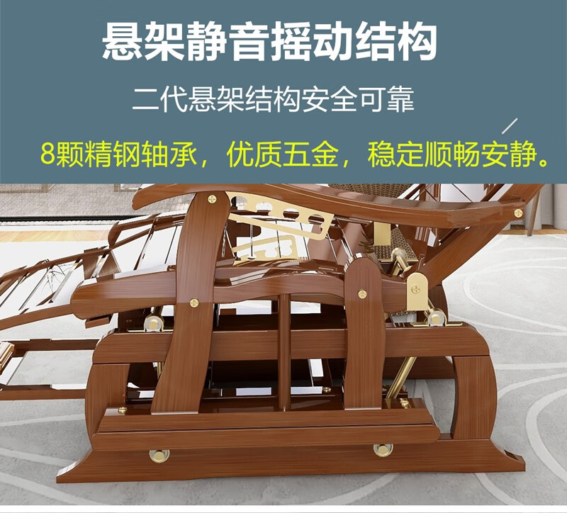 芊翠居摇椅躺椅大人阳台家用午休休闲成人懒人午睡老人凉椅客厅坐躺两用 茶色静音加固摇椅不带垫