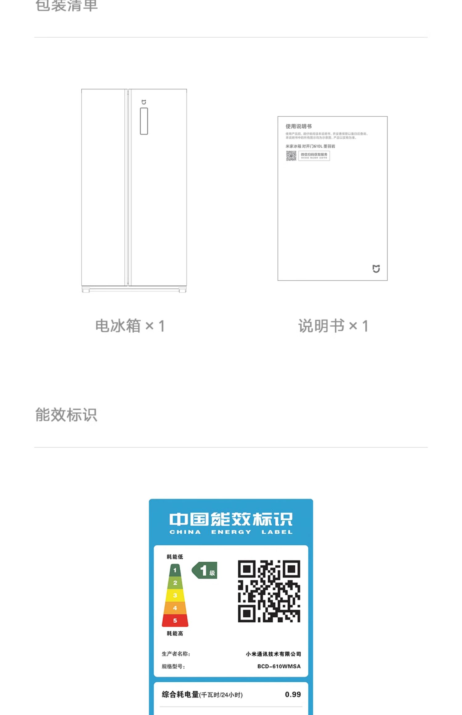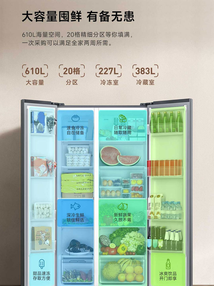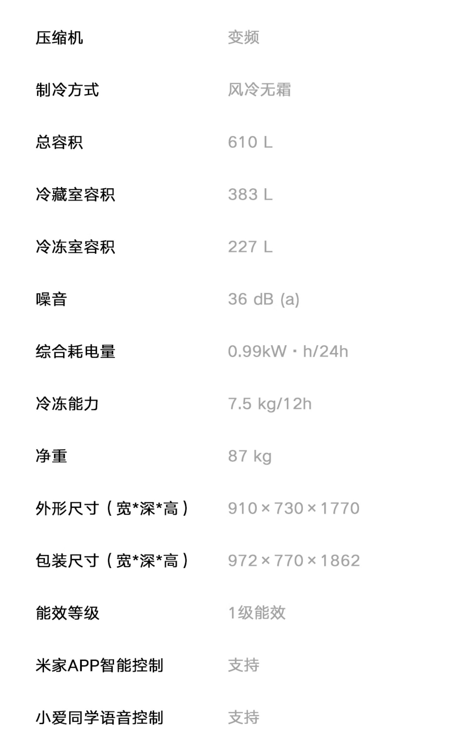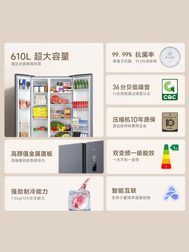 小米米家610L升双开对开门风冷无霜大容量冷藏冷冻一级变频电冰箱