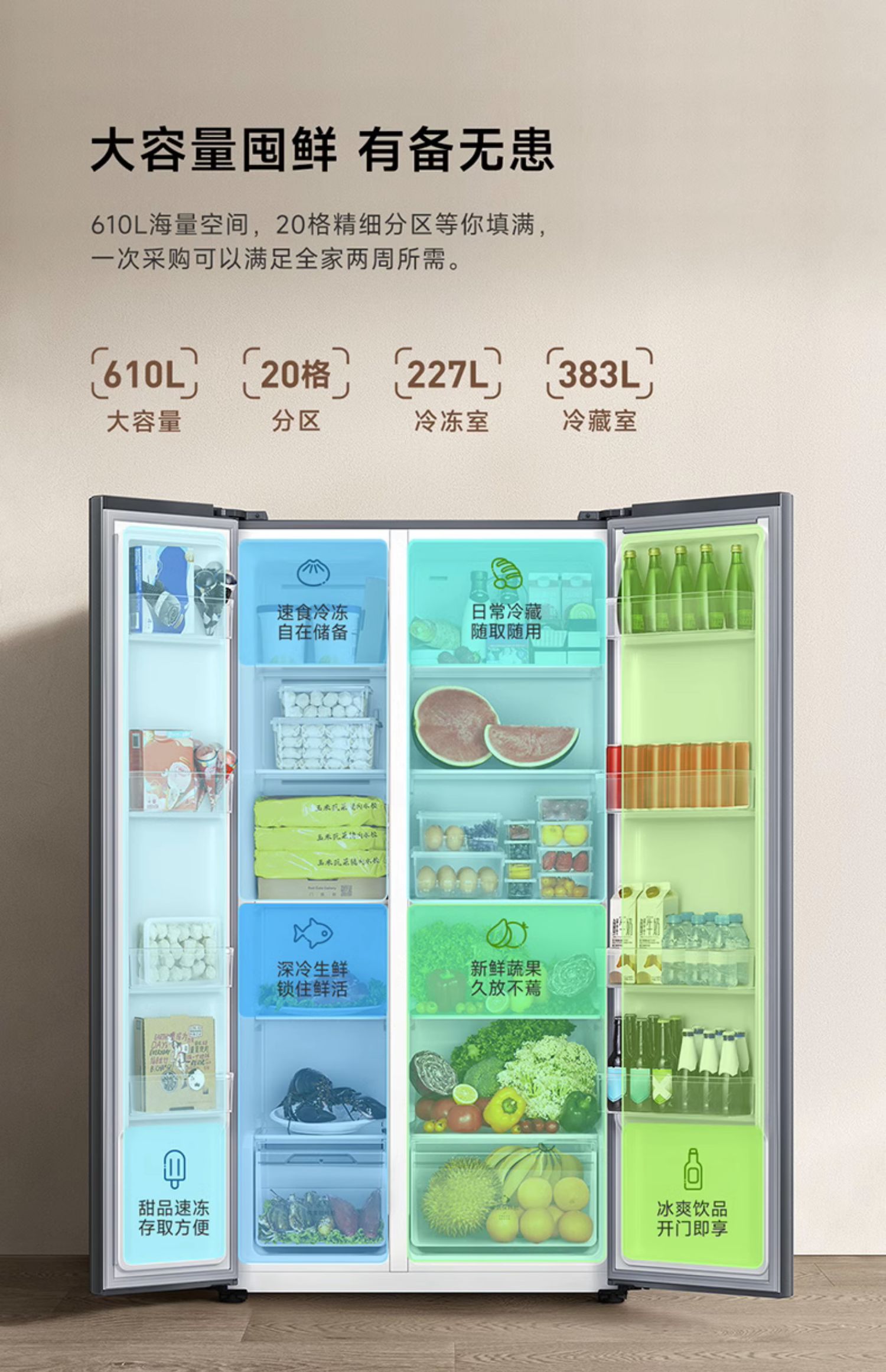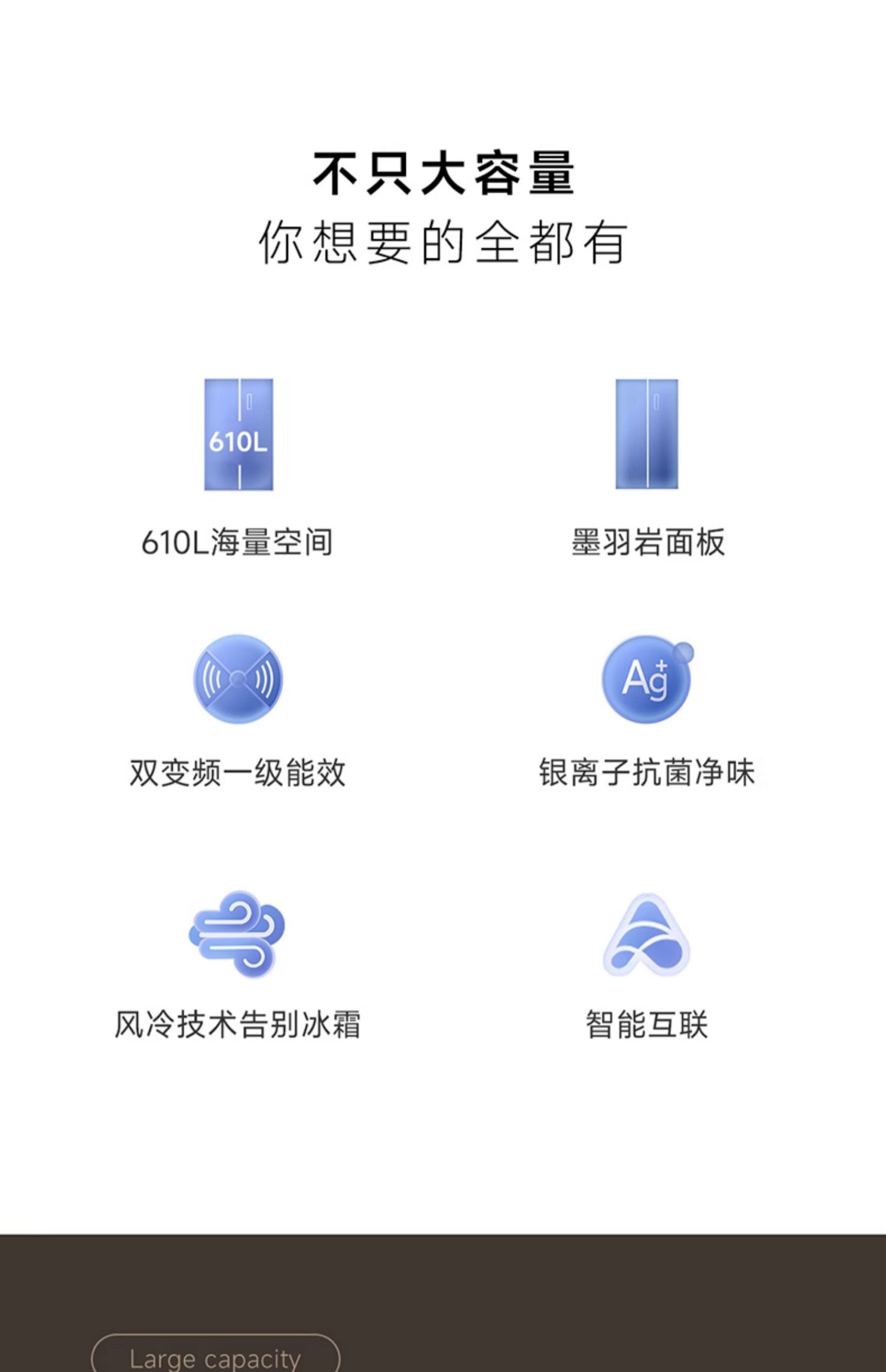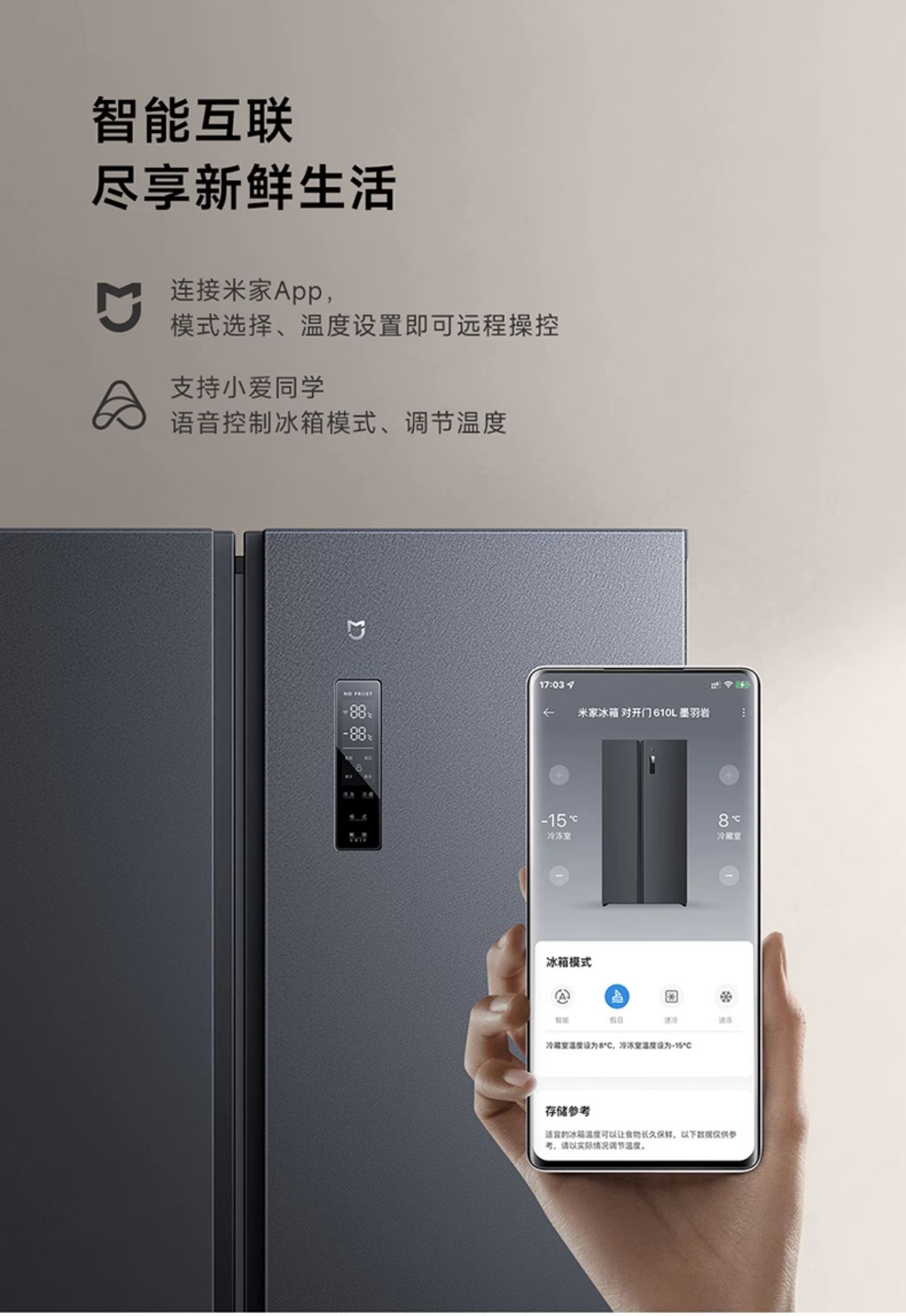 小米米家610L升双开对开门风冷无霜大容量冷藏冷冻一级变频电冰箱