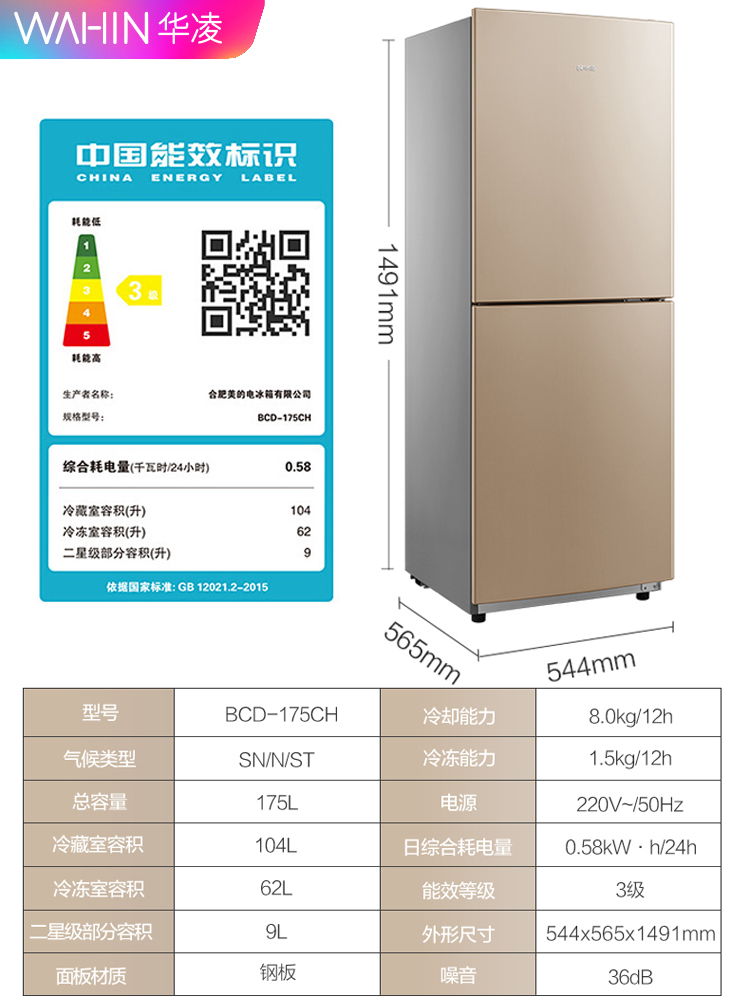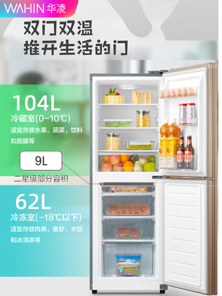 华凌 BCD-175CH两门冰箱家用小型三双门宿舍租房办公室静音电冰箱