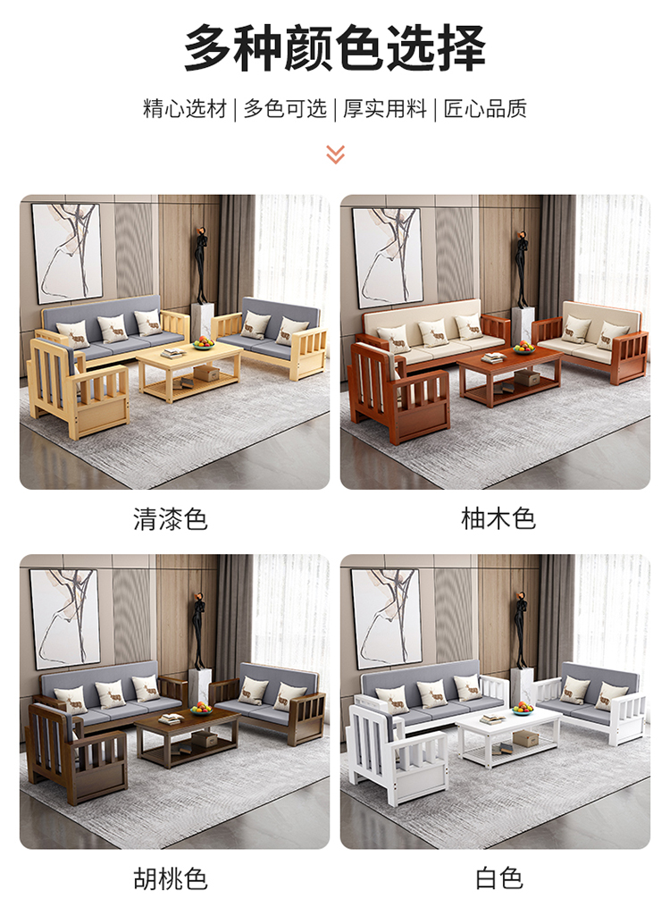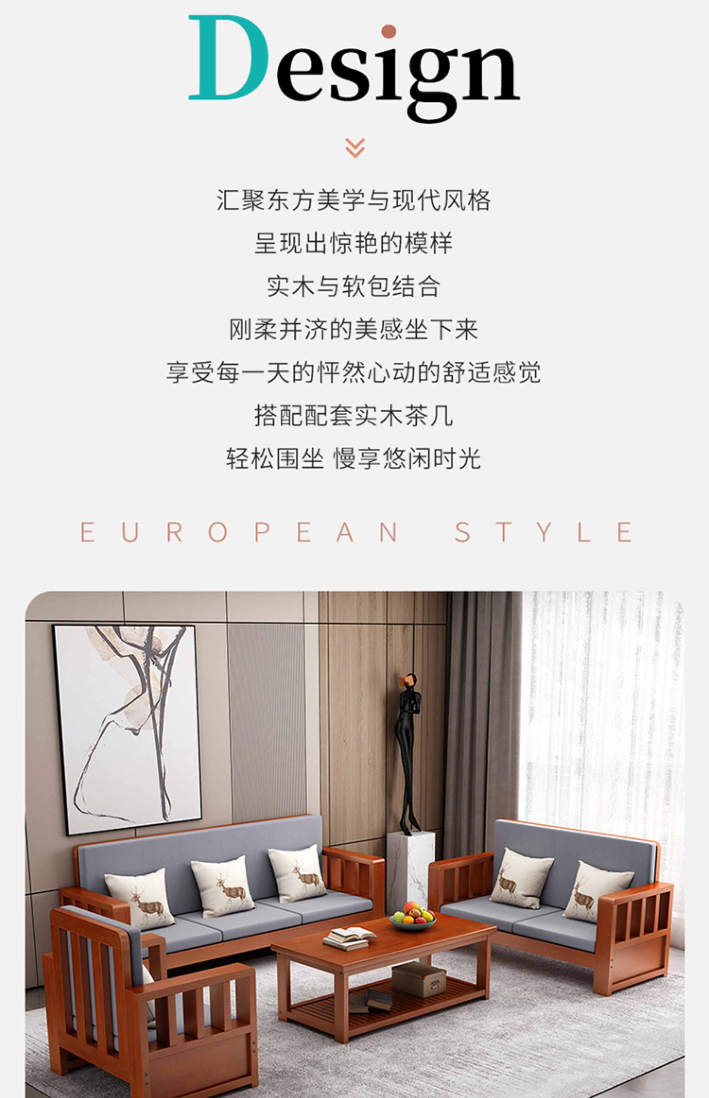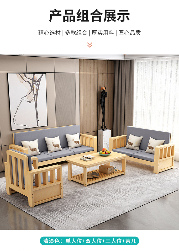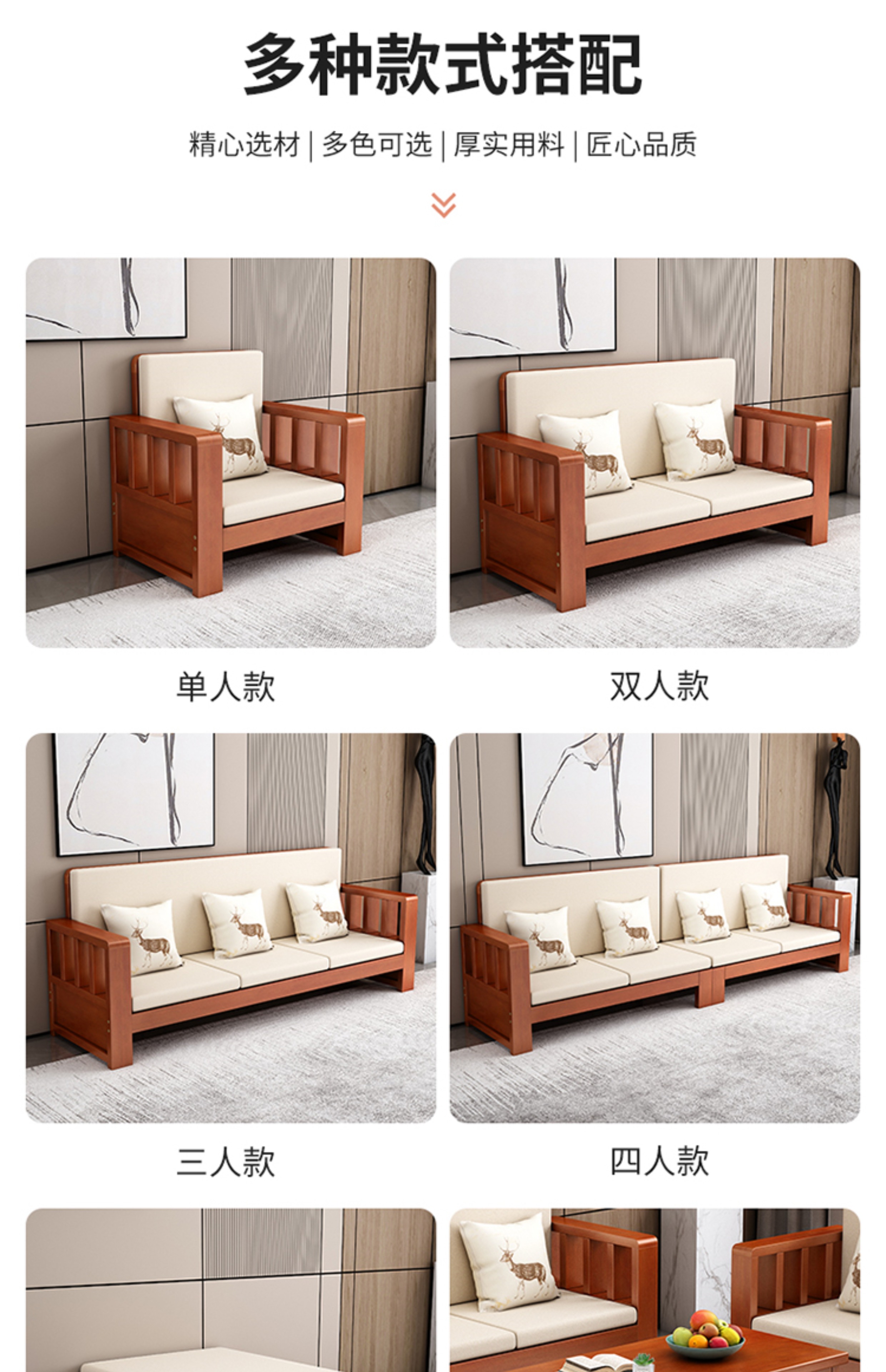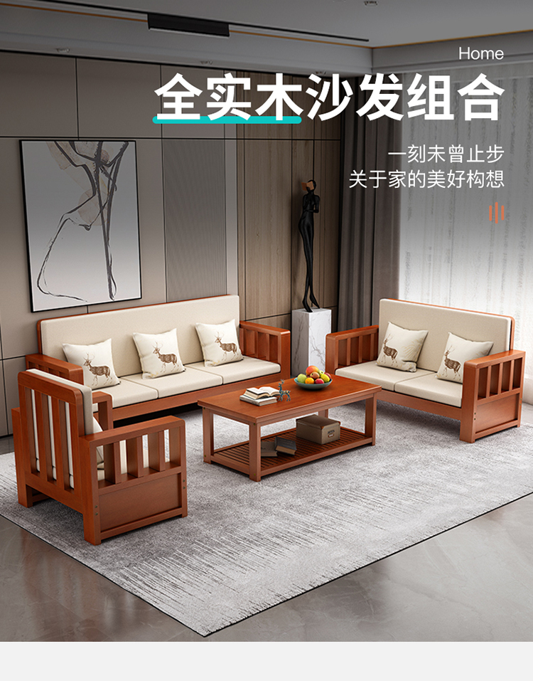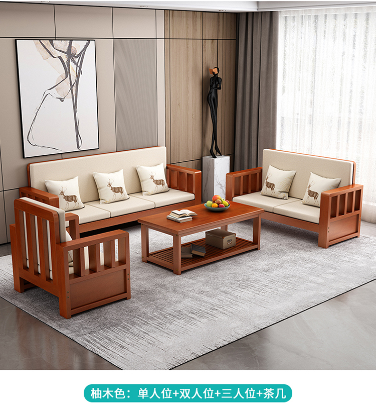 新中式实木沙发全实木客厅小户型现代简约家用双人沙发组合套装