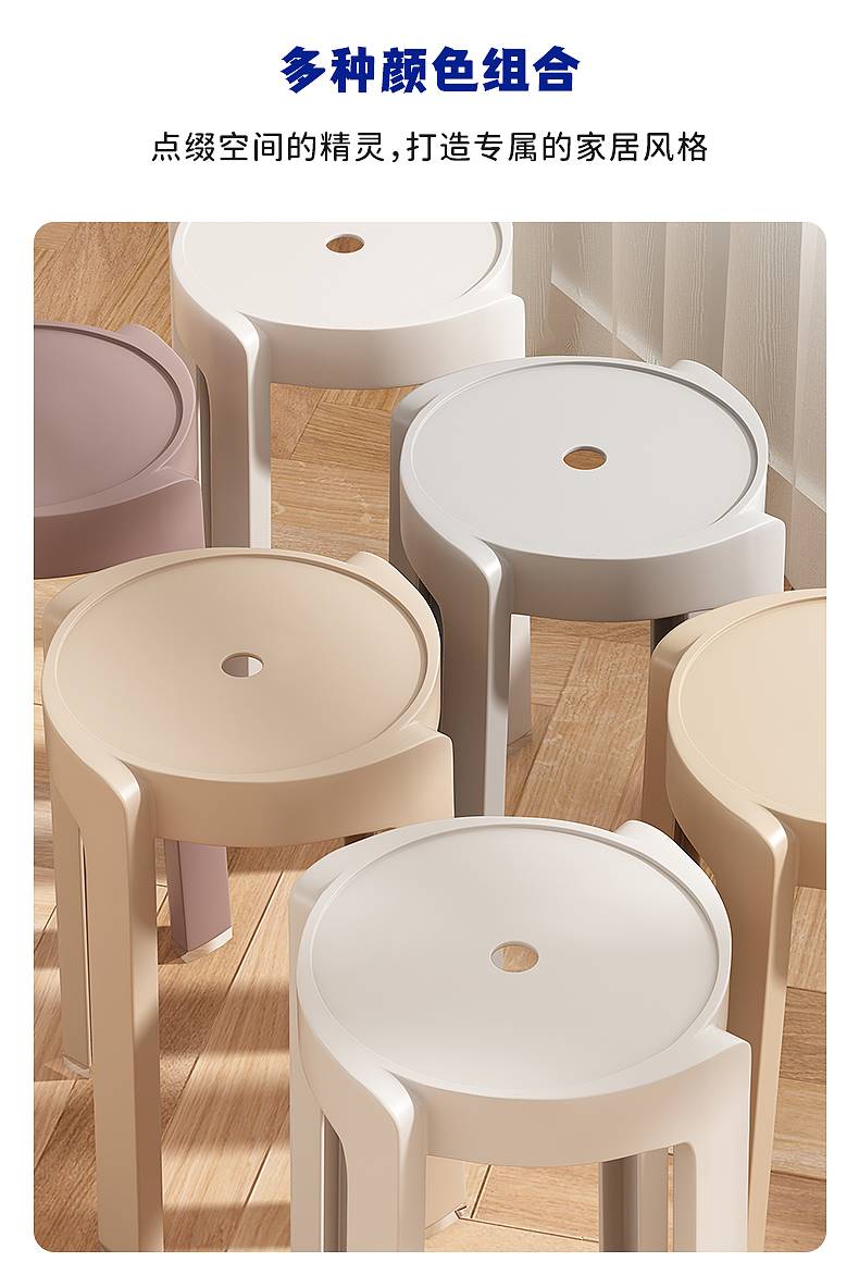 家用凳子加厚塑料可叠放摞叠餐桌板凳风车凳高圆凳胶凳子简约椅子