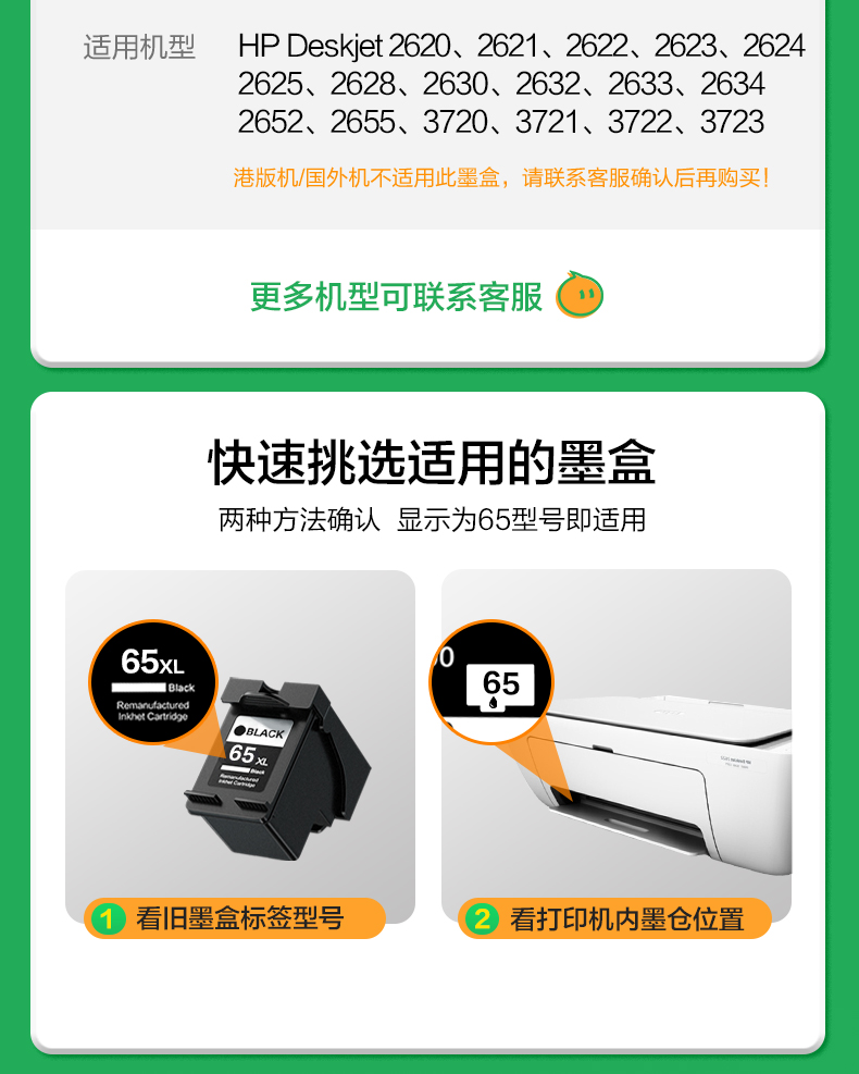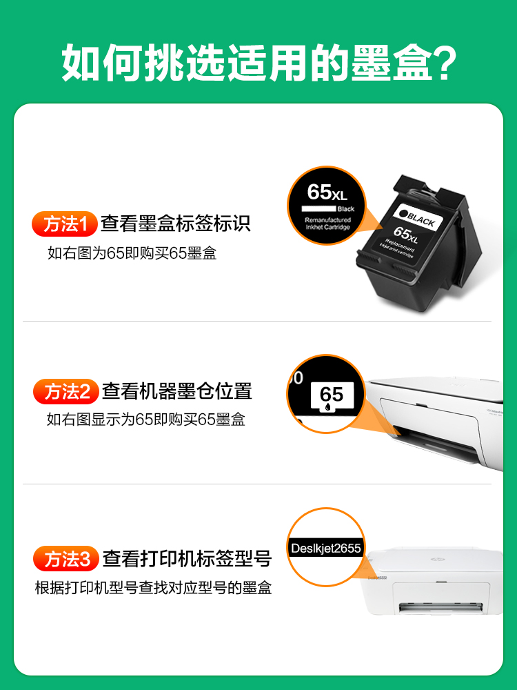 适用惠普HP65XL墨盒HP2655 2652 2620 2623黑彩色5020 5055打印机3720 3721 2640 3700 3752 3755新版Deskjet