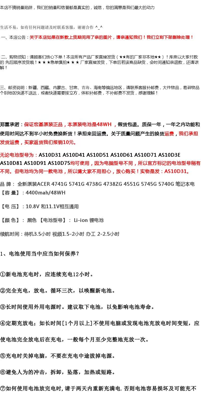 全新原装ACER宏基4741G 5741G 4738ZG 4253 5750G 4750笔记本电池