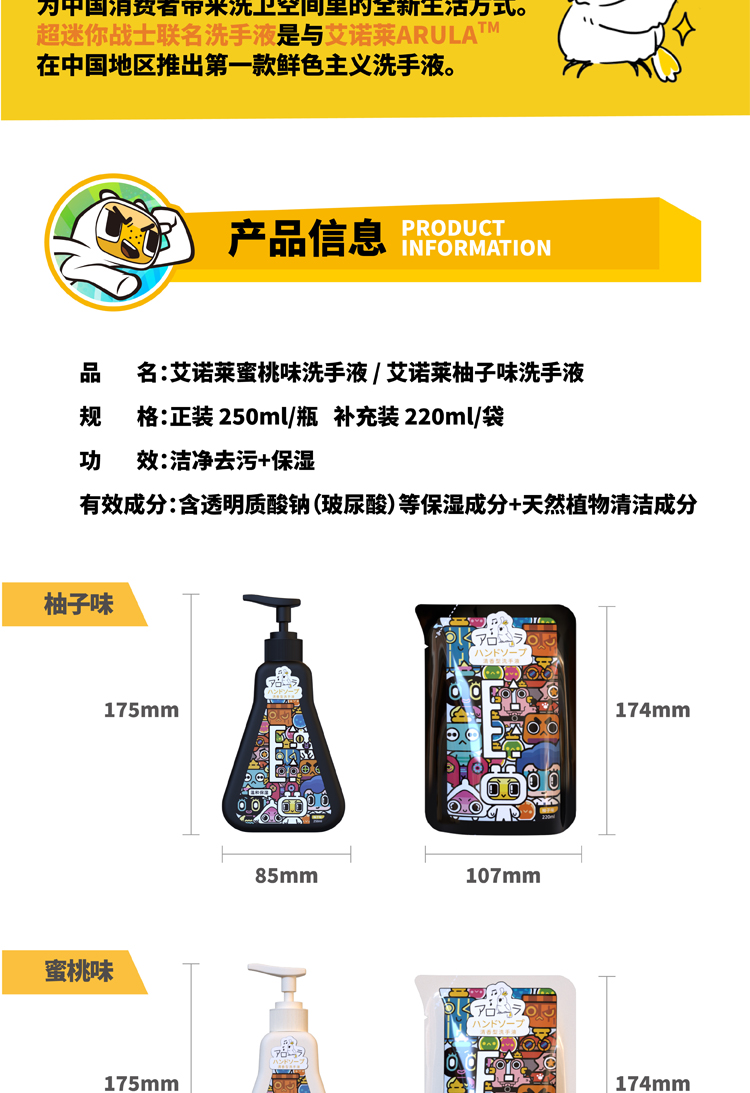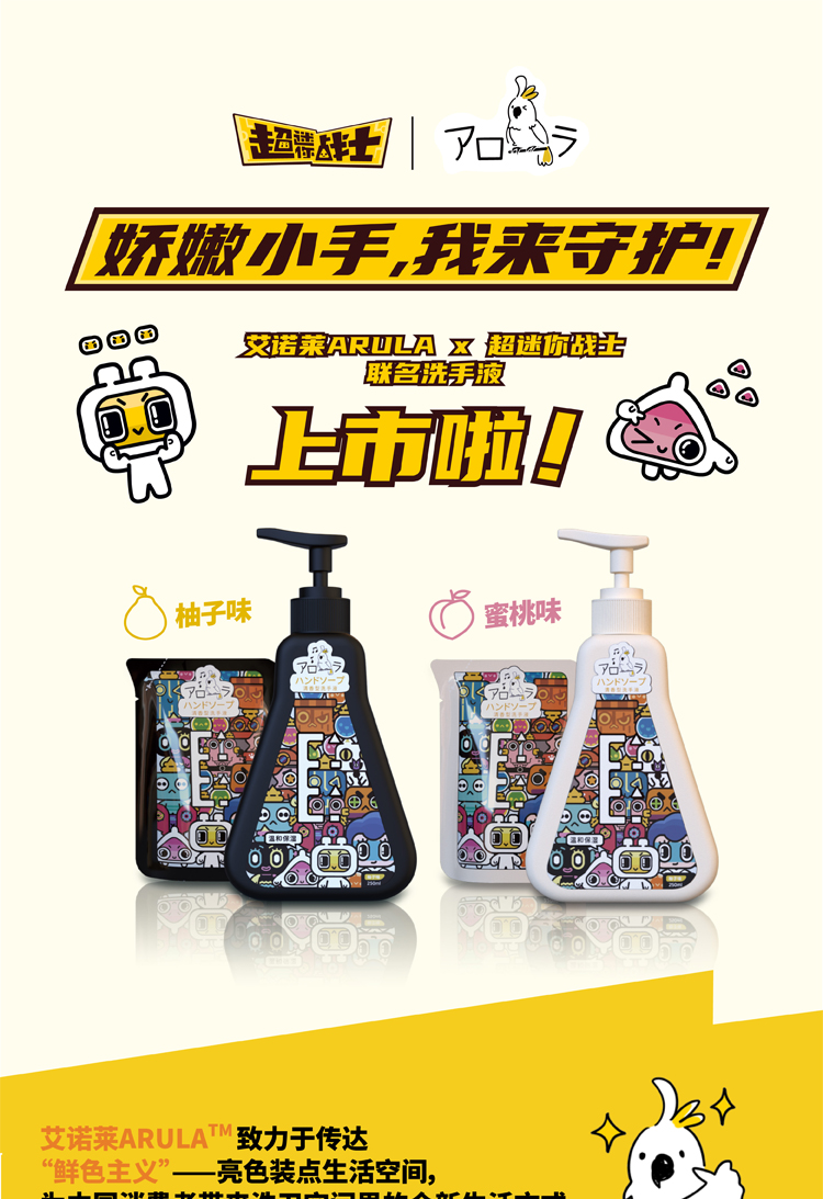 超迷你战士x艾诺莱arula联名抑菌洗手液250ml单瓶抵御干燥清香型