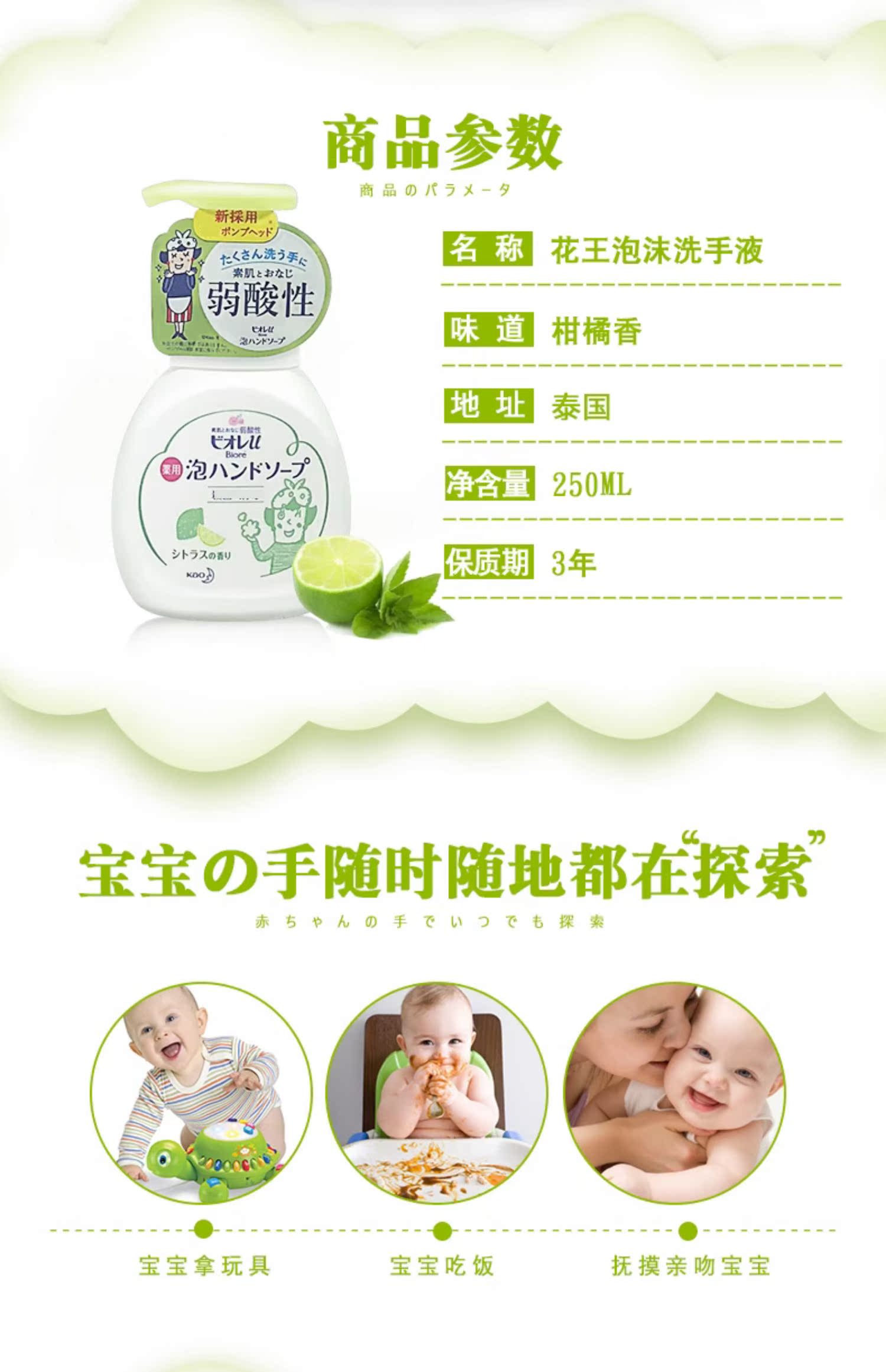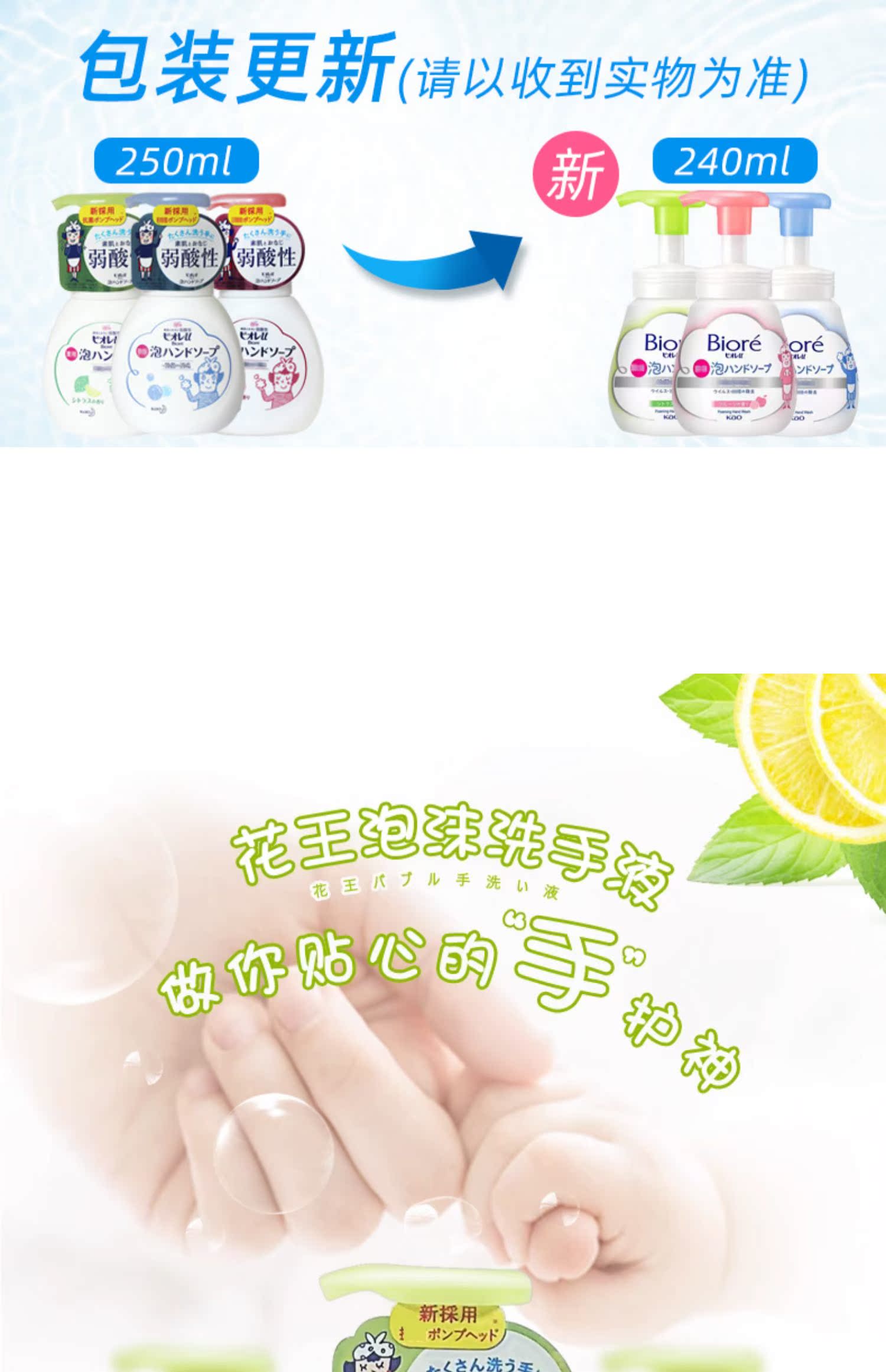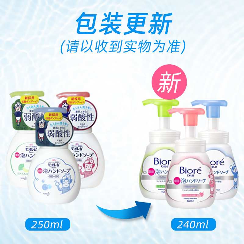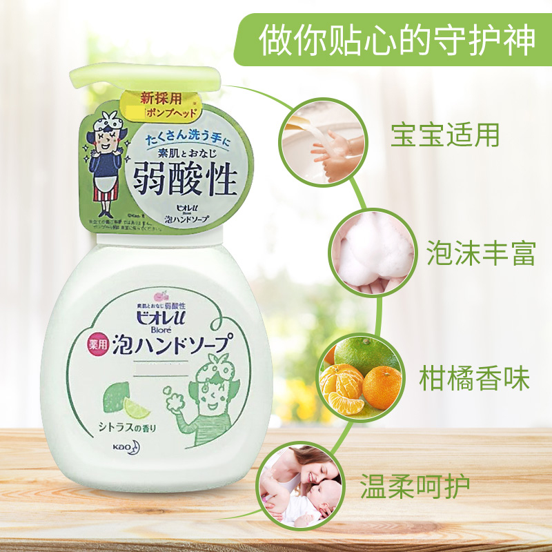 日本花王Biore泡沫洗手液宝宝成人全家可用 柑橘型240ml原装进口