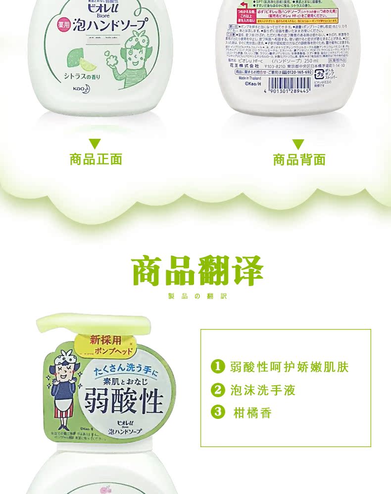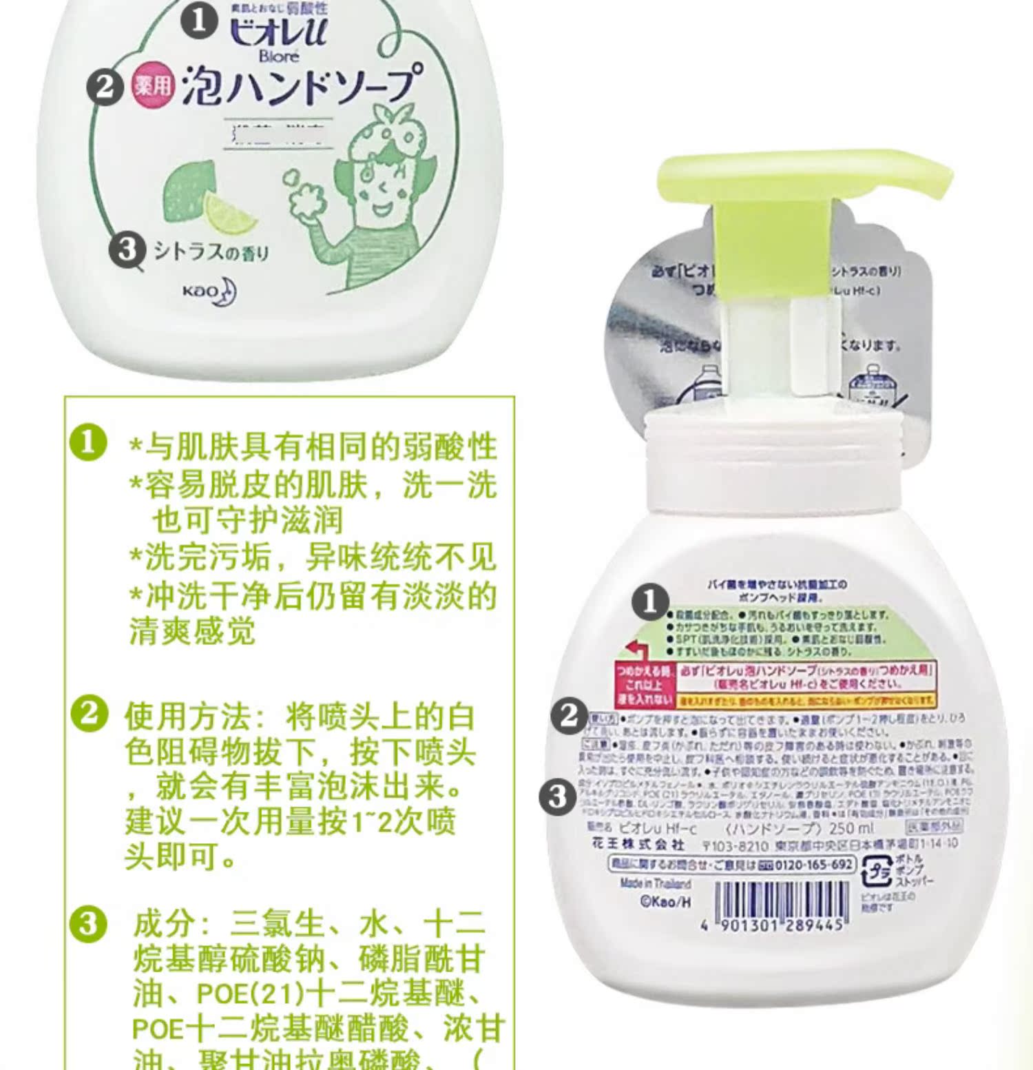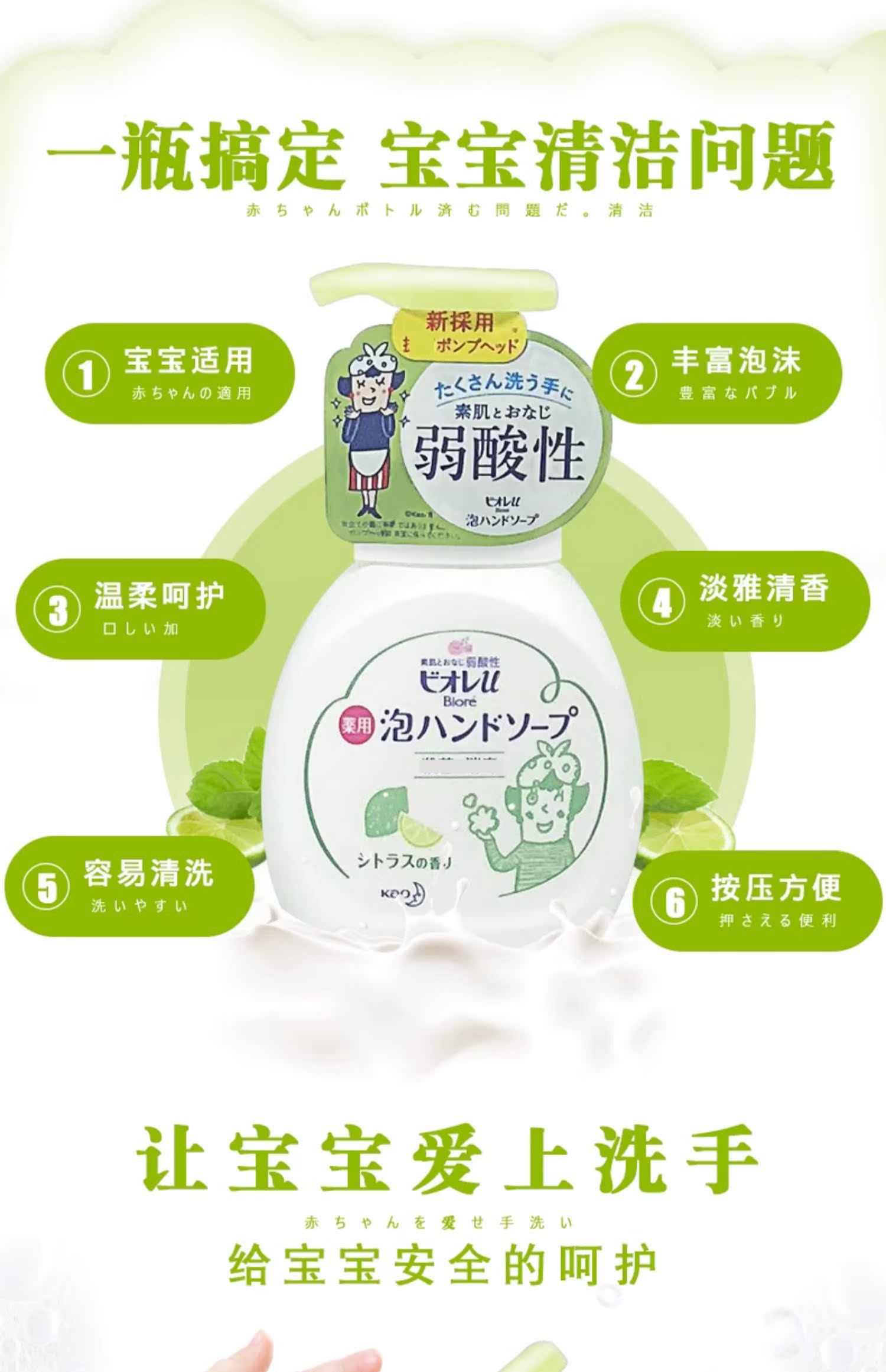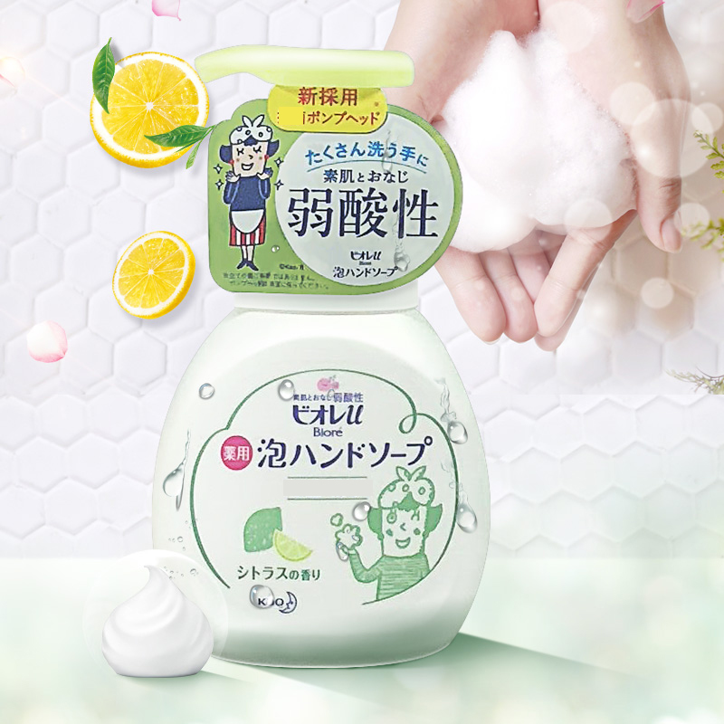 日本花王Biore泡沫洗手液宝宝成人全家可用 柑橘型240ml原装进口