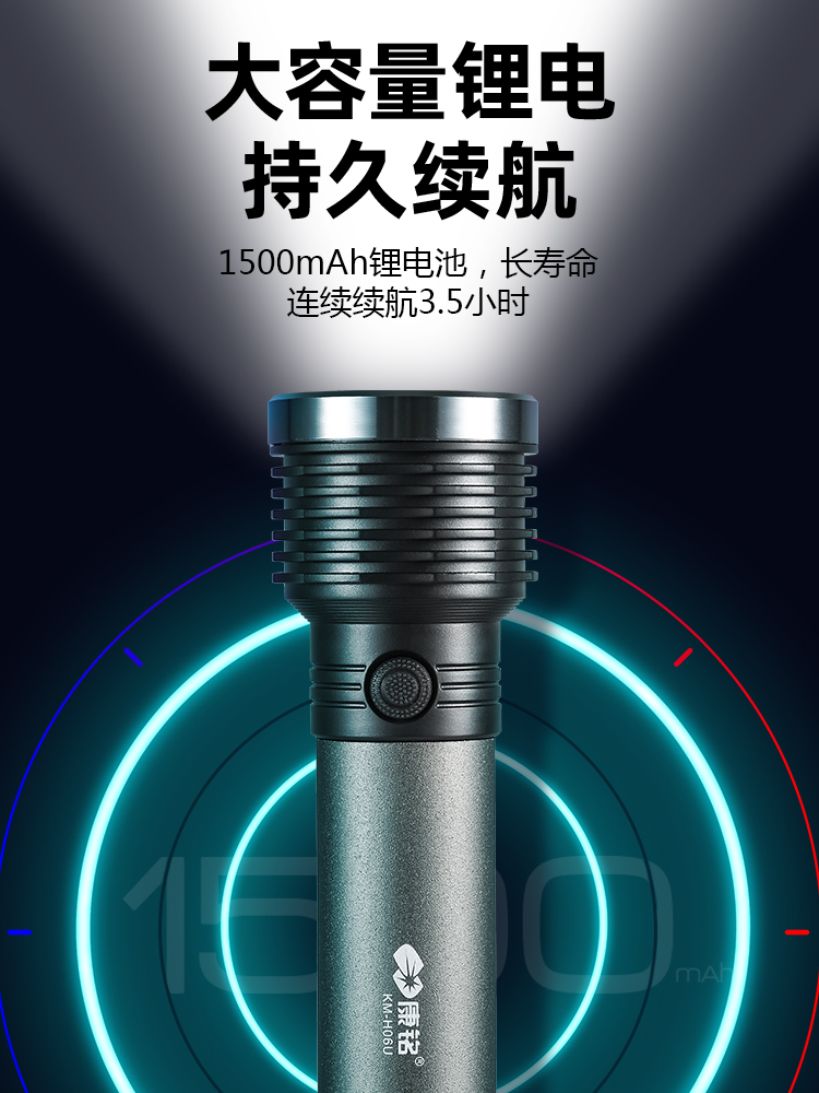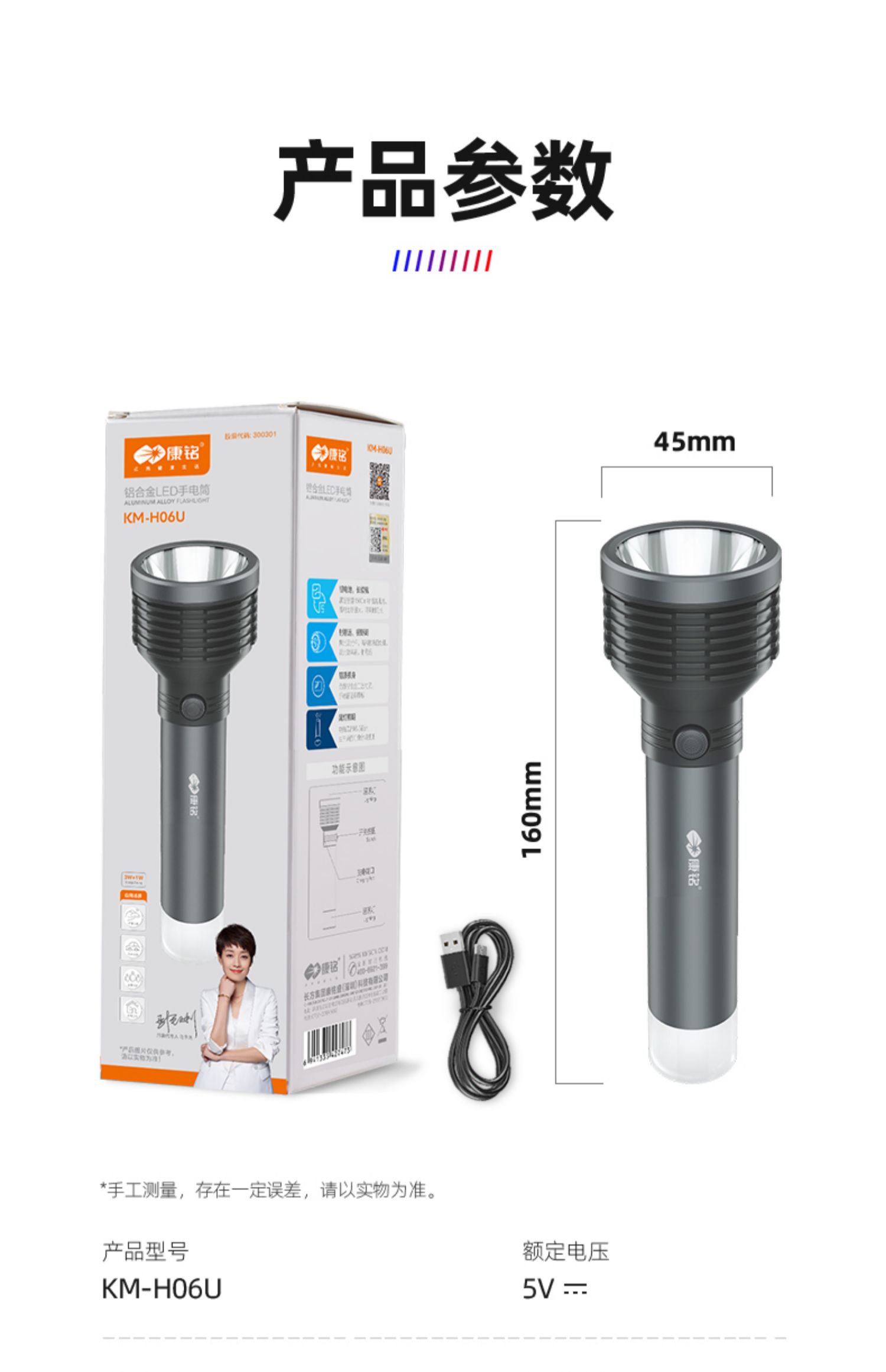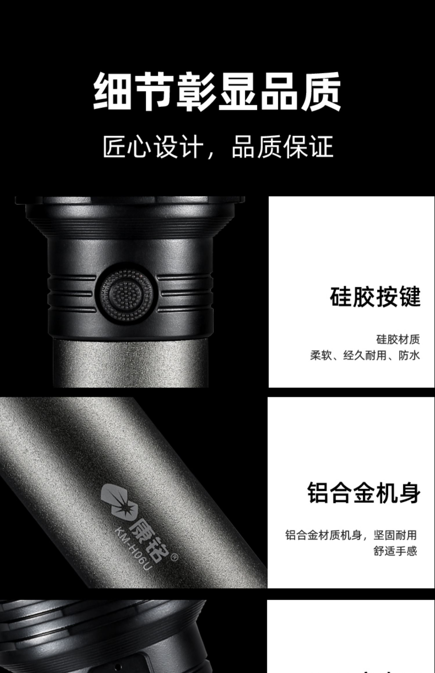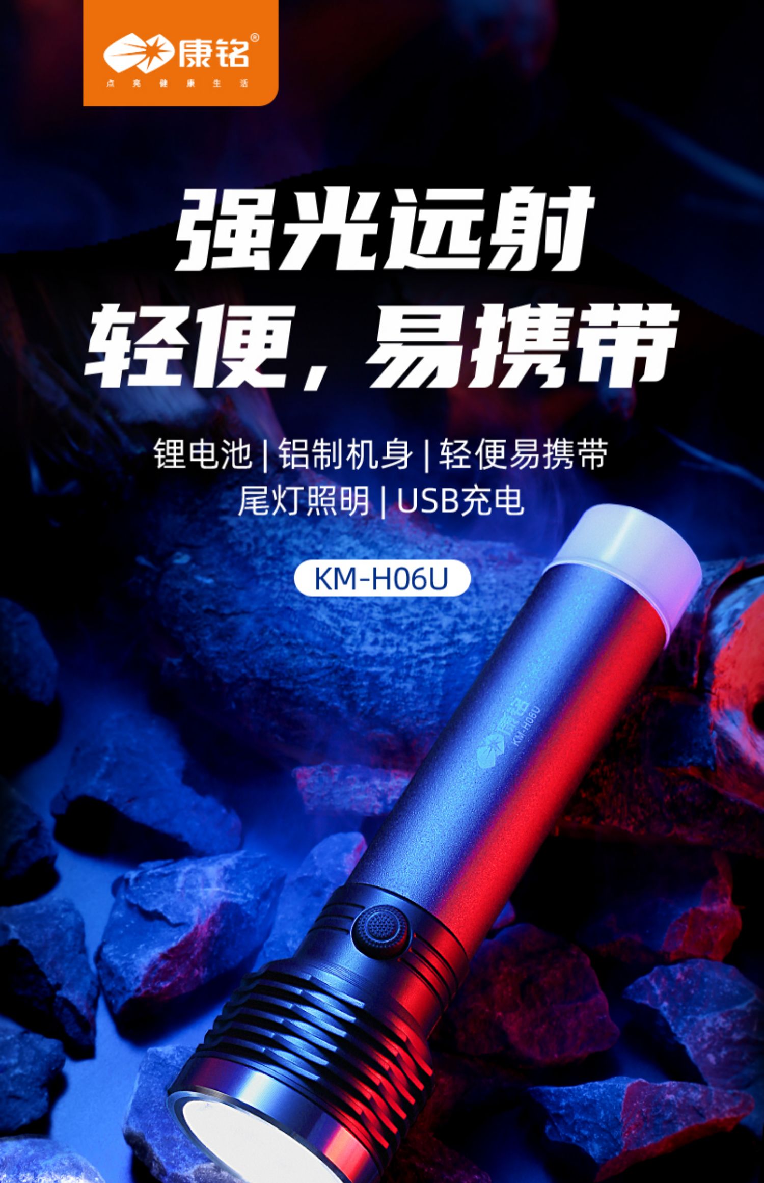 康铭手电筒强光充电超亮家用户外远射小型便携耐用led灯超长续航