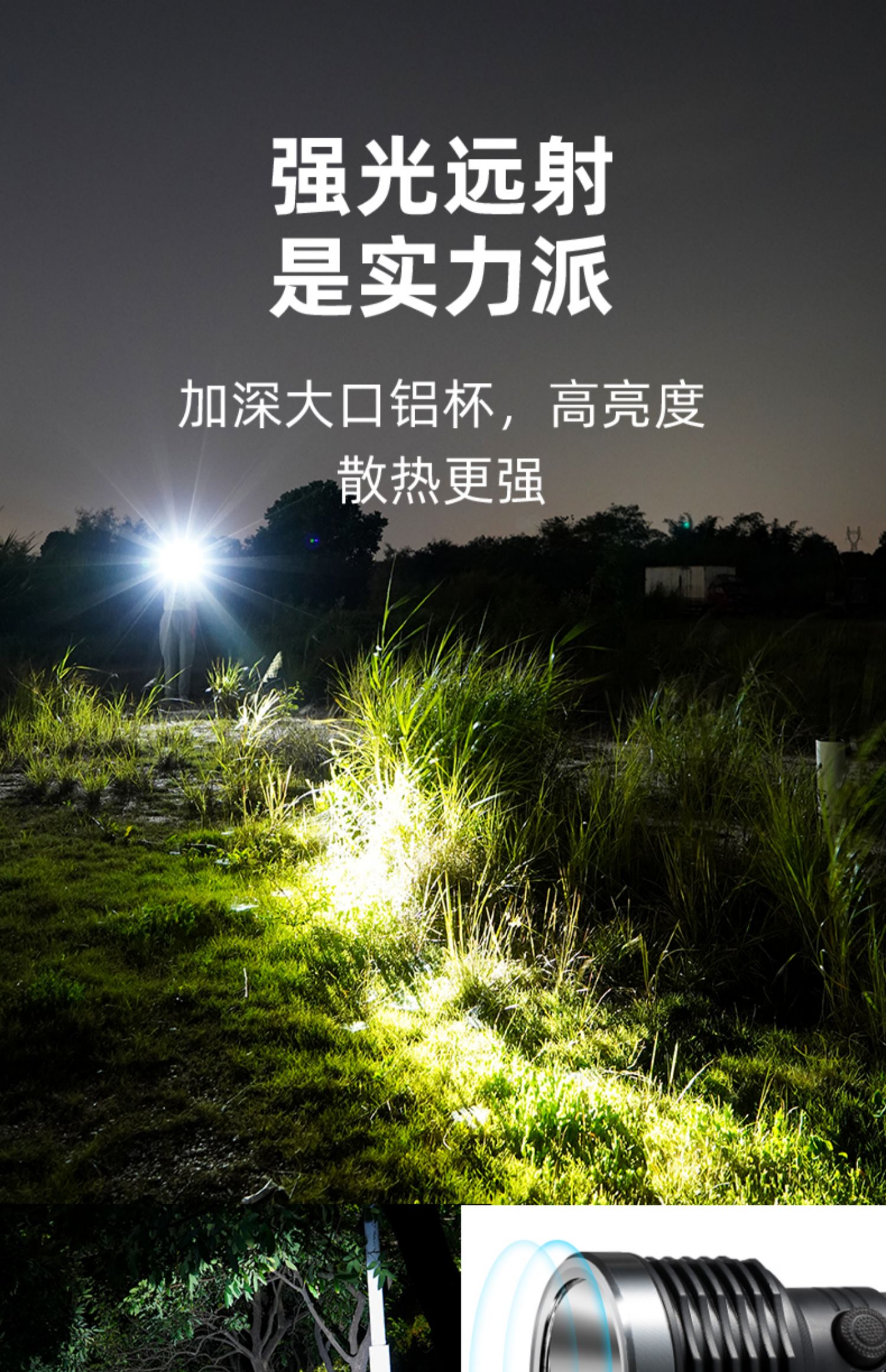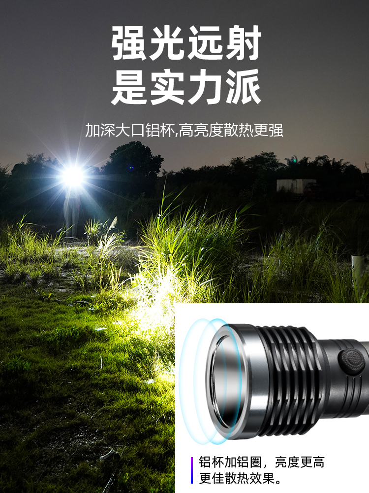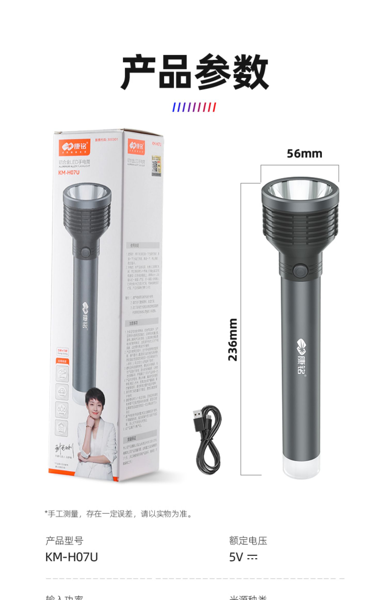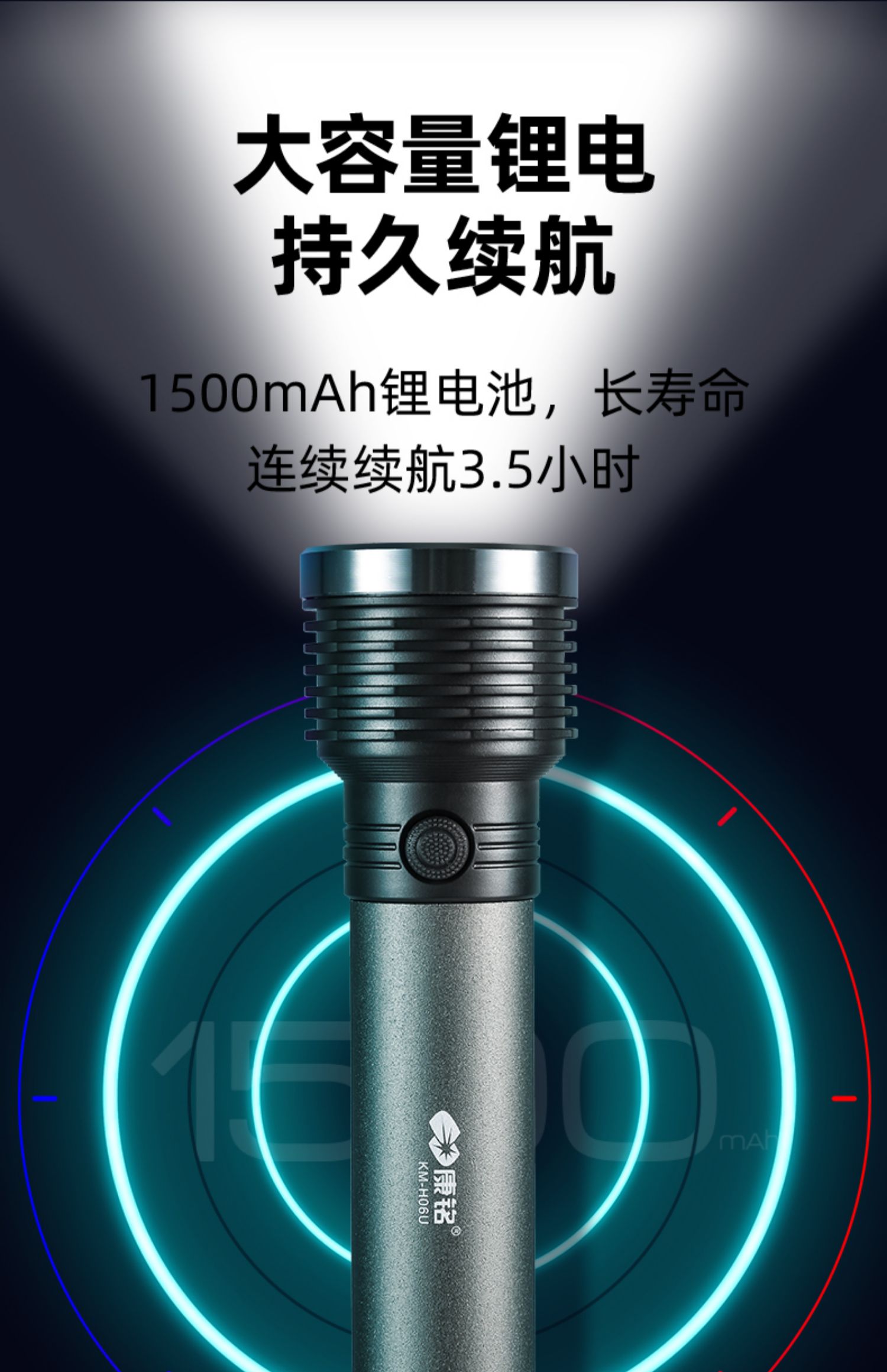 康铭手电筒强光充电超亮家用户外远射小型便携耐用led灯超长续航