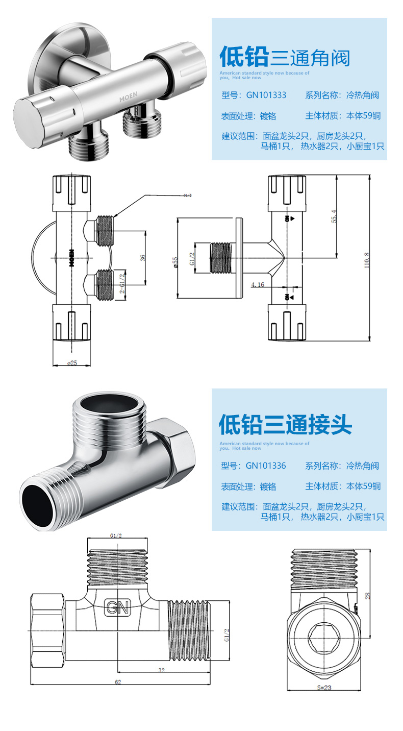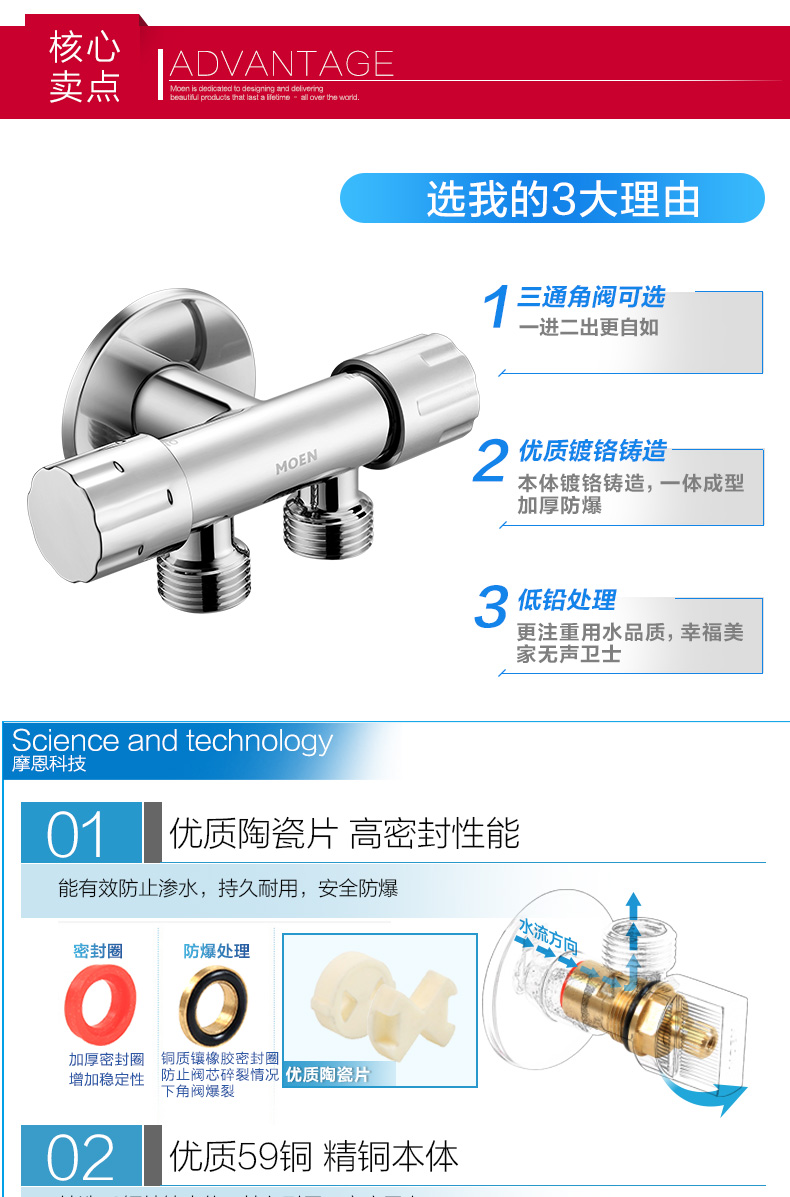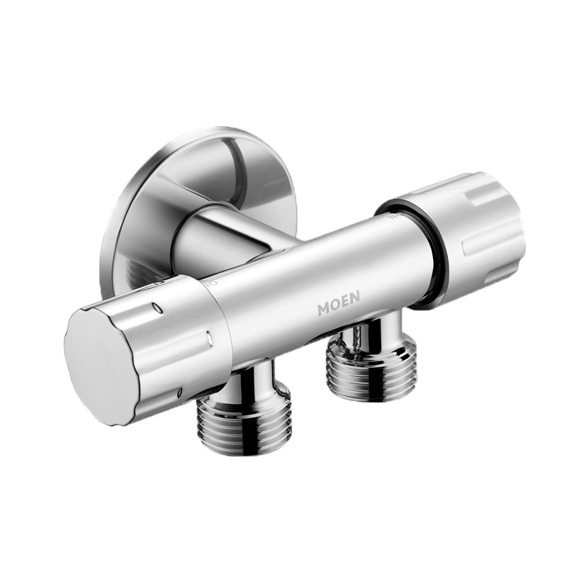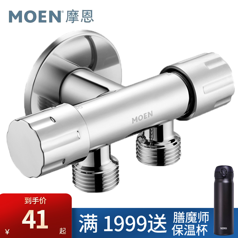 摩恩马桶三通角阀 一进二出全铜阀门带双开关双出水分水器101333