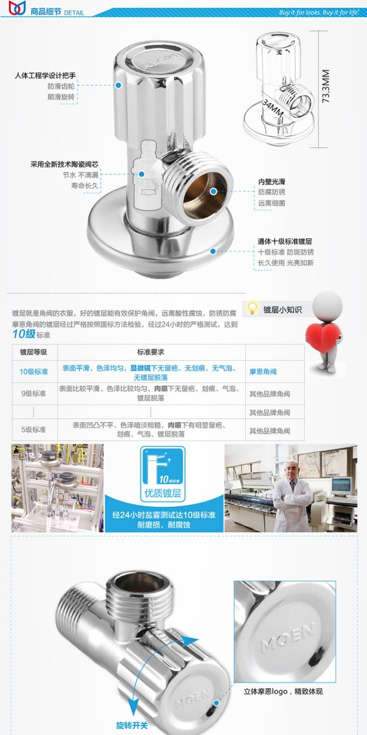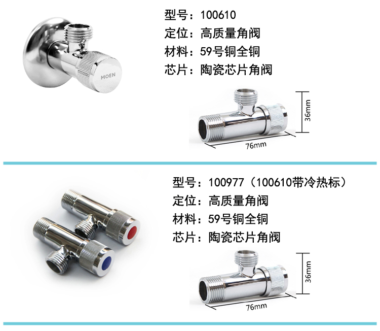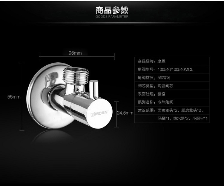 摩恩 100611铜体陶瓷阀芯快开角阀 慢开铜芯阀门冷热水角阀2504