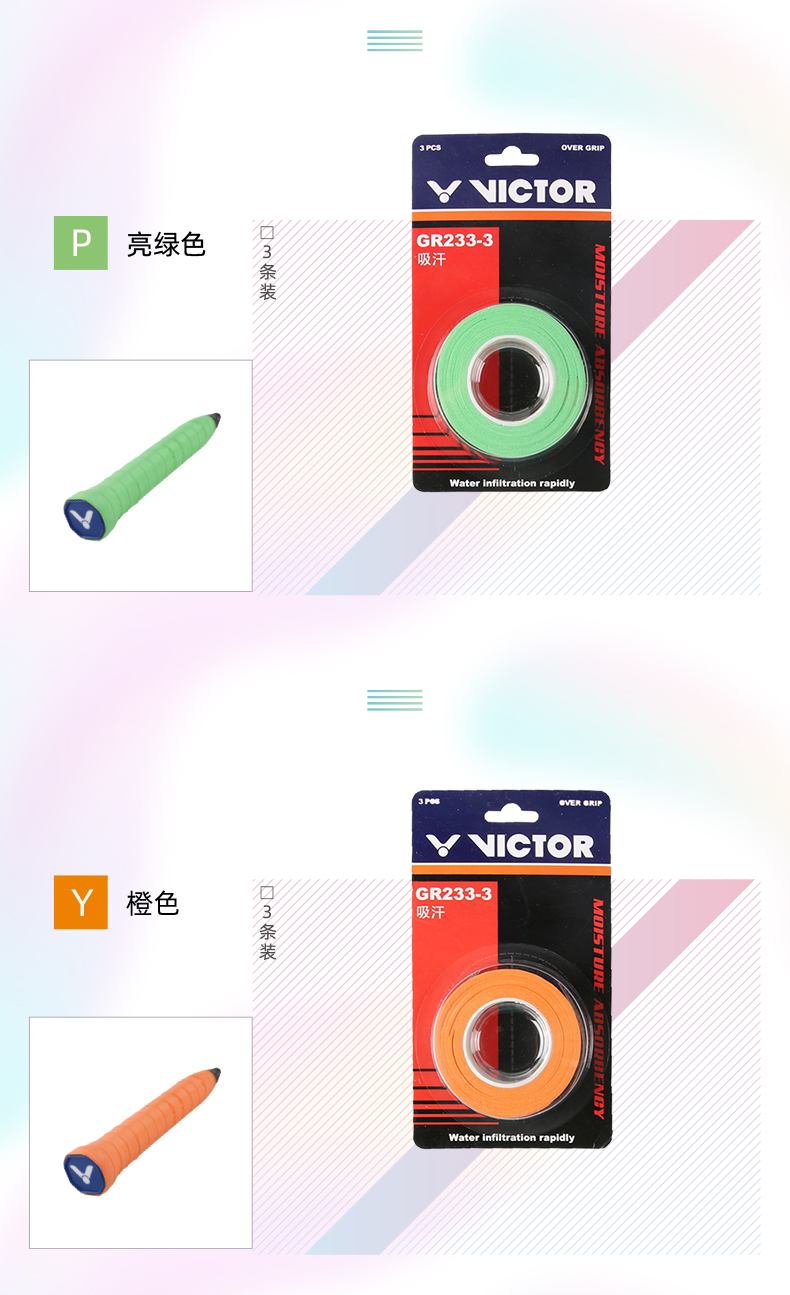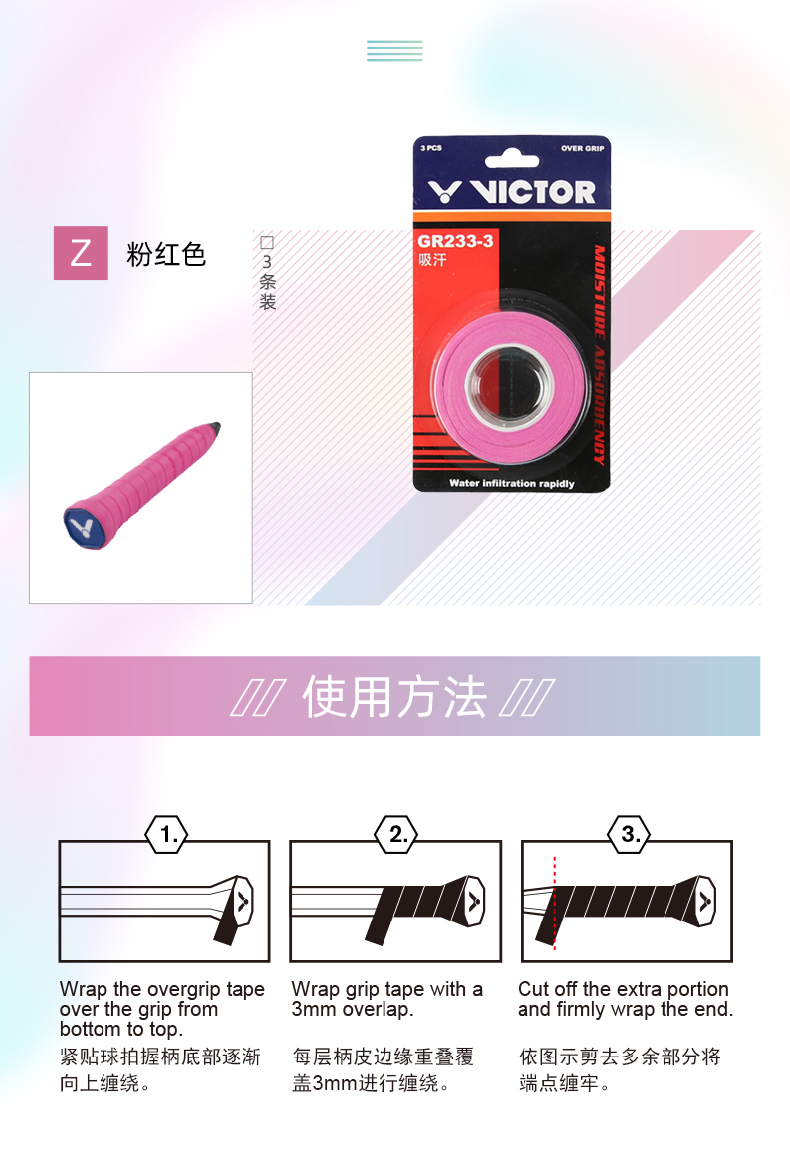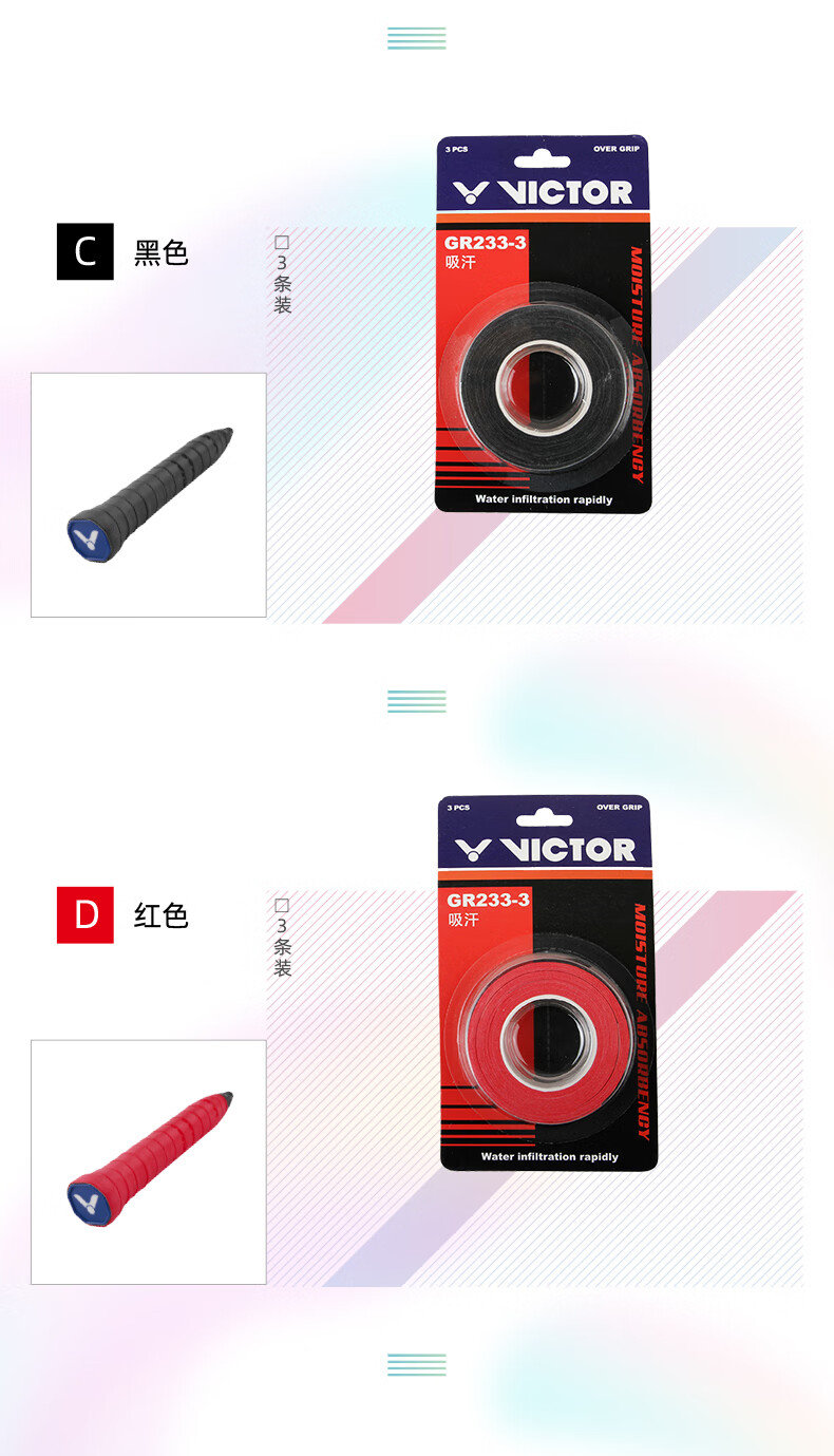 VICTOR威克多 羽毛球拍手胶 吸汗防滑羽毛球拍外握把胶3条装 GR233-3 外握把胶GR233-3/D