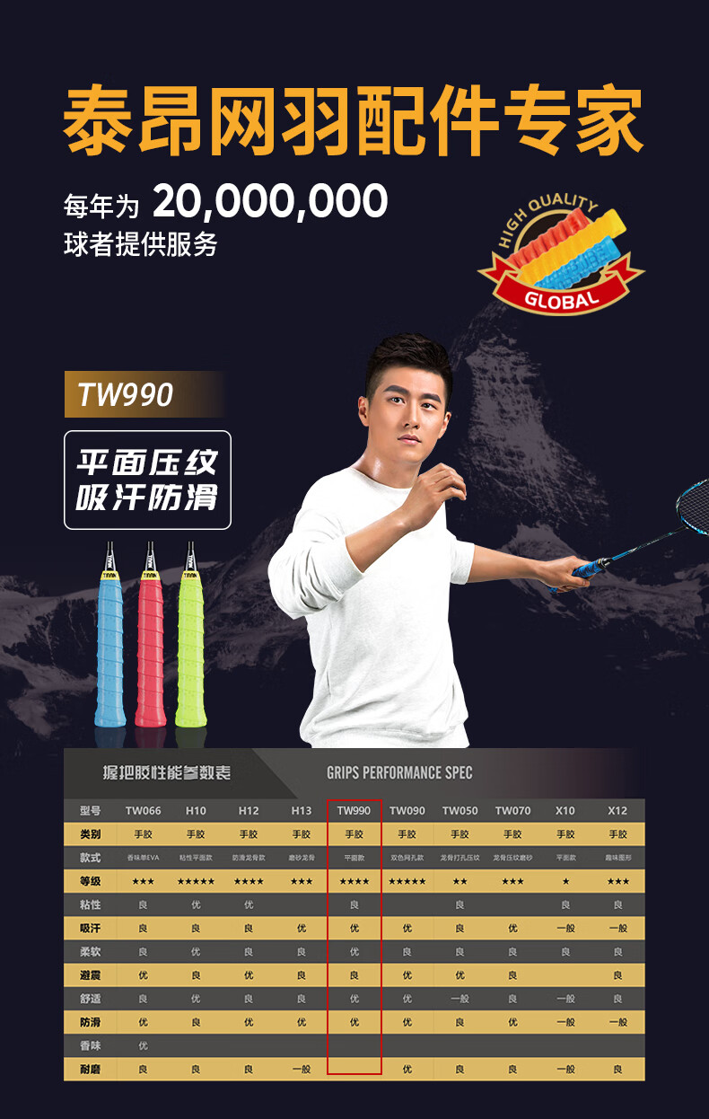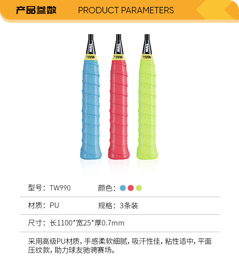TAAN泰昂手胶羽毛球手胶粘性压纹PU握把胶TW990(三条装)