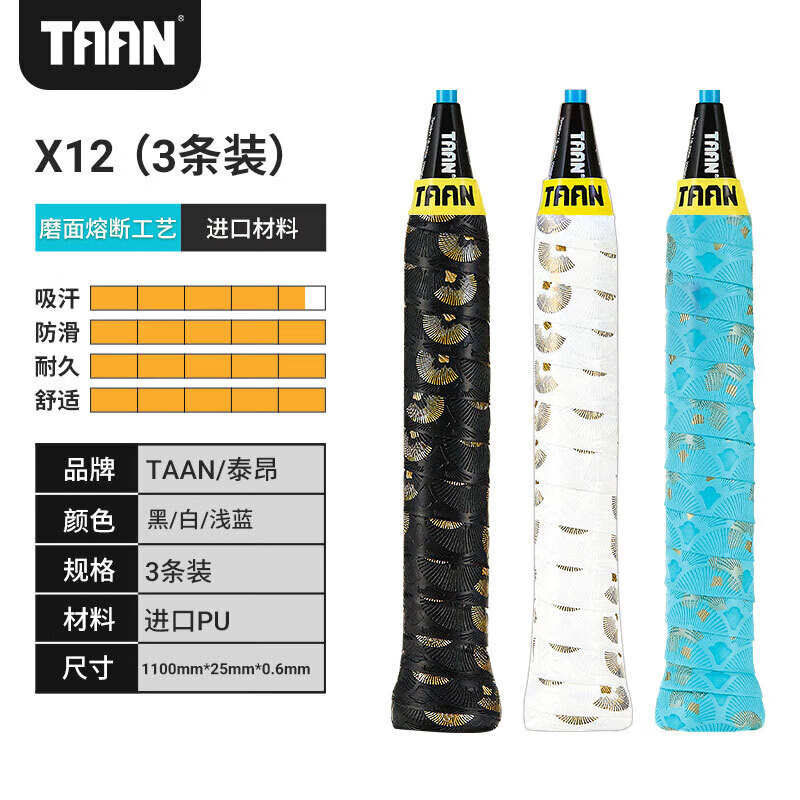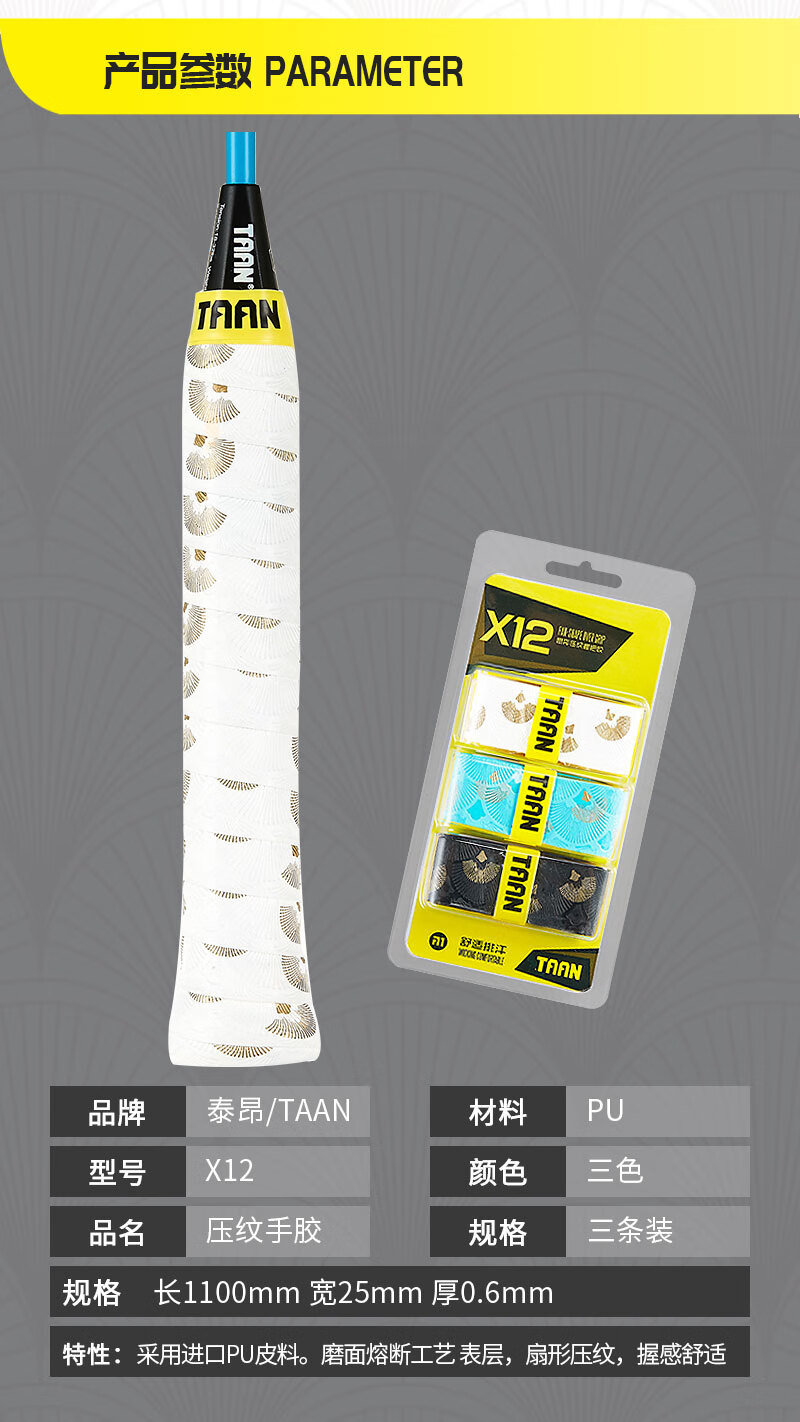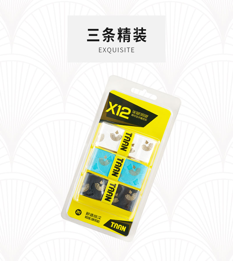 TAAN泰昂羽毛球拍手胶中国风印花防滑吸汗带耐磨握把胶X12三卡装