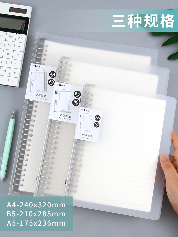 晨光活页本可拆卸送分隔替芯本子方网格笔记本子横线记录本A4软壳考研A5大学生加厚线圈本外壳夹简约B5不硌手