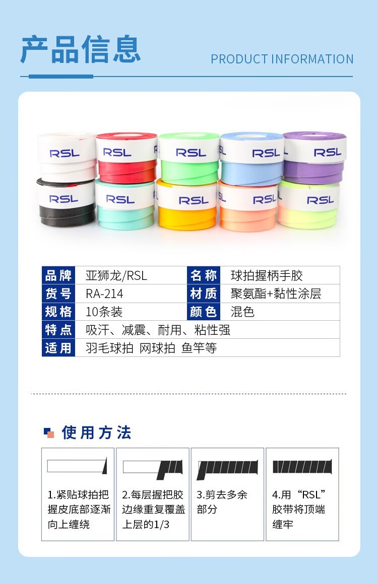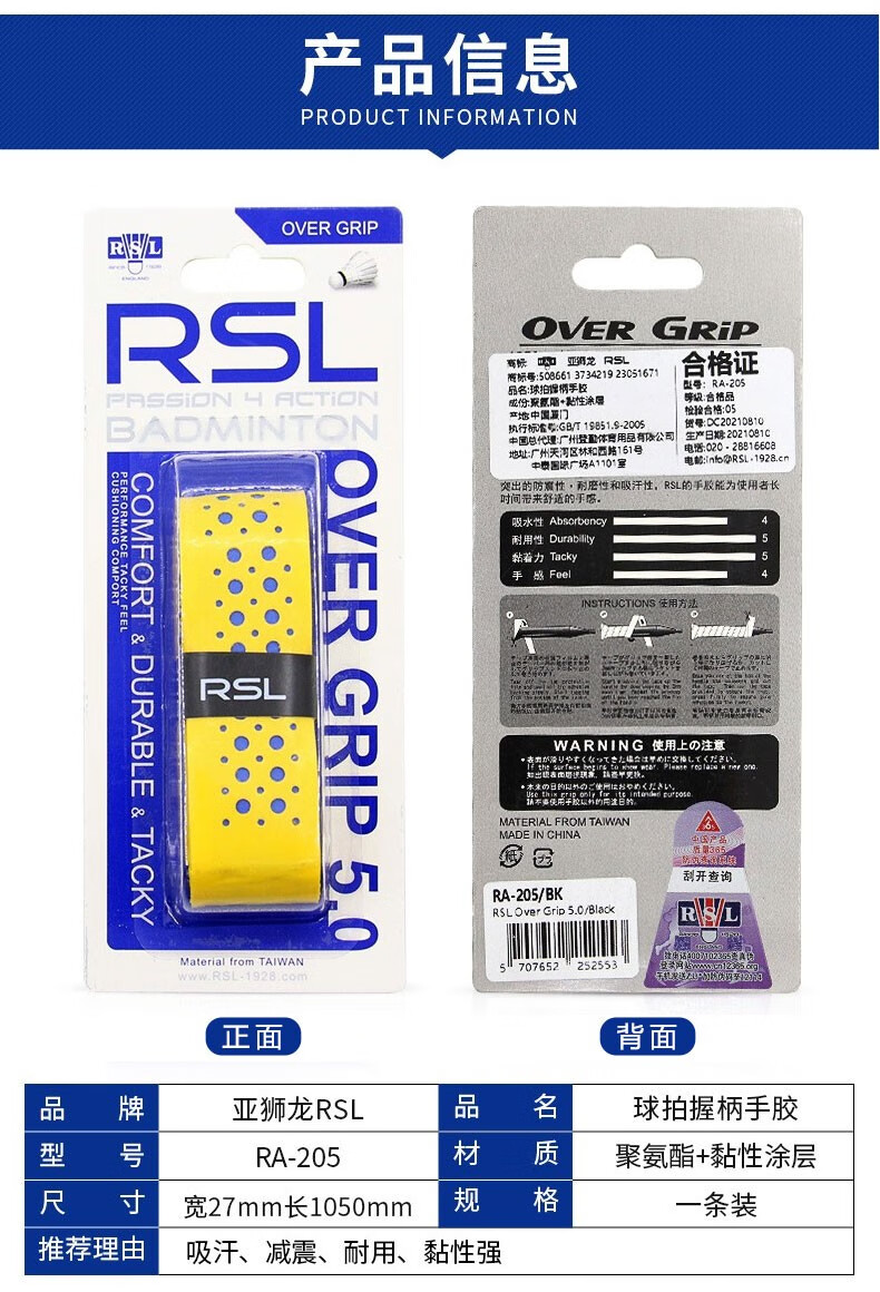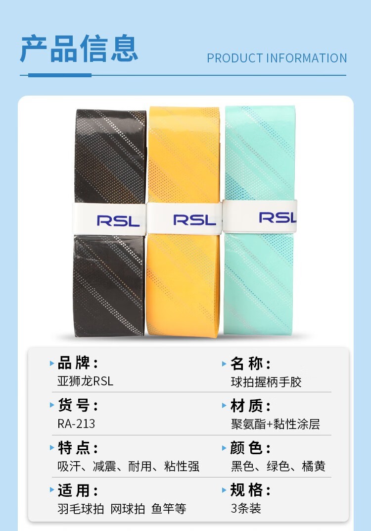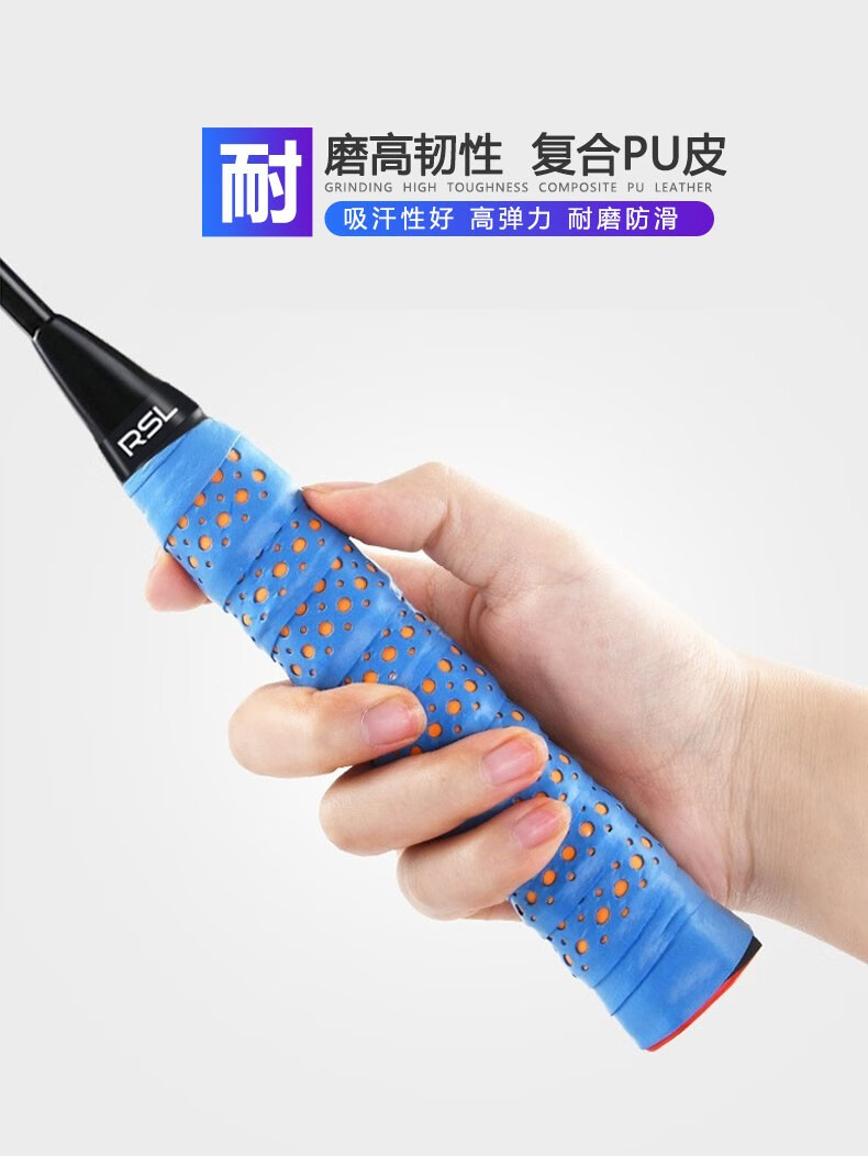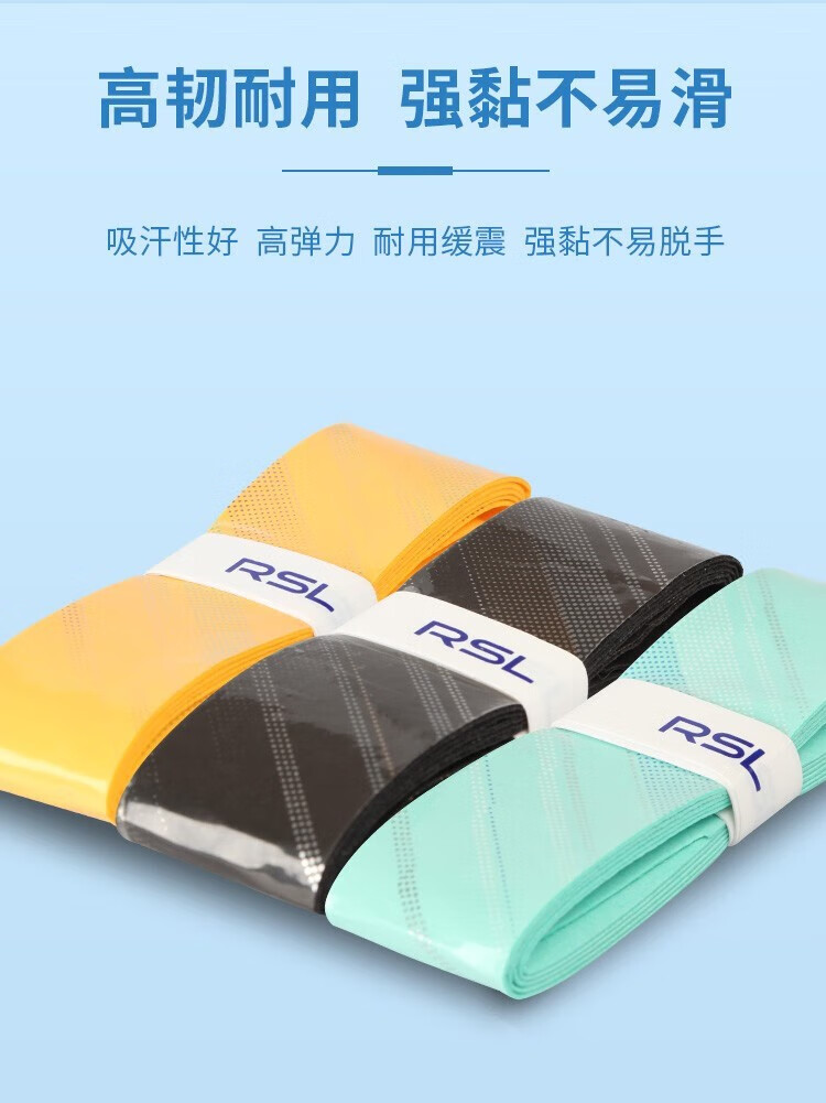 亚狮龙RSL羽毛球拍平面龙骨手胶吸汗带透气舒适吸汗减震龙骨绑带打孔握把胶手柄缠绕带 平面手胶三条装