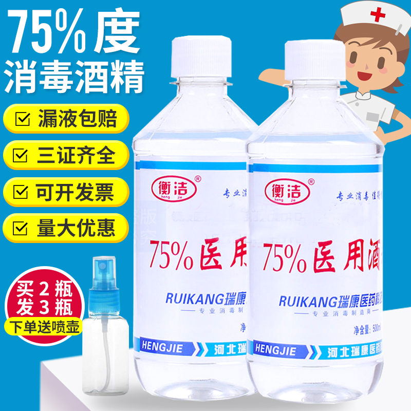 现货75医 用酒精75%乙醇消毒液500ml 皮肤伤口表面消毒除菌 包邮