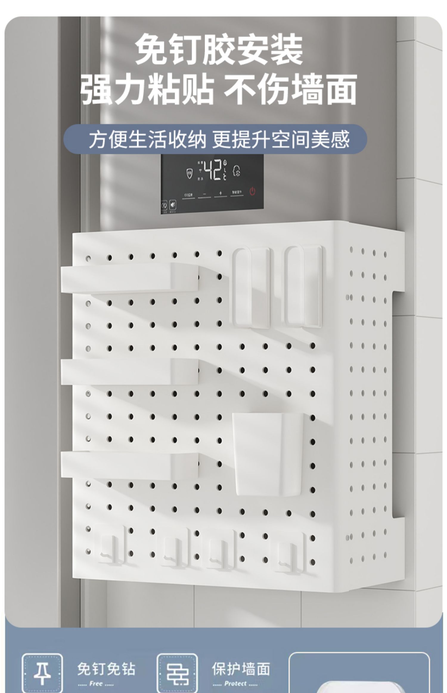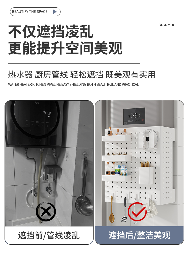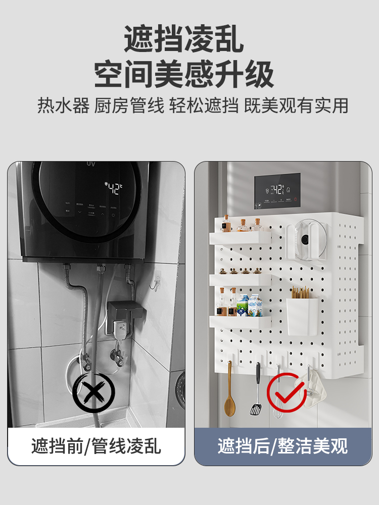 燃气热水器管道遮挡罩装饰洞洞板厨房壁挂下方遮丑锅炉灶置物架