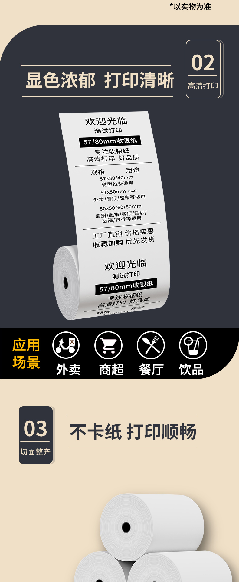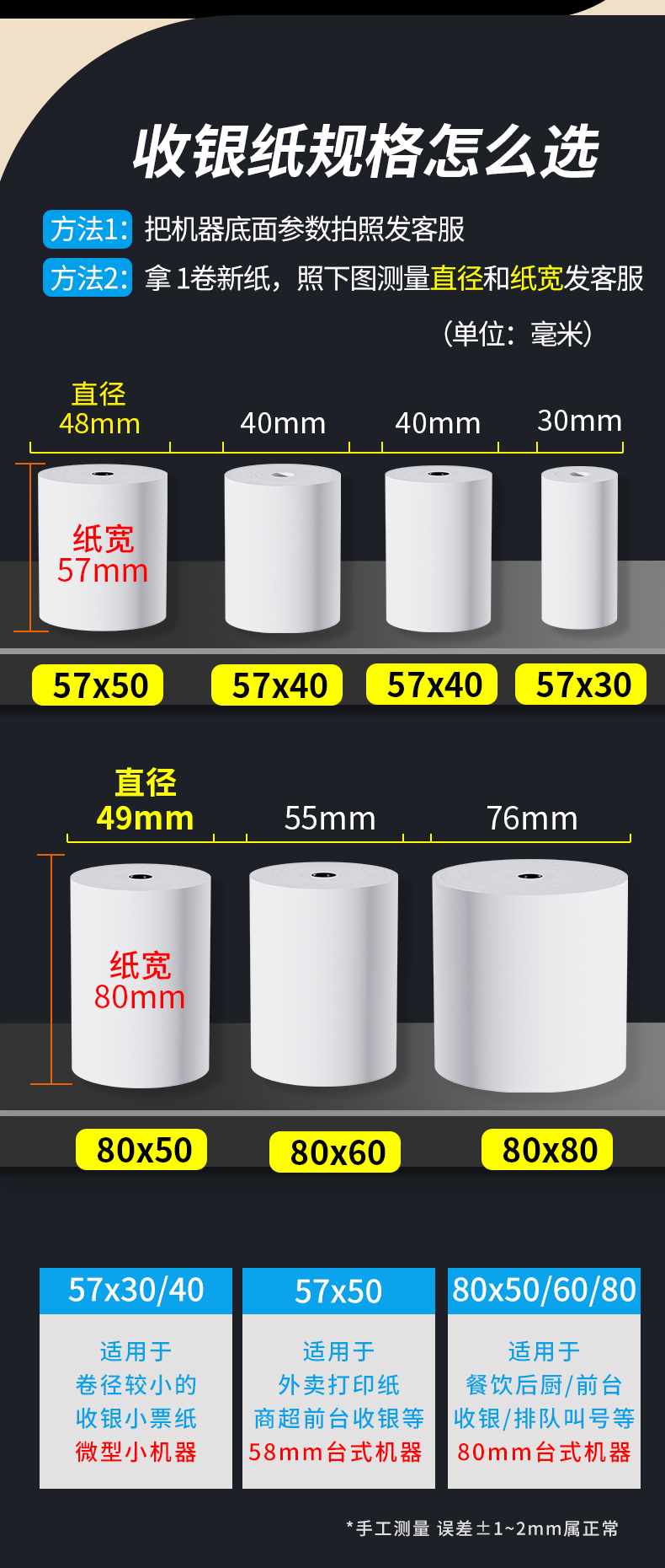打印纸热敏57×50收银打印纸通用喵喵机80x80热敏纸收银纸美团飞鹅外卖打印纸收银打印机纸小卷点菜打印卷纸