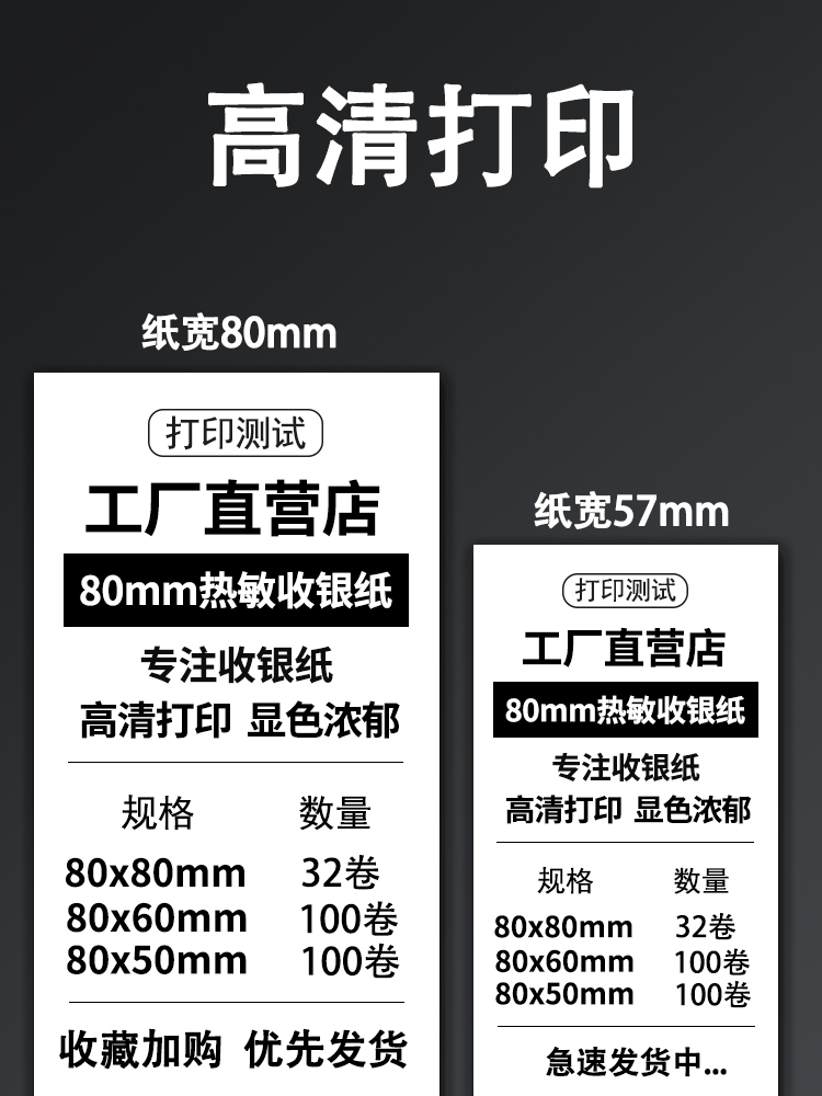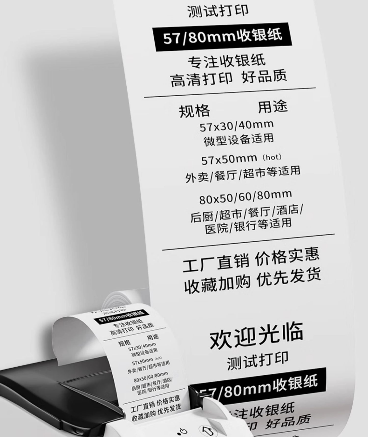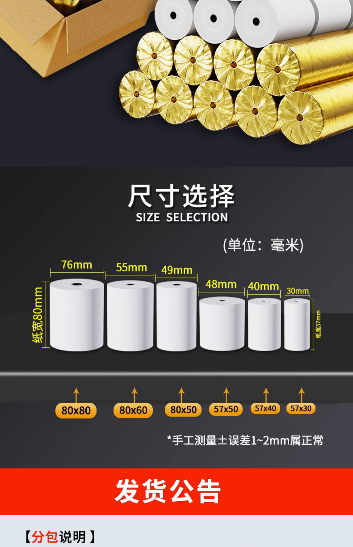 57x50小管芯热敏收银纸57x30无管芯打印纸58mm美团外卖热敏纸80x60打印小票纸餐厅后厨80x80mm收款机卷纸整箱