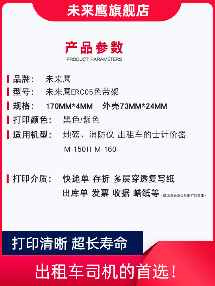 5支装-未来鹰ERC05出租车色带地磅色带计价器色带的士打票机色带上海耀华XK3190-A9+P仪表电子秤ERC05色带架