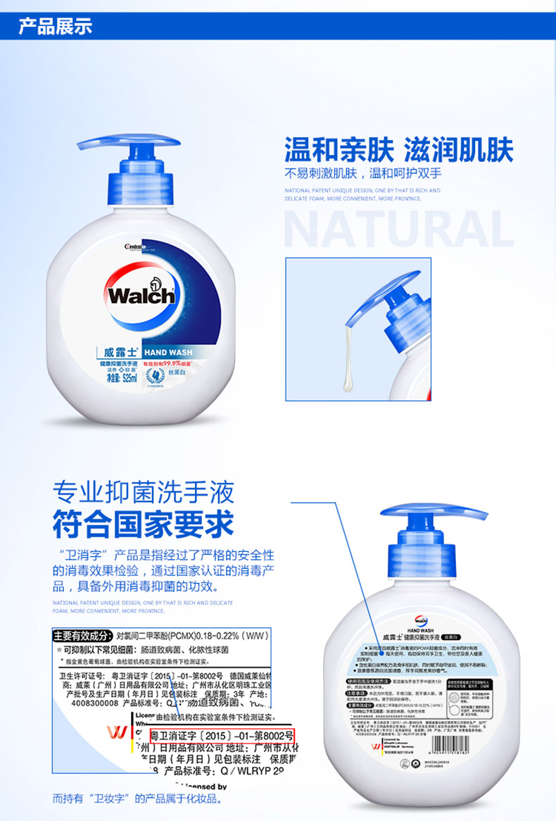 威露士洗手液525ml抑菌2瓶家用消毒补充装儿童包邮家庭装正品