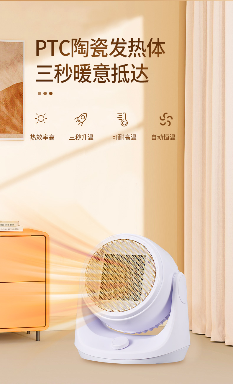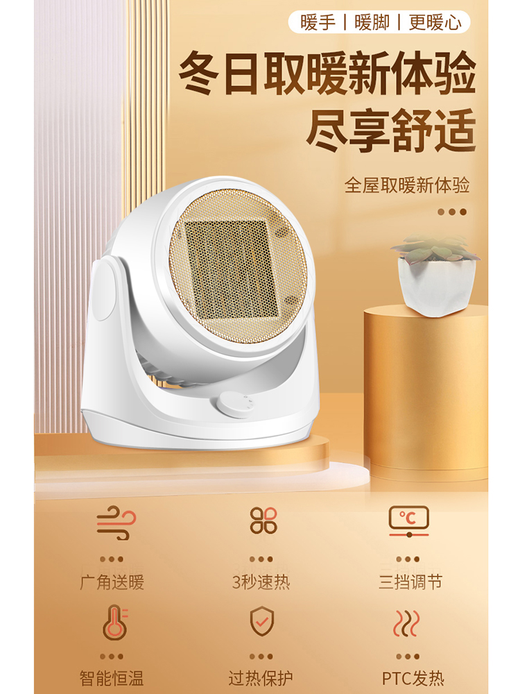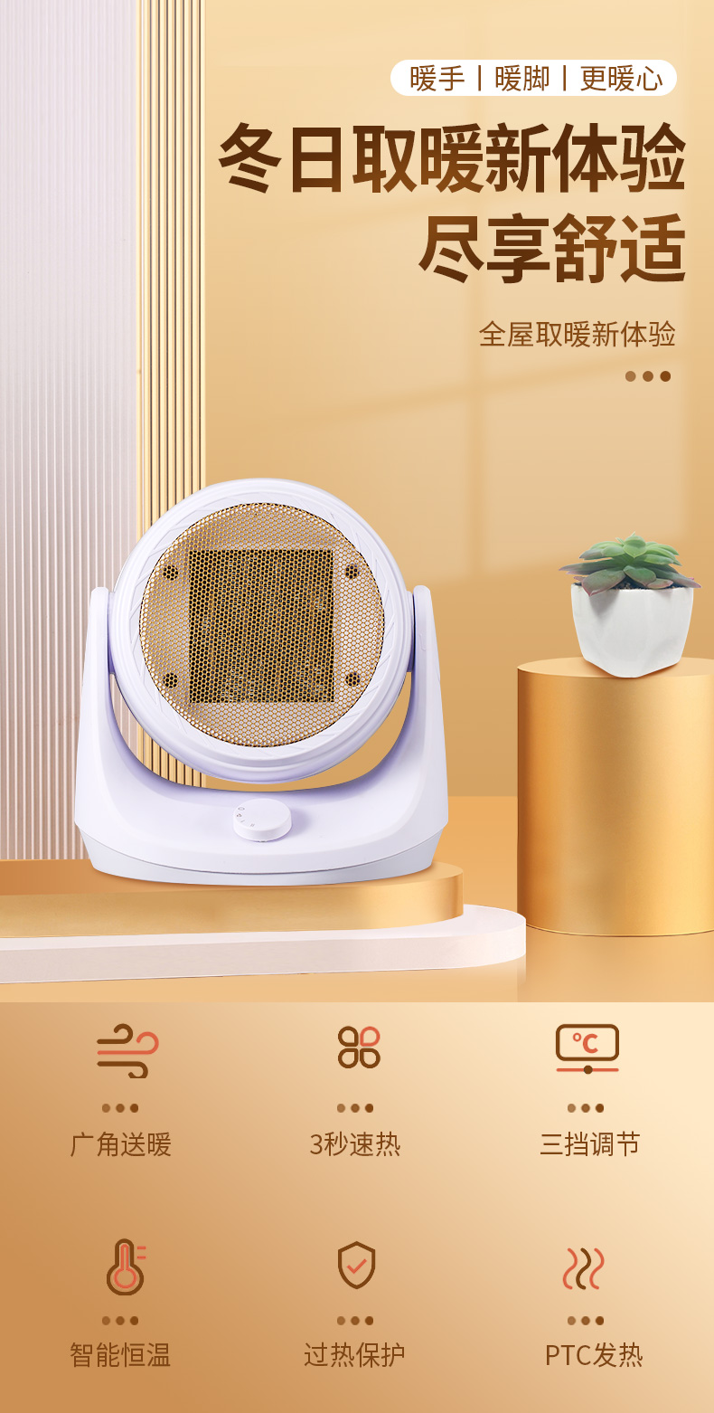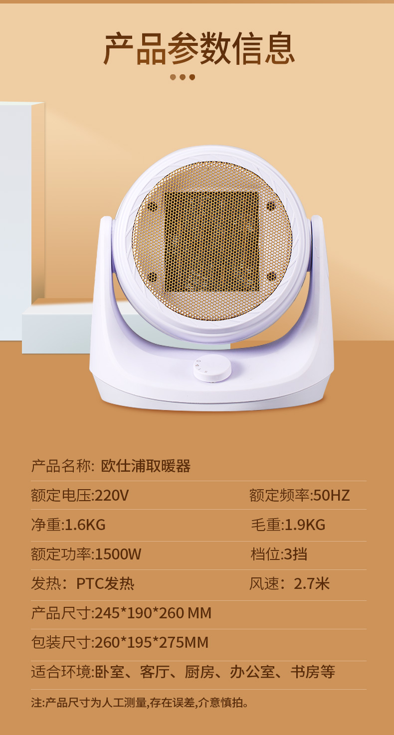 欧仕浦暖风机家用PTC款速热取暖器节能桌面电暖风冷暖两用小空调
