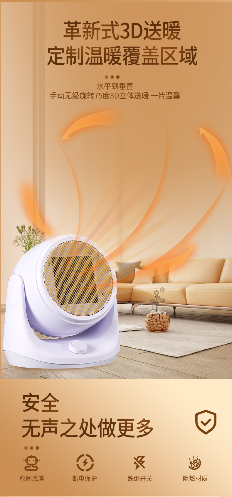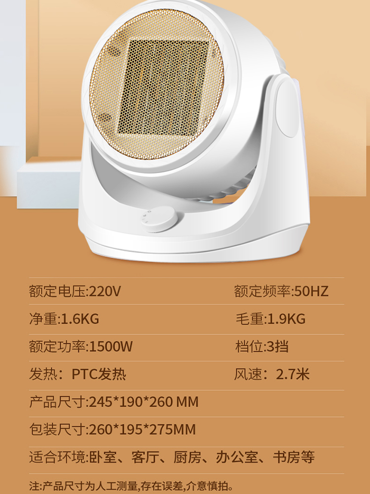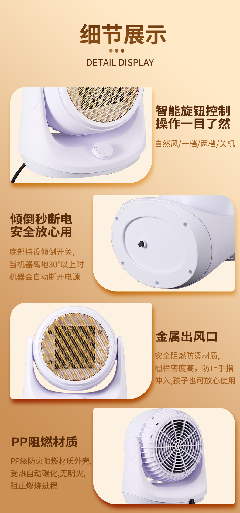 欧仕浦暖风机家用PTC款速热取暖器节能桌面电暖风冷暖两用小空调