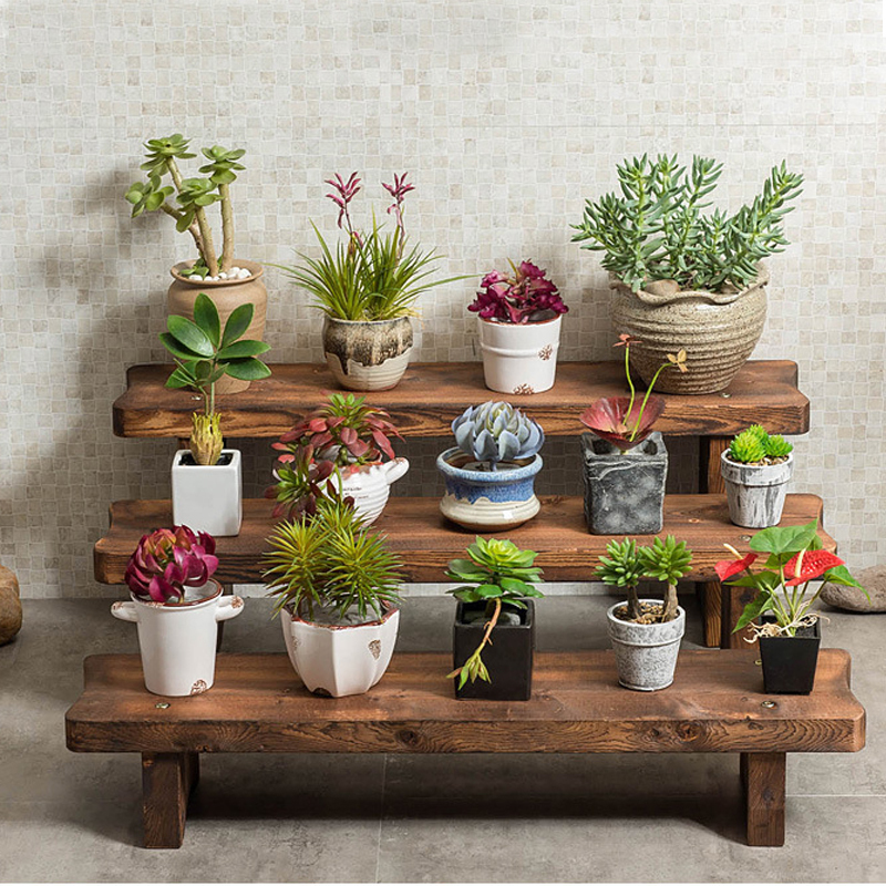 实木鲜花店花架鲜花展示架多肉转角花架阳台墙角架创意多层木马人