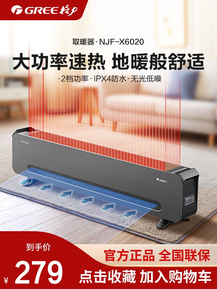 格力踢脚线取暖器家用节能暖风机大面积浴室电暖气智能恒温烤火器