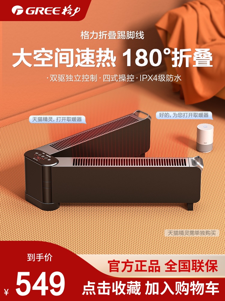 格力踢脚线取暖器家用地暖器折叠暖风供暖节能智能遥控速热电暖气