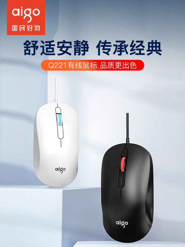 【官方正品】爱国者Q21有线鼠标轻音USB办公家用电竞游戏台式白色