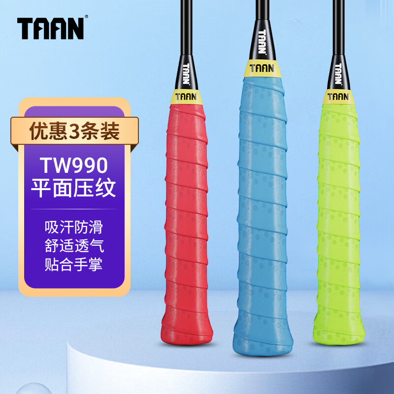 TAAN泰昂手胶羽毛球手胶粘性压纹PU握把胶TW990(三条装)