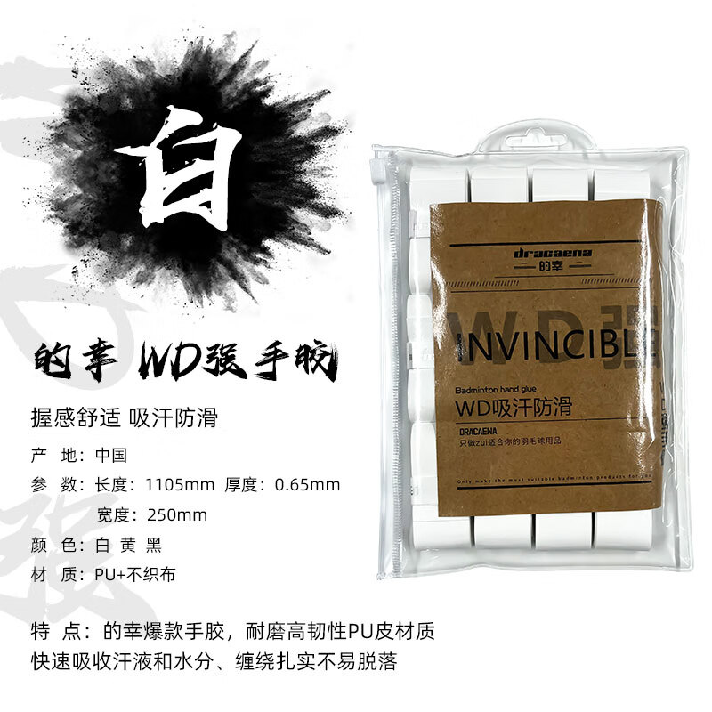 的幸(DRACAENA)的幸黄厂wd强PU握把手胶吸汗柔软透气羽毛球拍舒适减震防滑缠绕带 柔软手感白(加一个缓震膜)